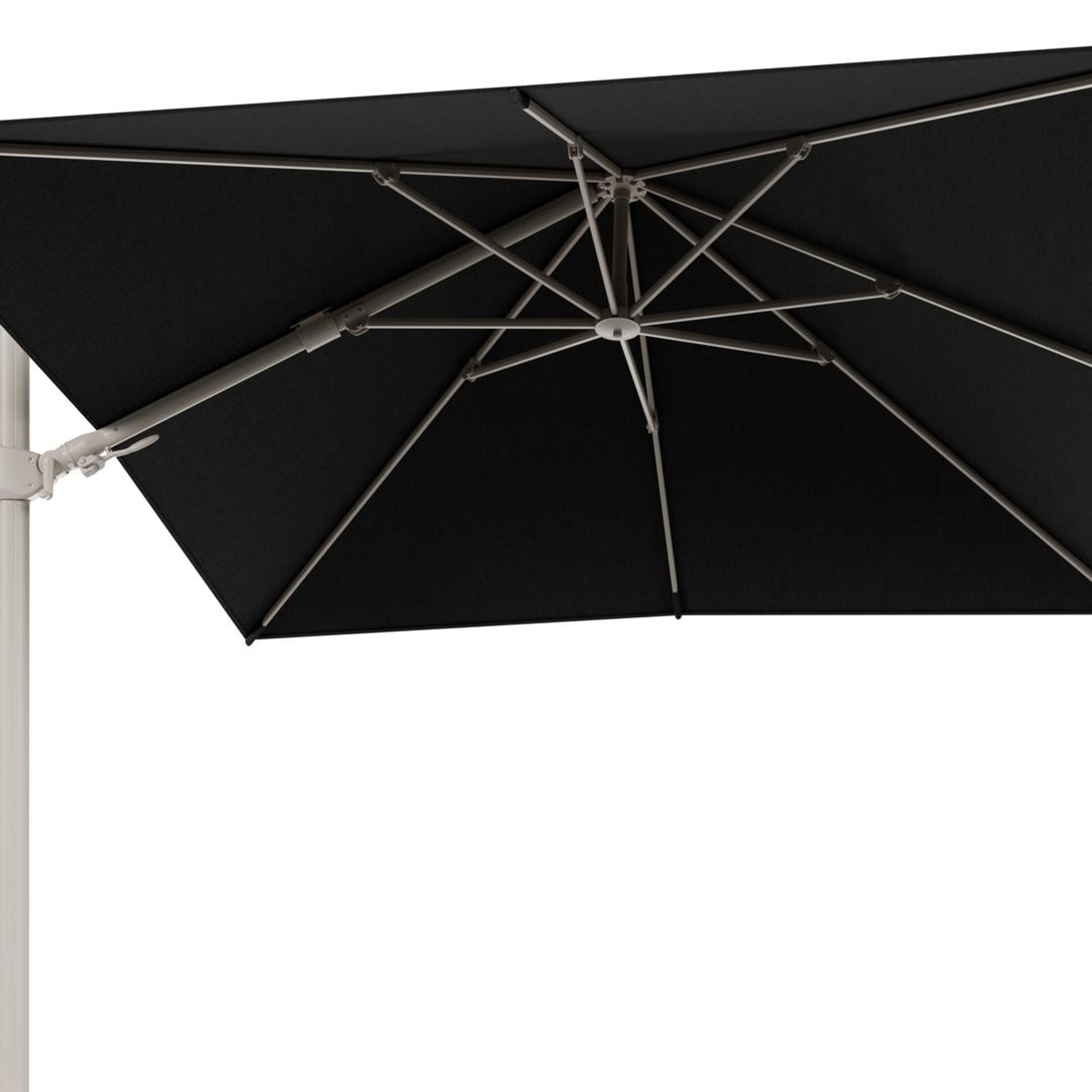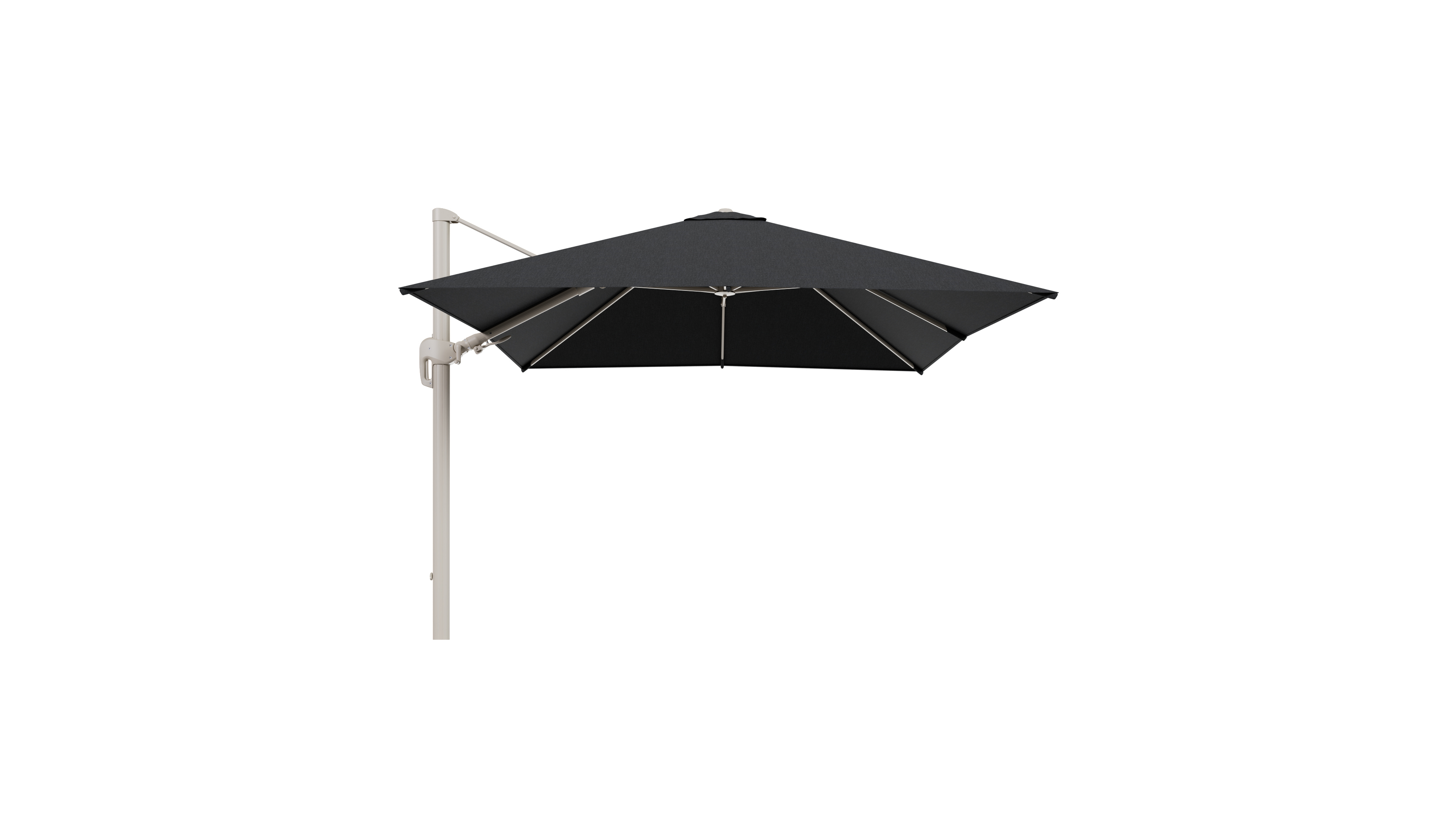 Parasol pendant Rufina avec fonction tilt en aluminium beige et toile de parasol en All Weather Sunbrella® Luxe Chartres Sooty - Lg.1 300 x Lg.2 300 cm (sans pied de parasol | Exterioo mobilier de jardin
