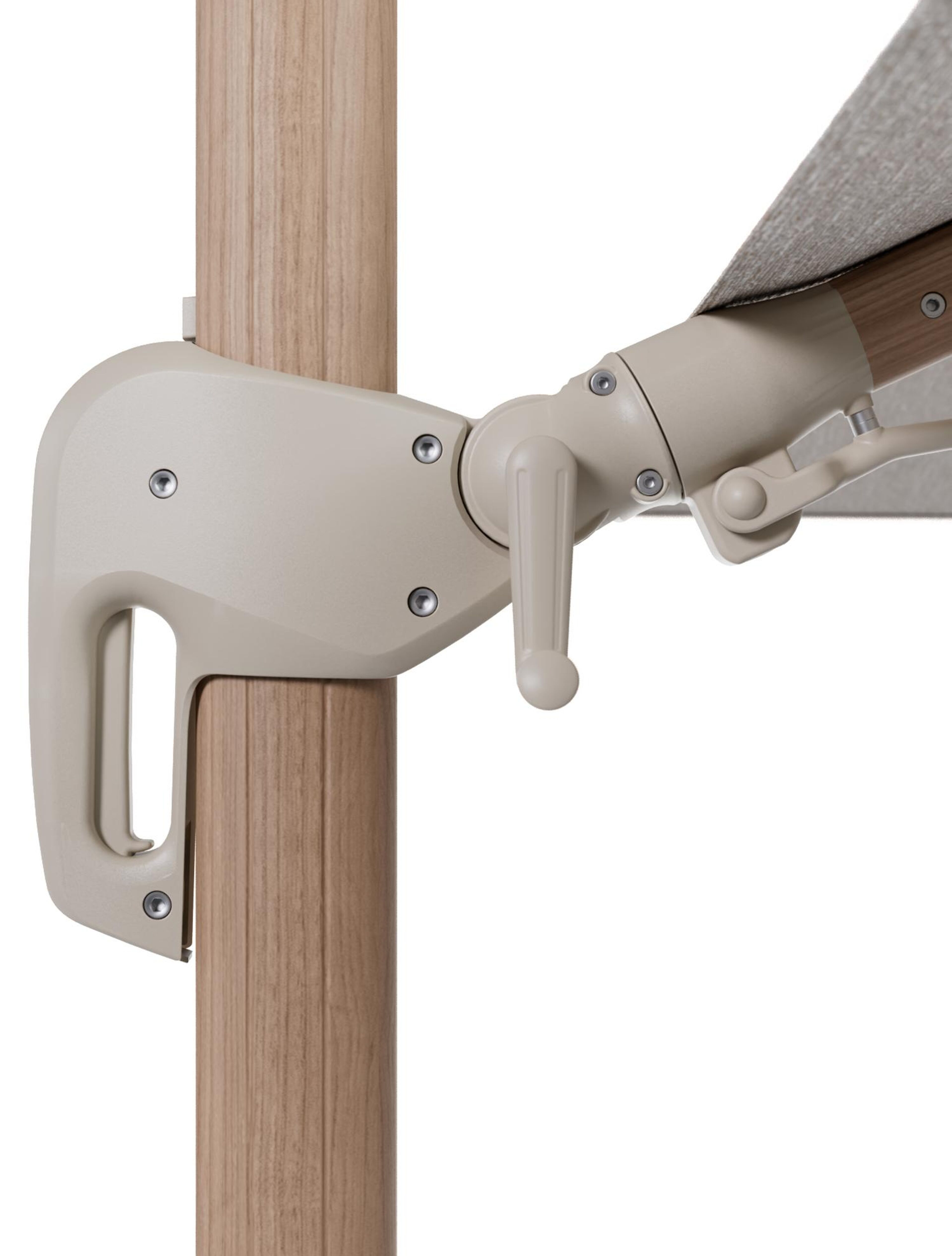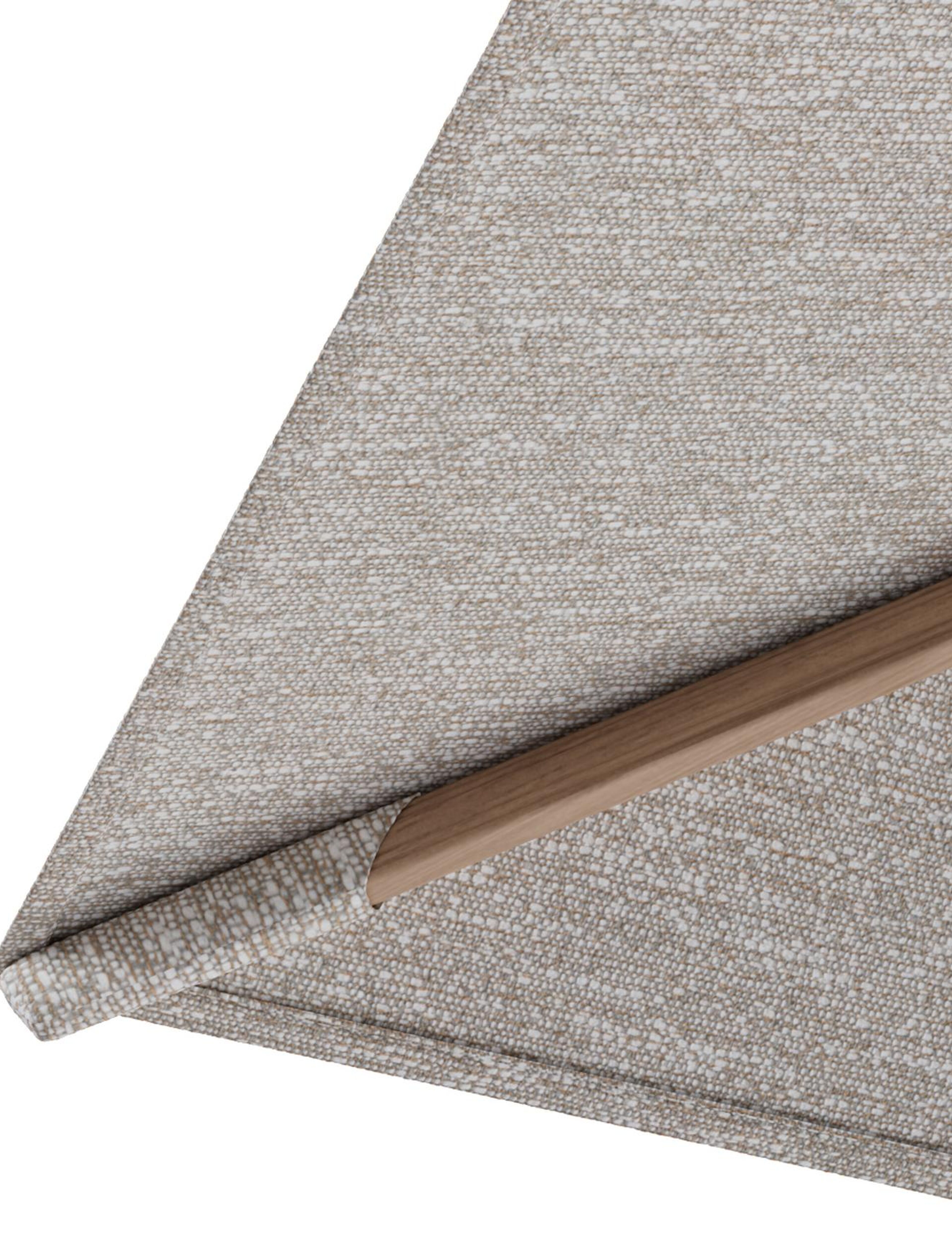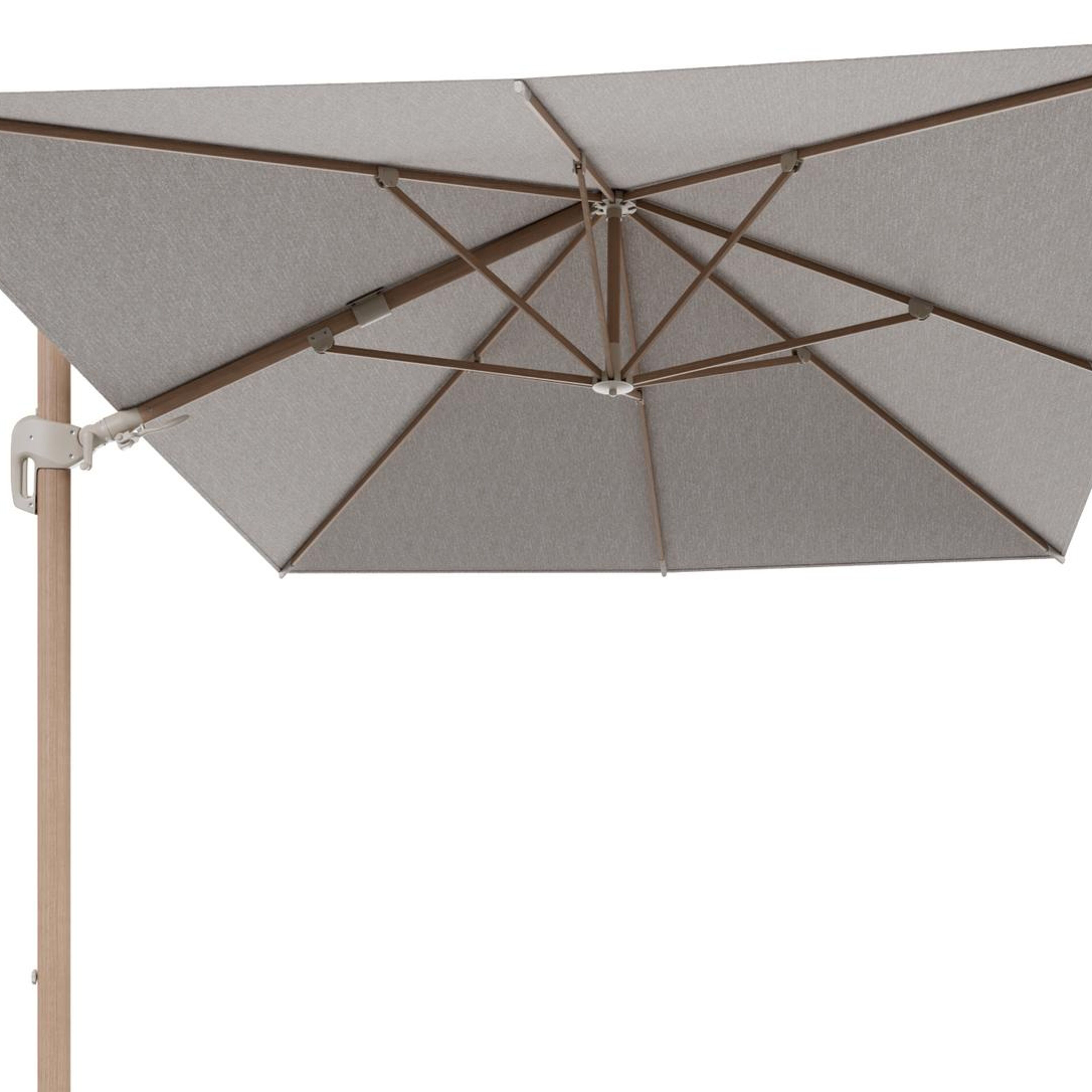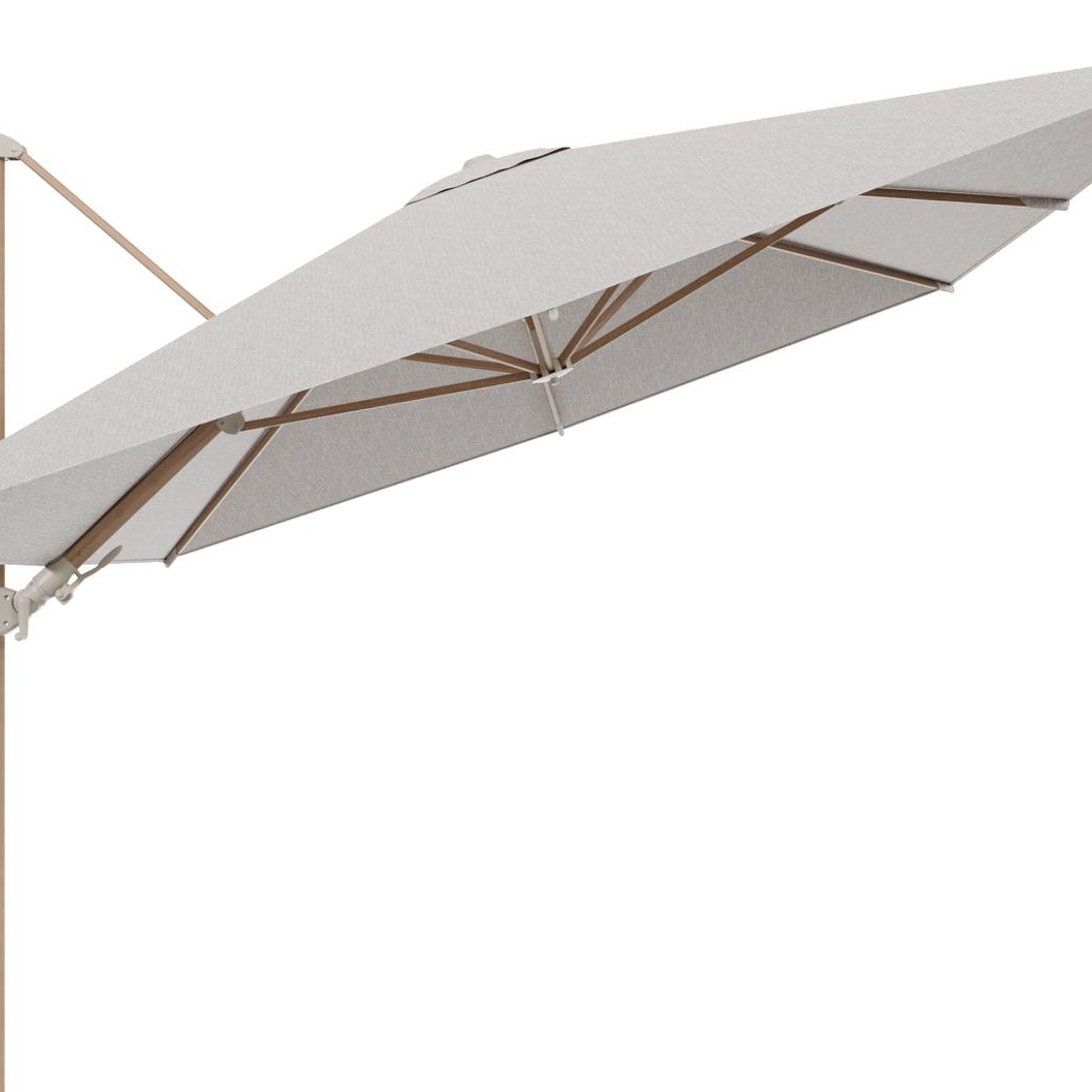 Parasol pendant Rufina avec fonction tilt en aluminium aspect de bois et toile de parasol en All Weather Sunbrella® Luxe Tundra Sand - Lg.1 400 x Lg.2 300 cm (sans pied de parasol | Exterioo mobilier de jardin