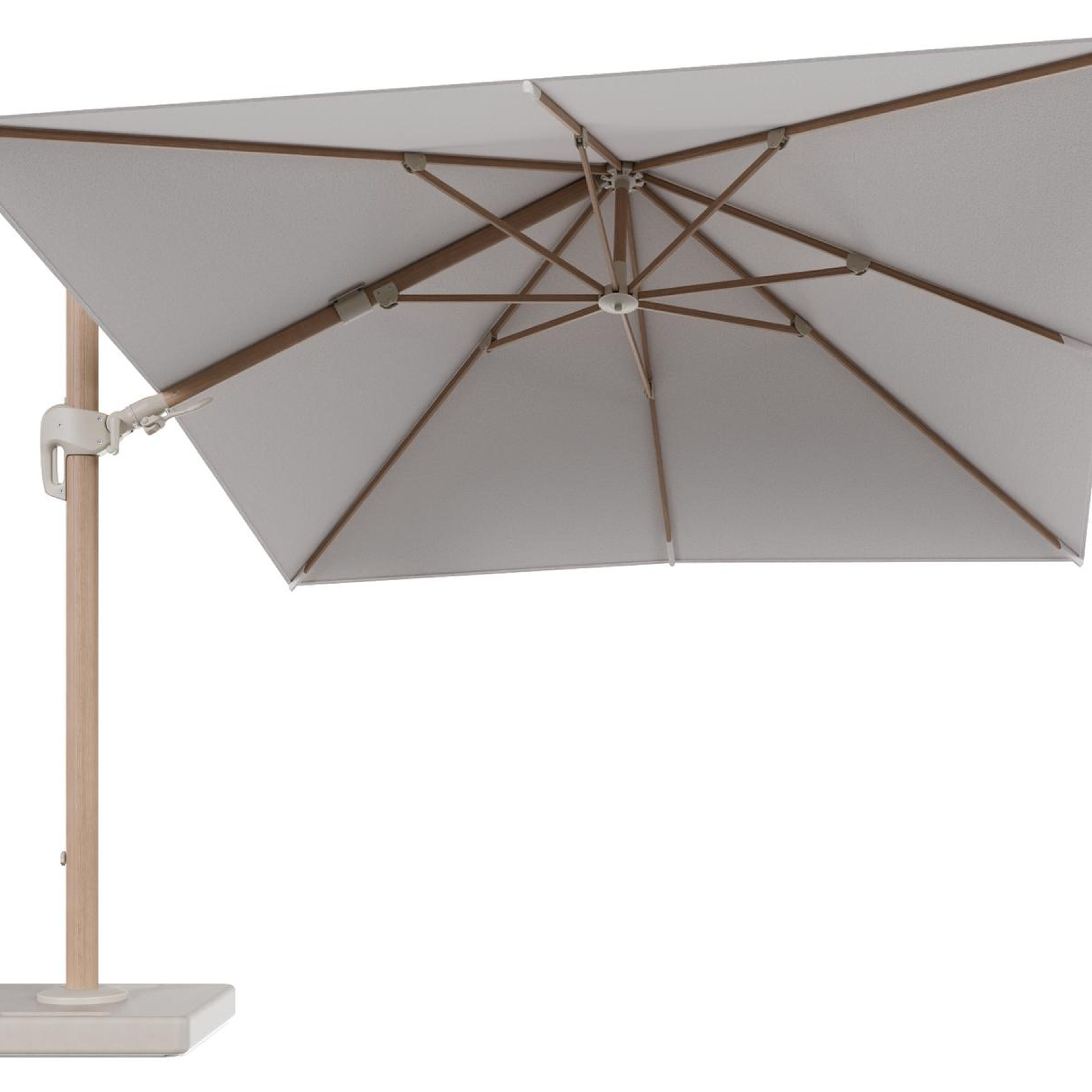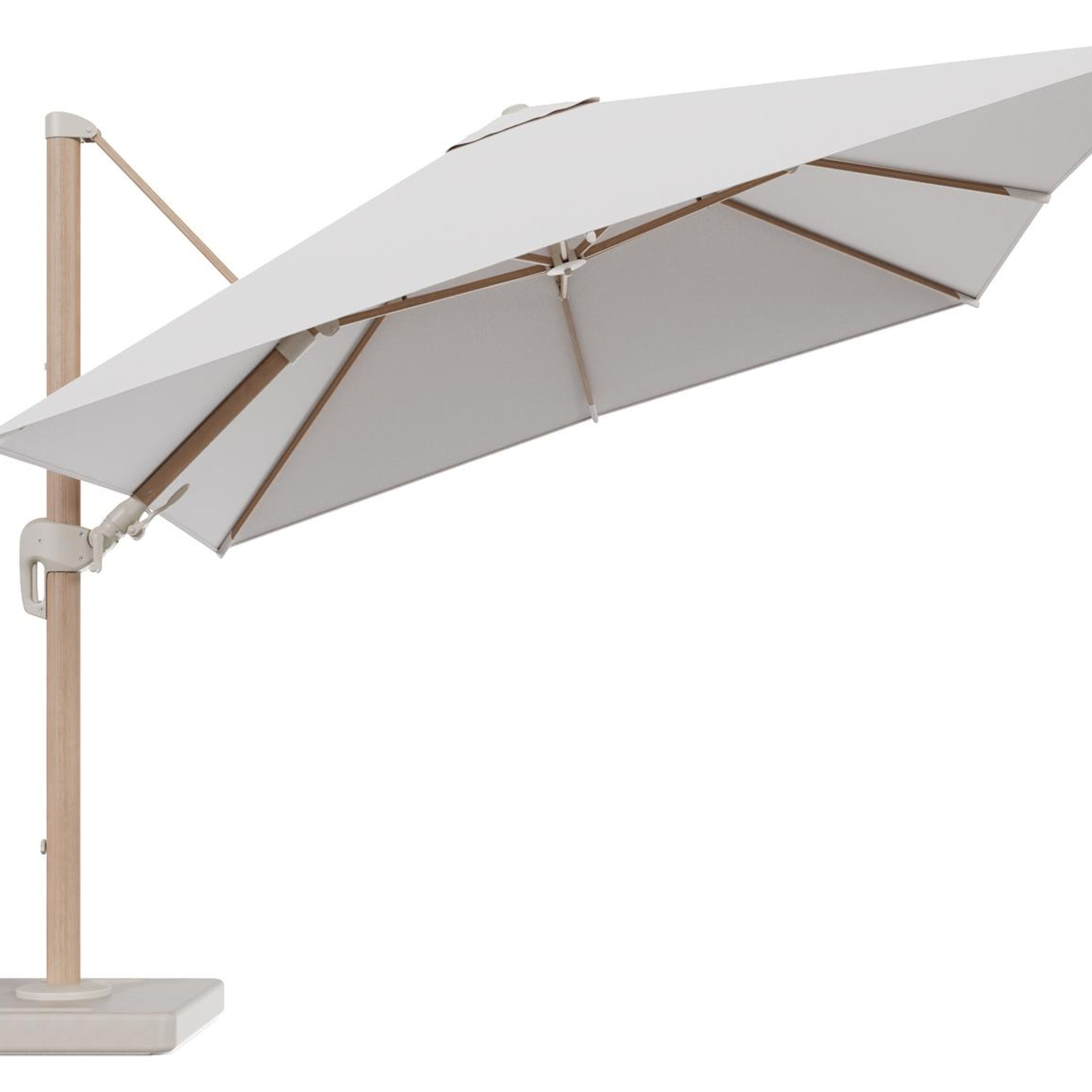 Parasol pendant Rufina avec fonction tilt en aluminium aspect de bois et toile de parasol en All Weather Solica Ego Eggshell - Lg.1 300 x Lg.2 300 cm avec pied de parasol Lapido 160 kg | Exterioo mobilier de jardin