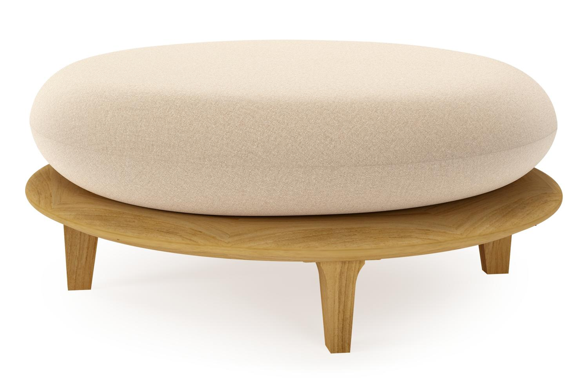 Pouf Bomero en teck et coussins en all weather sunbrella® luxe natte heather beige | Exterioo