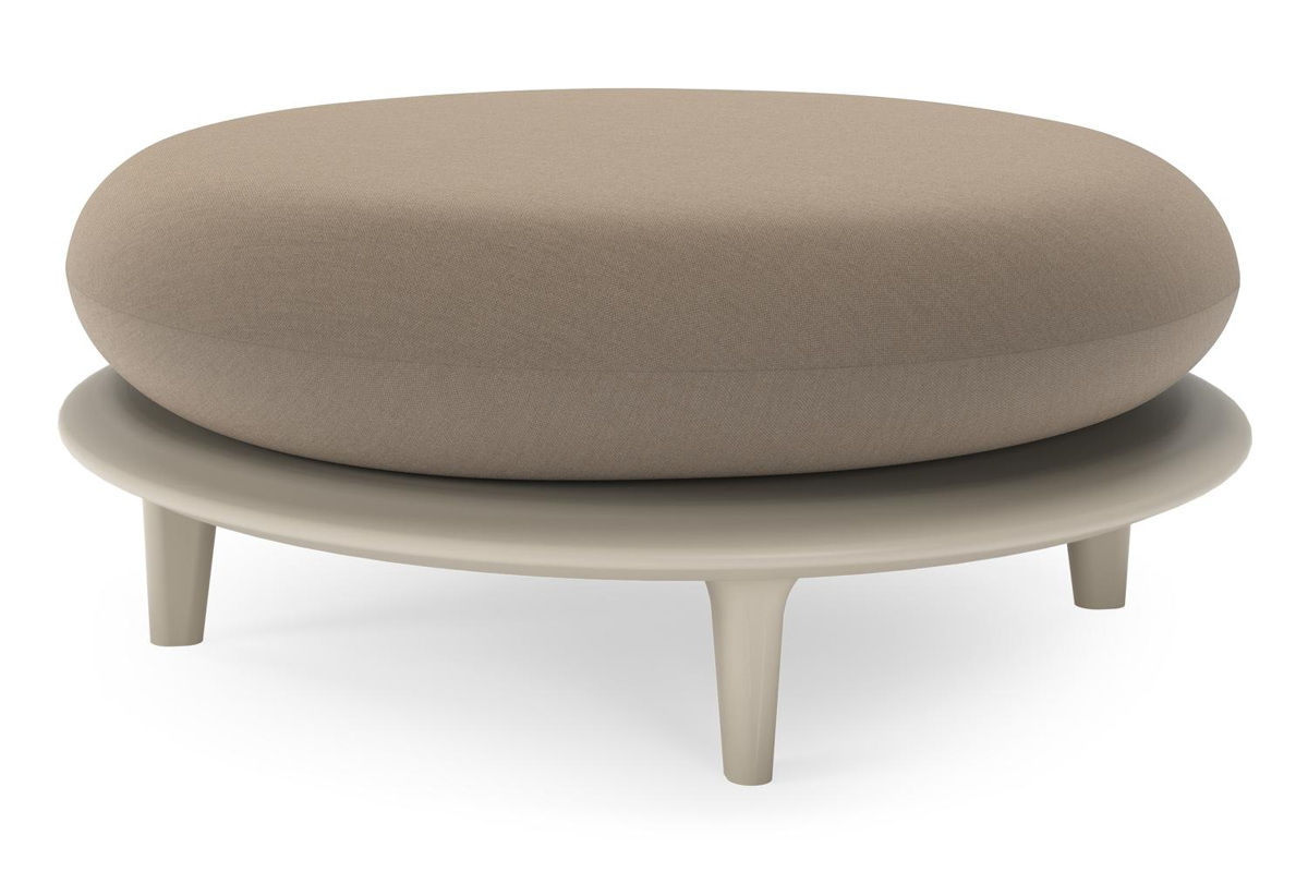 Pouf Bomero en aluminium beige et coussins en all weather sunbrella® luxe natte heather grey | Exterioo