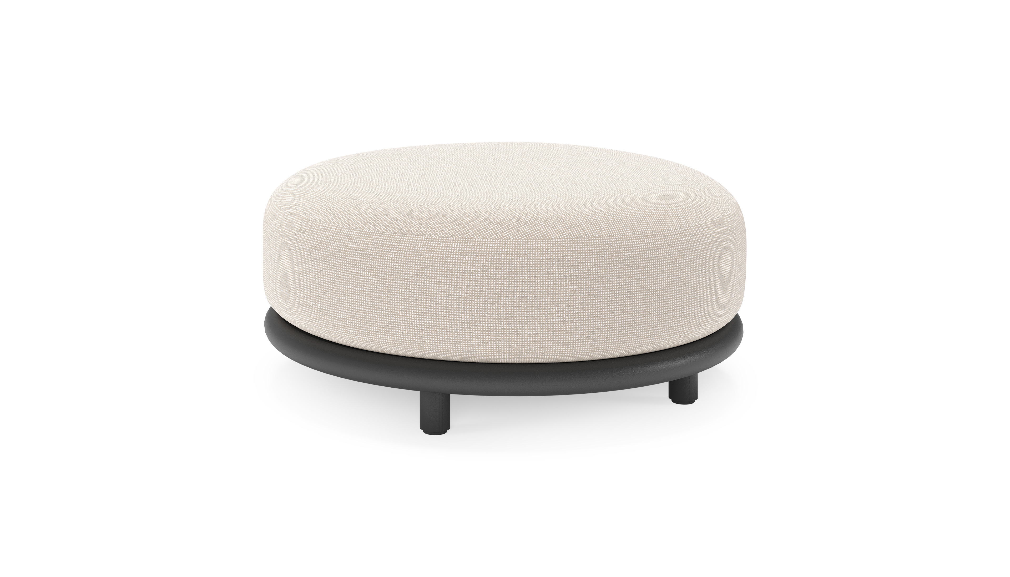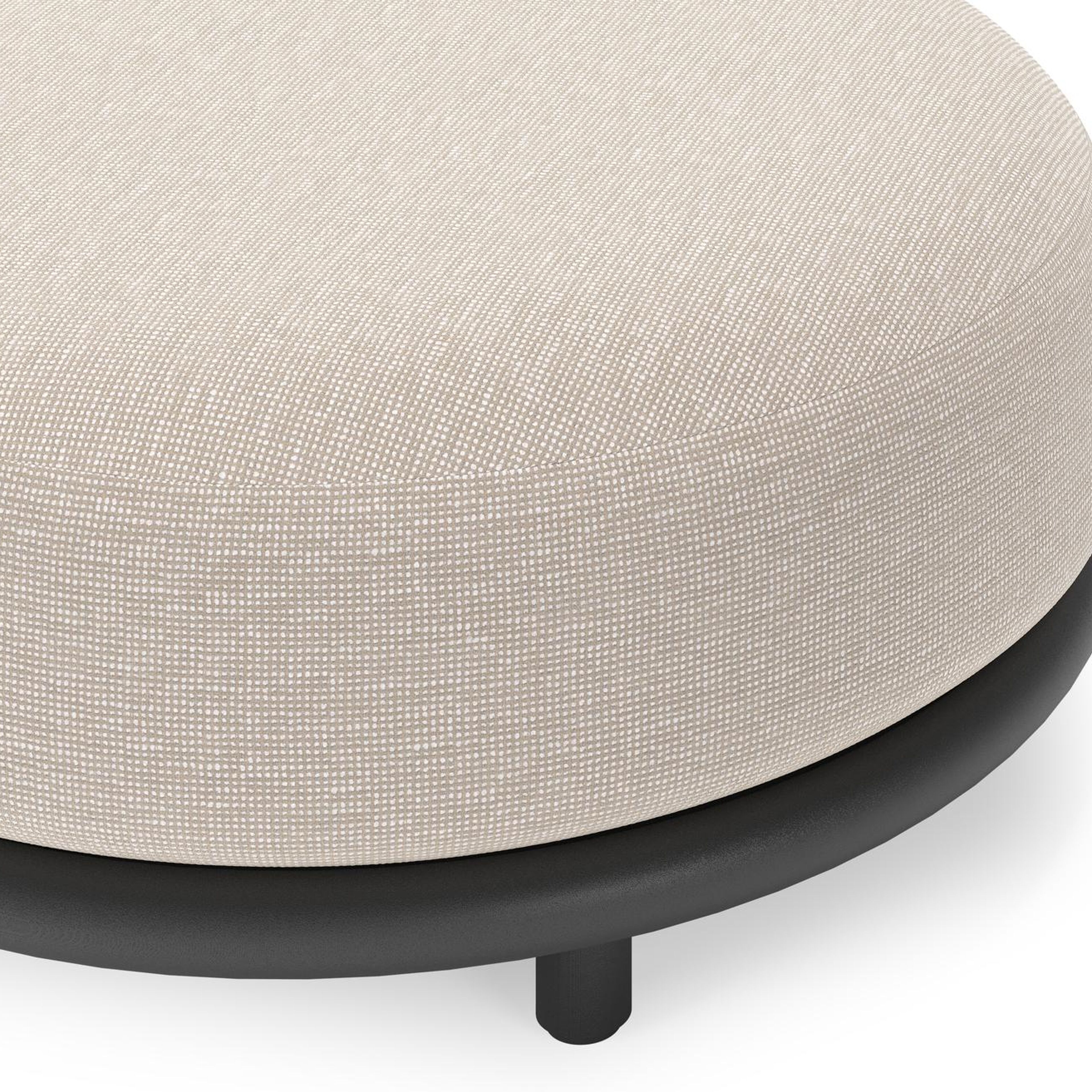 Pouf Lomano en aluminium noir et corde luxe plate tissée verticalement beige et coussins en all weather sunbrella® luxe Slow Farafra | Exterioo mobilier de jardin