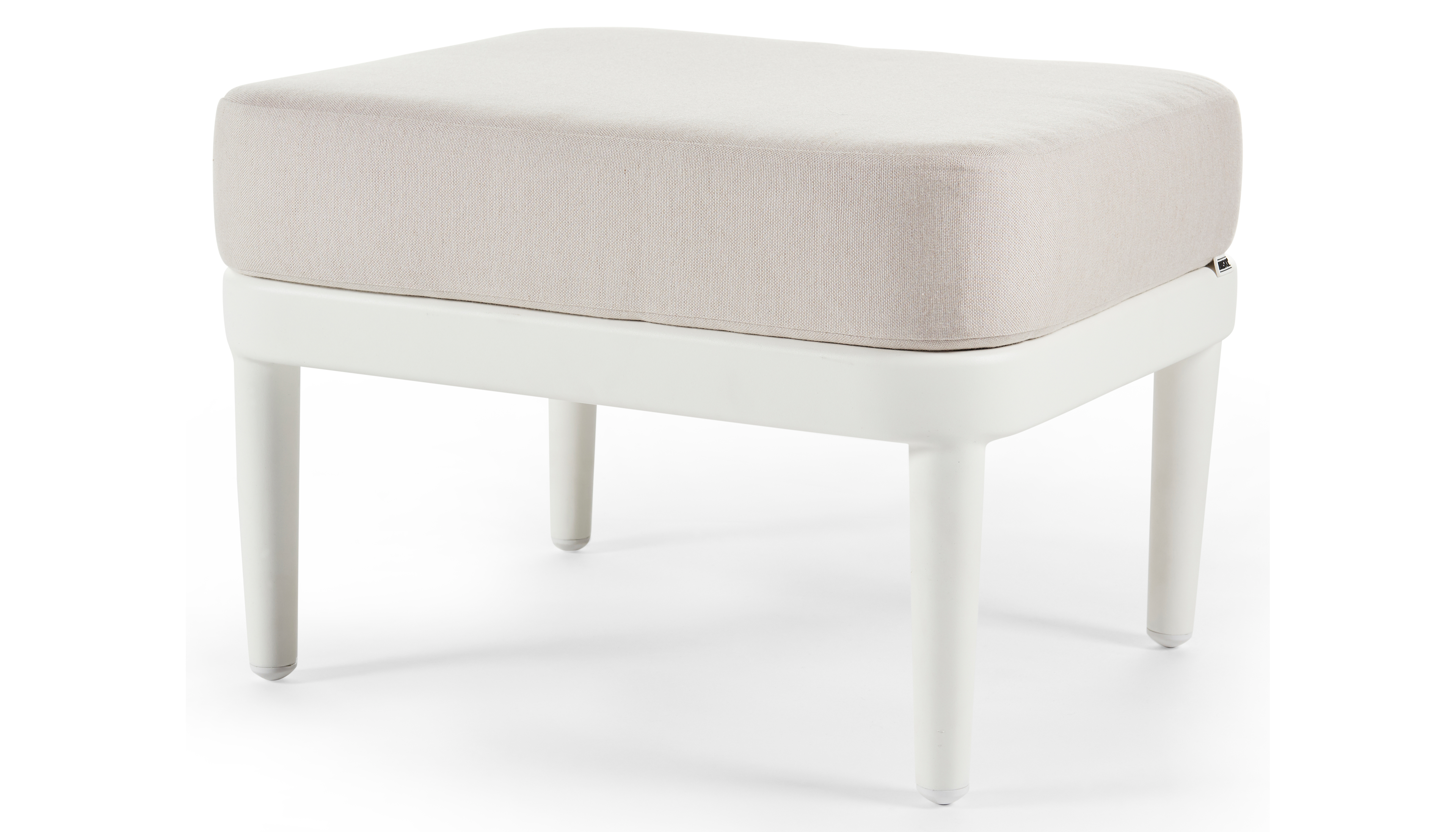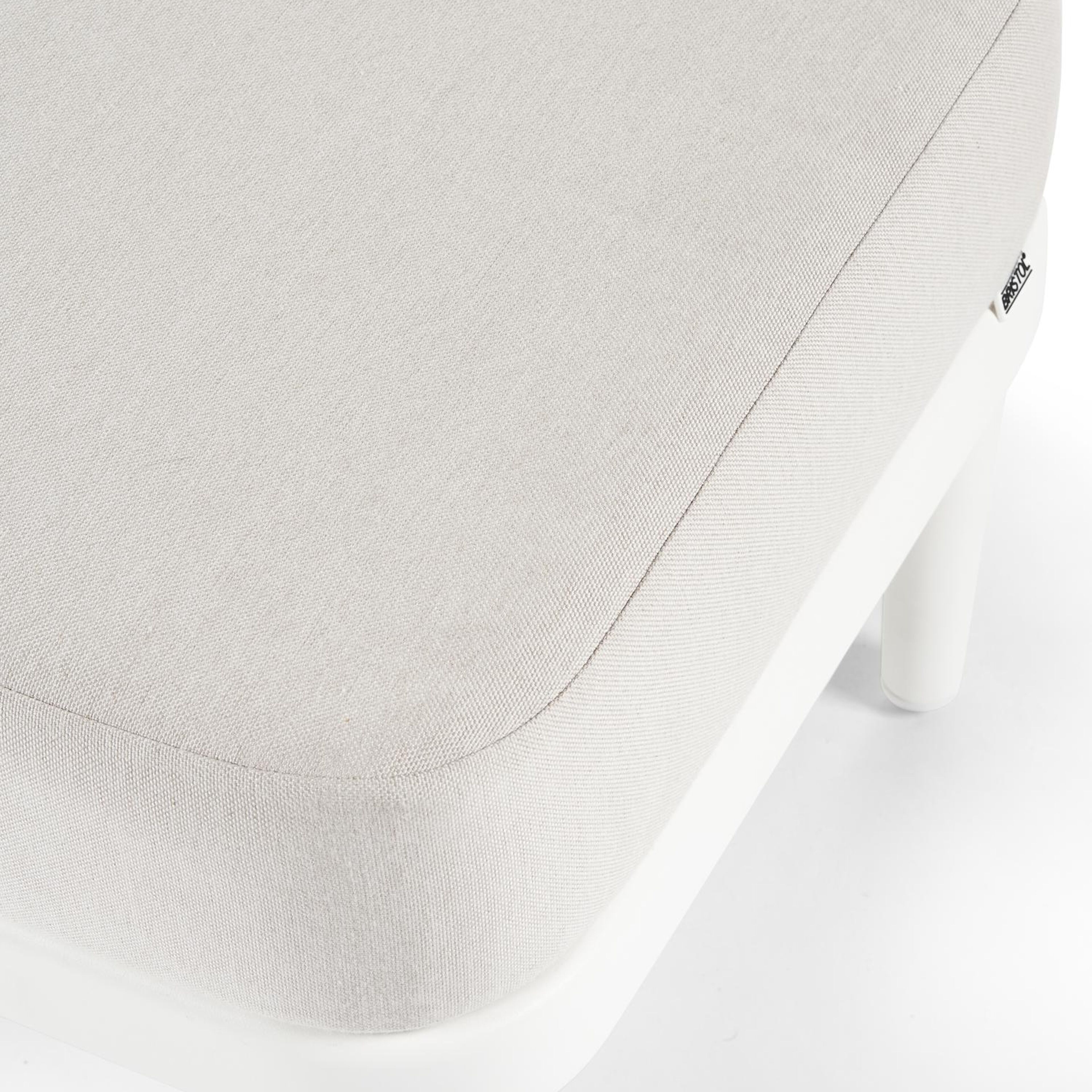Orso poef in wit aluminium en beige textilene met natte linen chalk all weather sunbrella® luxe kussen | Exterioo mobilier de jardin
