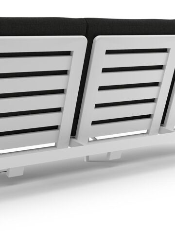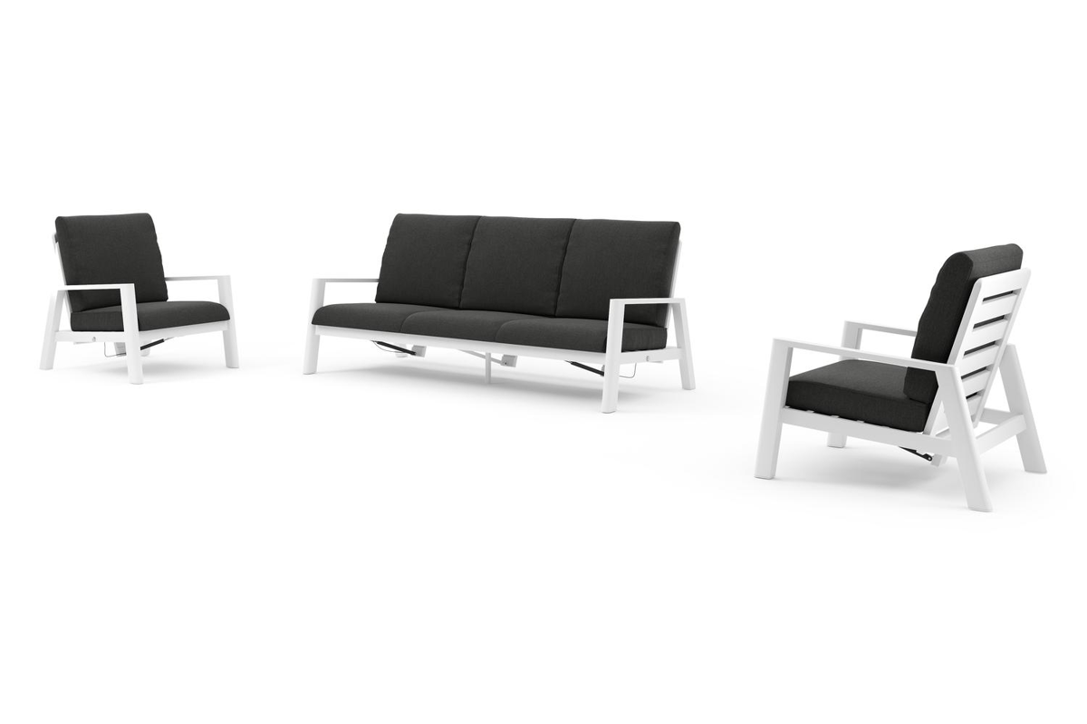 Salon de jardin Cirello en aluminium blanc et coussins en all weather sunbrella® luxe chartres sooty | Exterioo