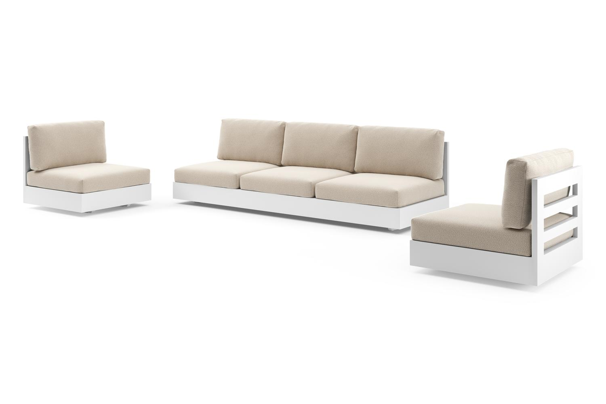 Salon de jardin Como en aluminium blanc et coussins en all weather sunbrella® luxe lopi sand | Exterioo