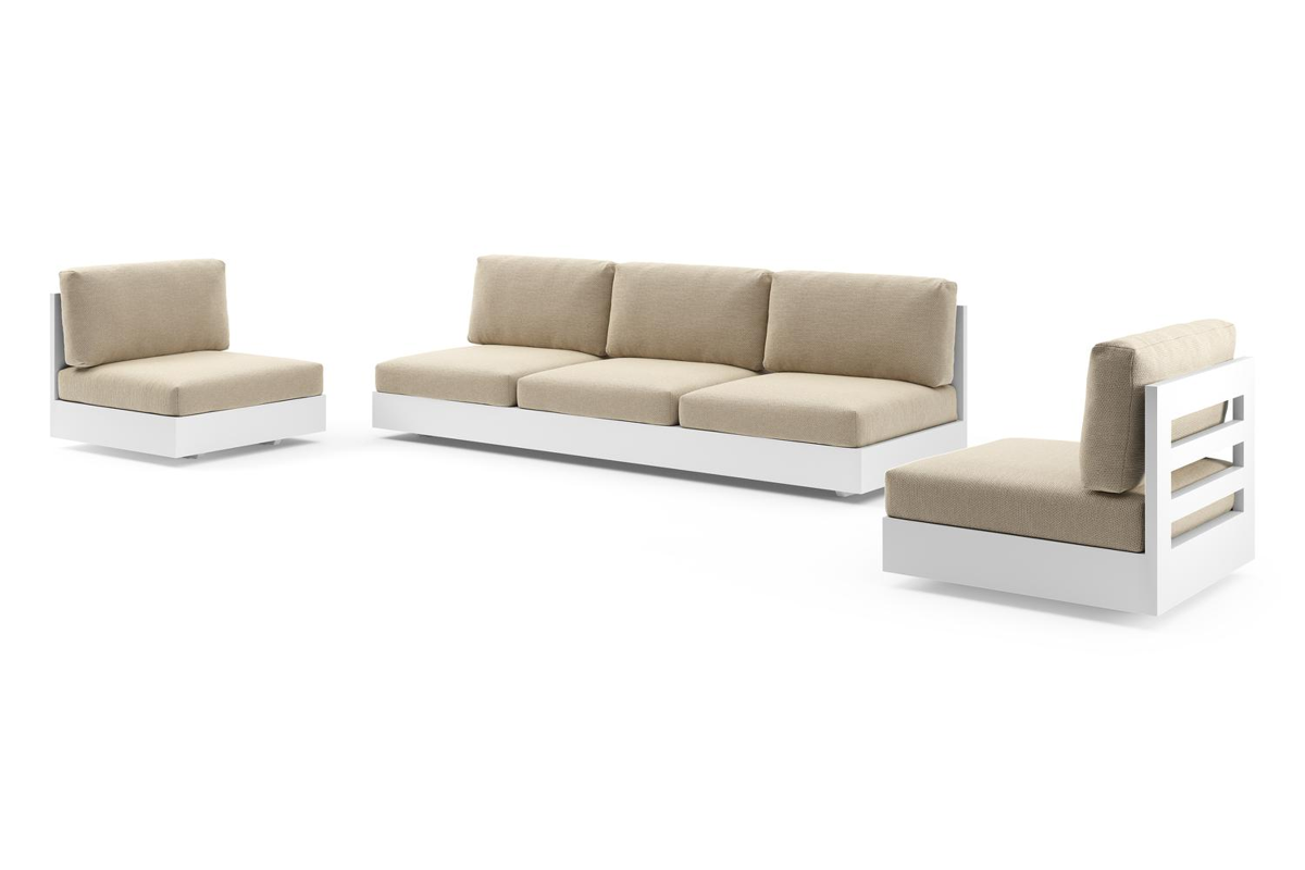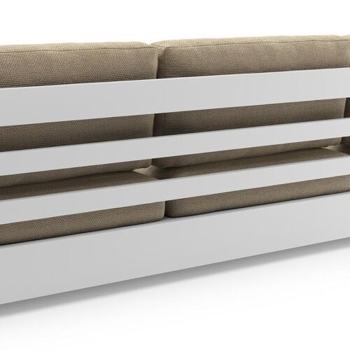 Salon de jardin Como en aluminium blanc et coussins en all weather cosytica althea camel | Exterioo