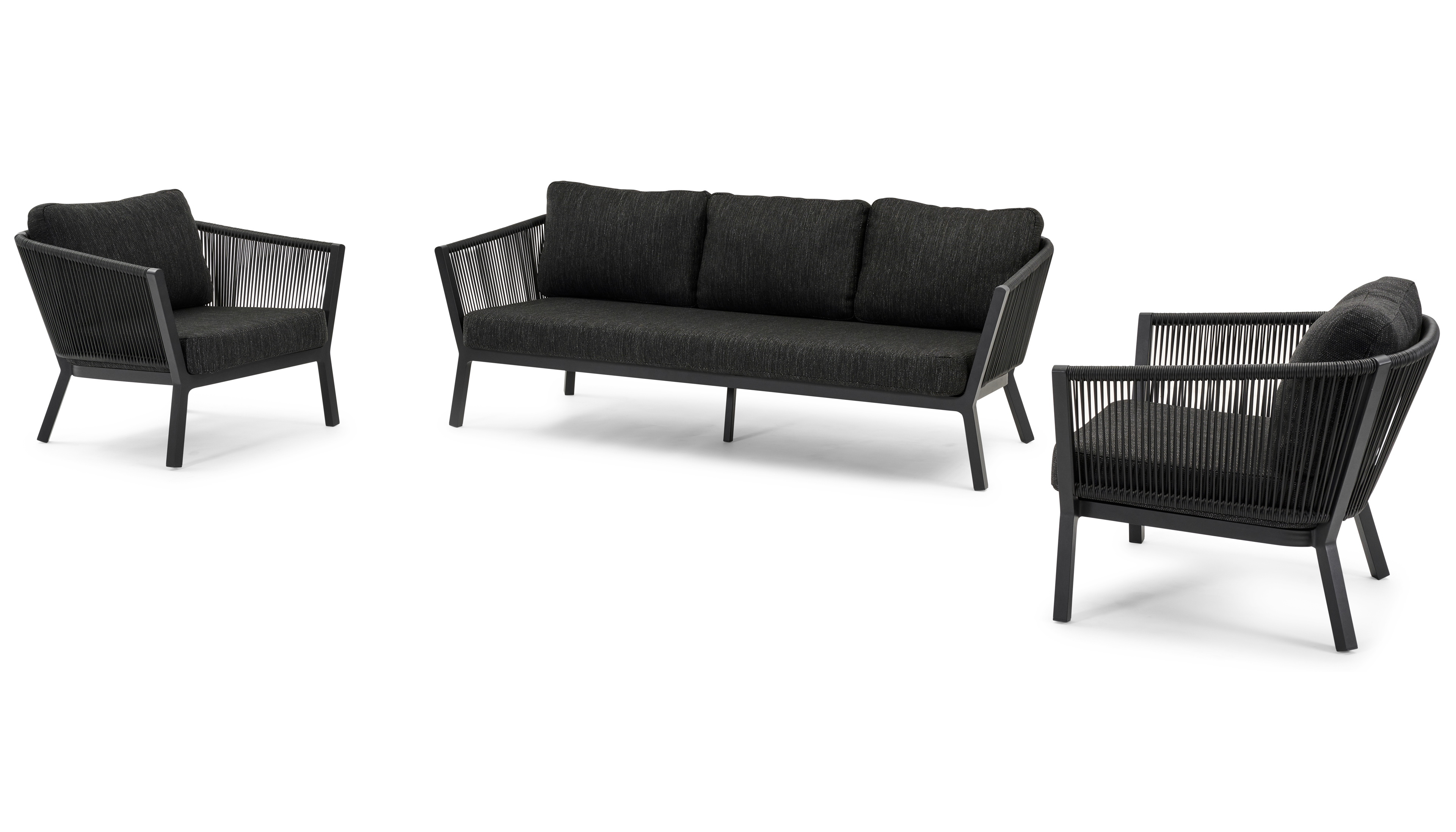 Les coussins sont compris et sont en Weather+ Softtouch. Les coussins durables sont doux au toucher et repoussent la saleté. Les coussins Weather+ Softtouch sont hydrofuges dans une mesure limitée et renferment une couche de mousse standard dans une housse intérieure imperméable. En hiver ou en cas de longue période de pluie, il est préférable de ranger les coussins à L'intérieur.