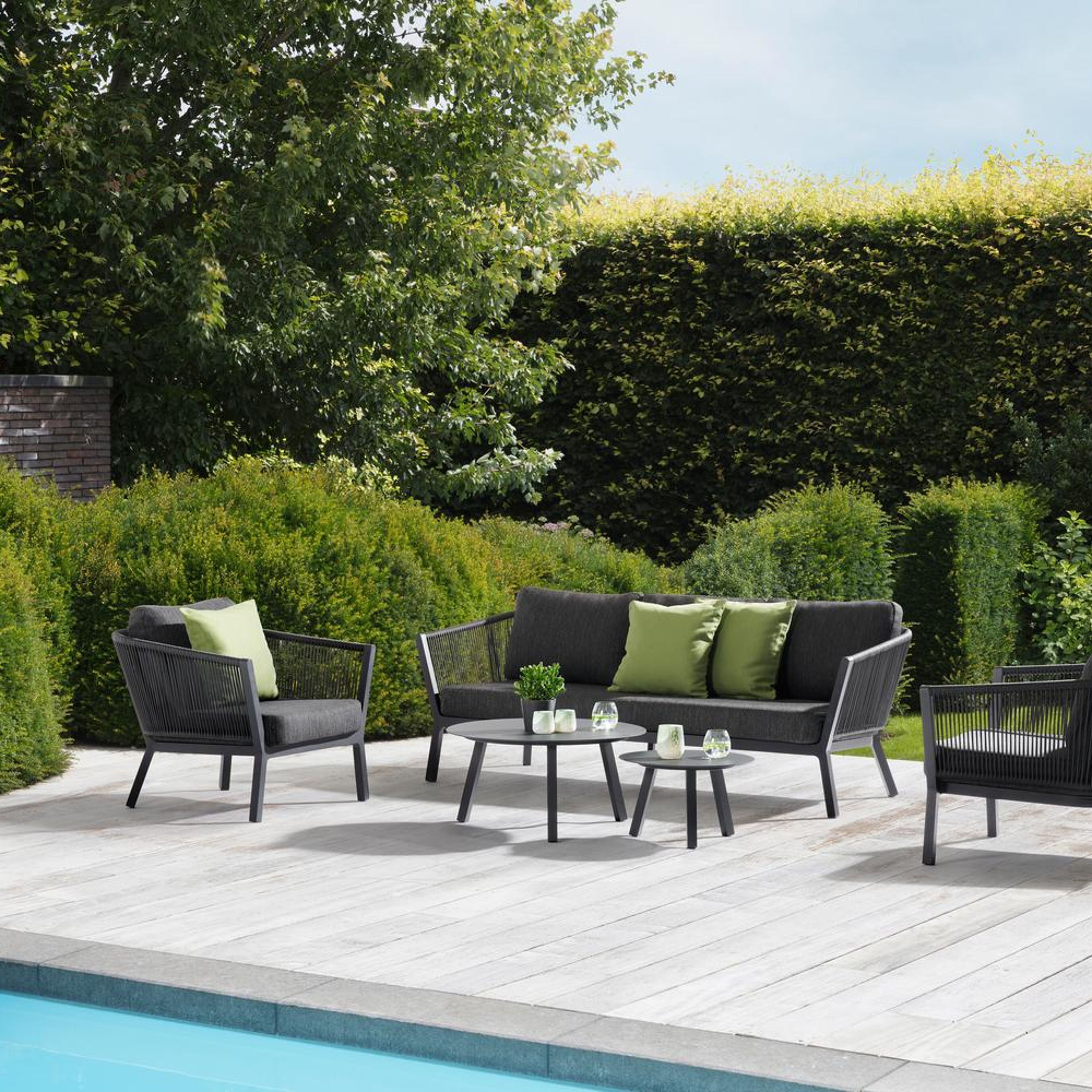 Le design de salon de jardin Cordoba remarquable du salon de jardin crée une ambiance estivale et branchée grâce à ses finitions. Le confort de ce salon de jardin est agréable grâce à son assise plus profonde et au bon soutien du dossier en corde.