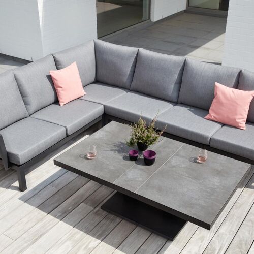Le salon de jardin Alcudia Alcudia complet est un véritable must-have pour votre terrasse. L'armature aluminium (gris) assure un design épuré. Les coussins en polyester de couleur (gris) sont compris dans l'ensemble. L'assise est prévue pour 6 personnes. Avec Le salon de jardin Alcudia Alcudia, vous profiterez de vos moments en plein air à un prix compétitif. Les dimensions sont les suivantes: L1 281.50 x L2 217 x D 86.50 x H 77 cm