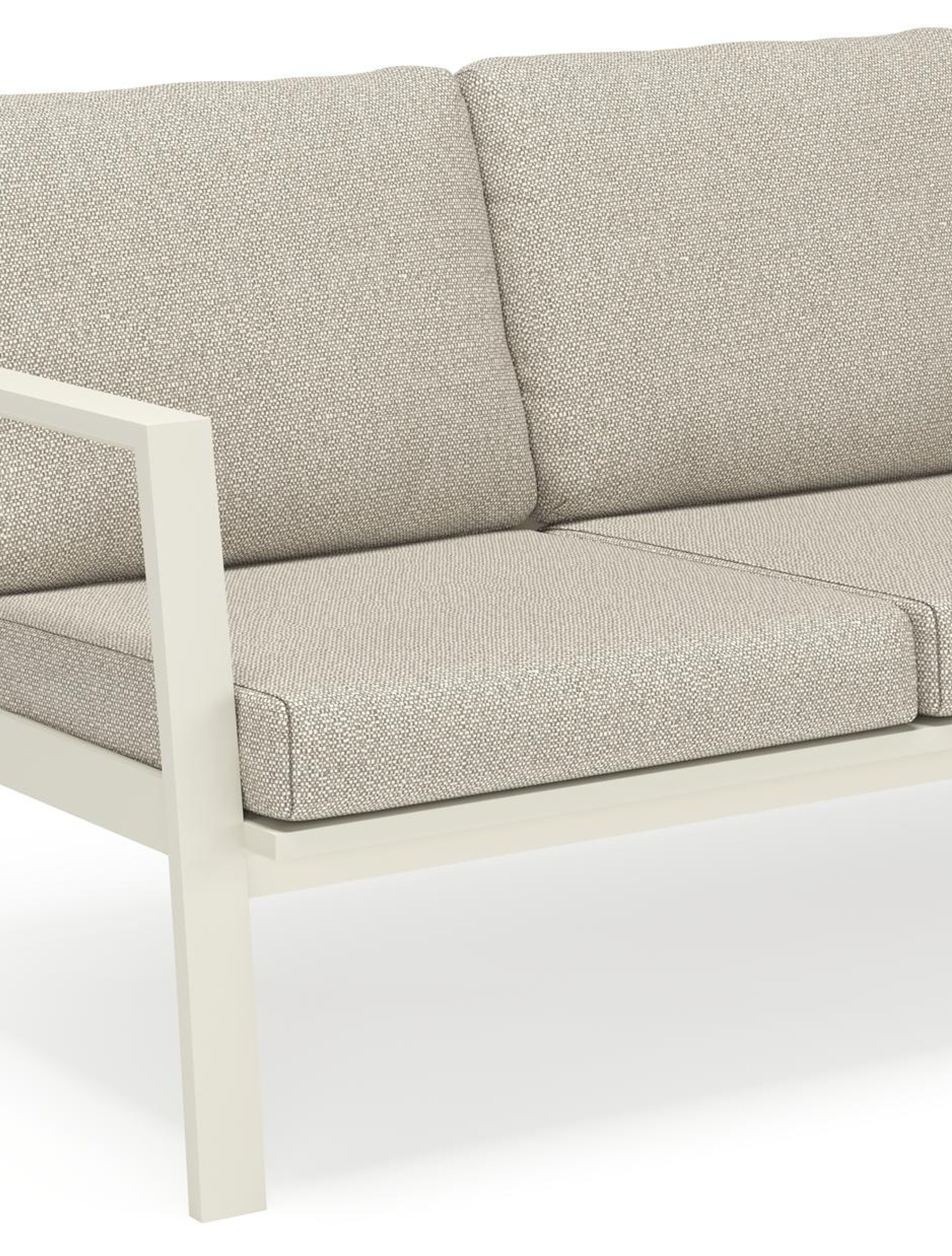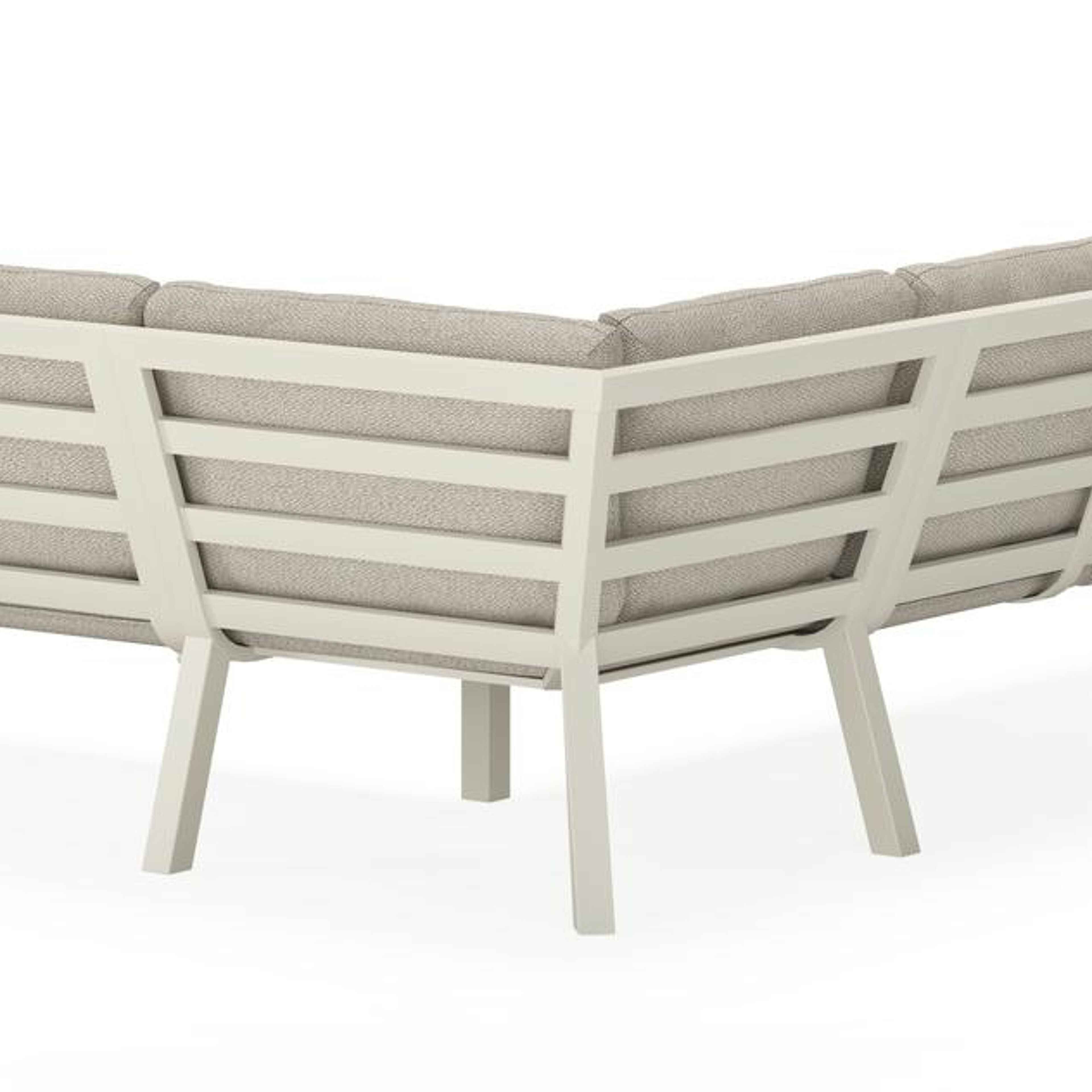 L'armature du salon de jardin est en aluminium inoxydable, un matériau robuste mais léger, qui est facile à déplacer. La surface présente une finition lisse, de sorte qu’elle n'attire pas la saleté et est facile à entretenir. Le revêtement poudré garantit la résistance aux UV et aux intempéries de votre meuble.