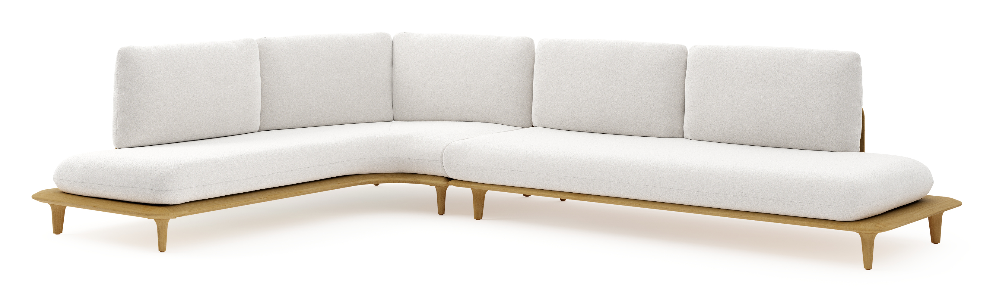 Salon de jardin d'angle Bomero en teck et coussins en all weather solica soul optik | Exterioo mobilier de jardin