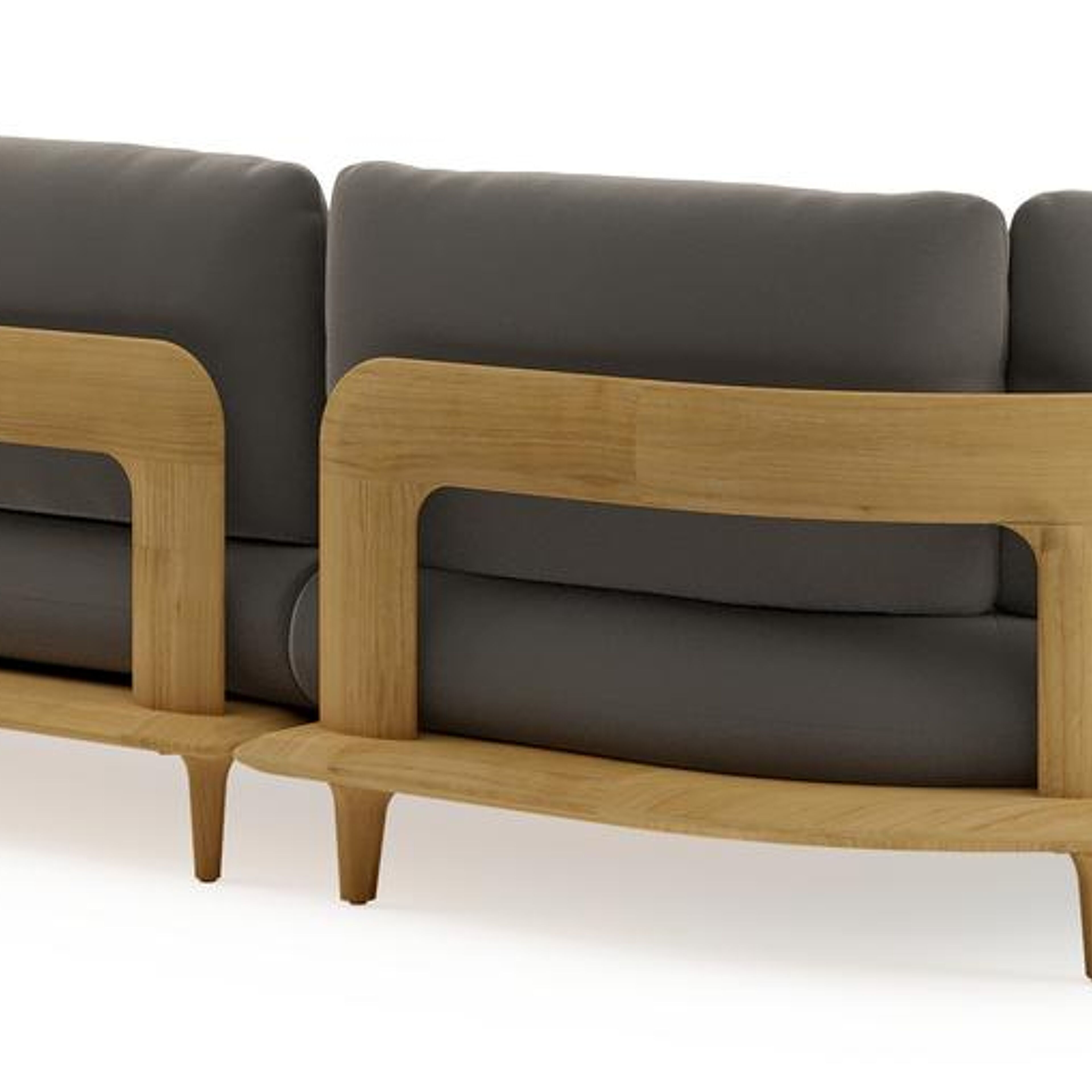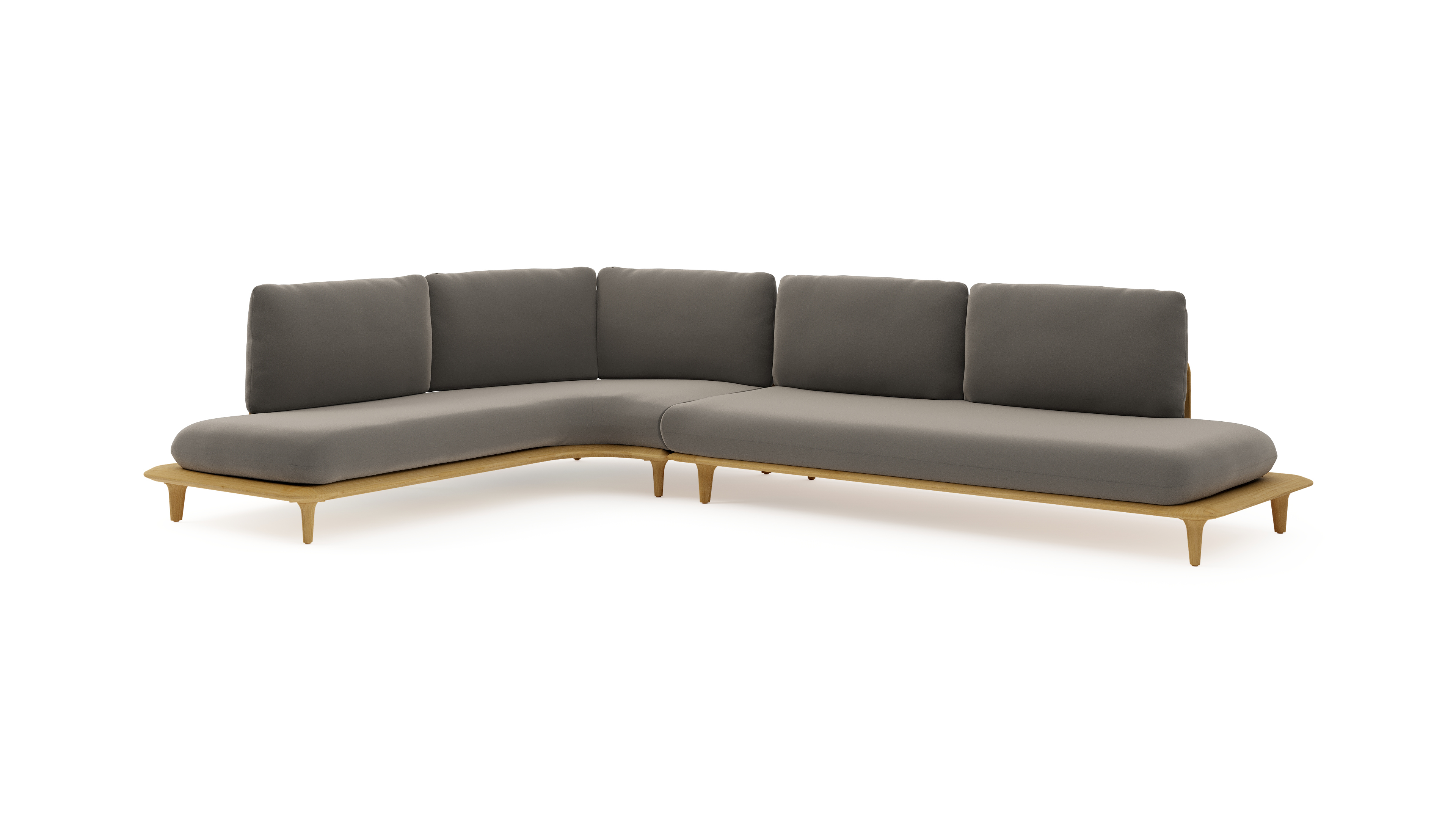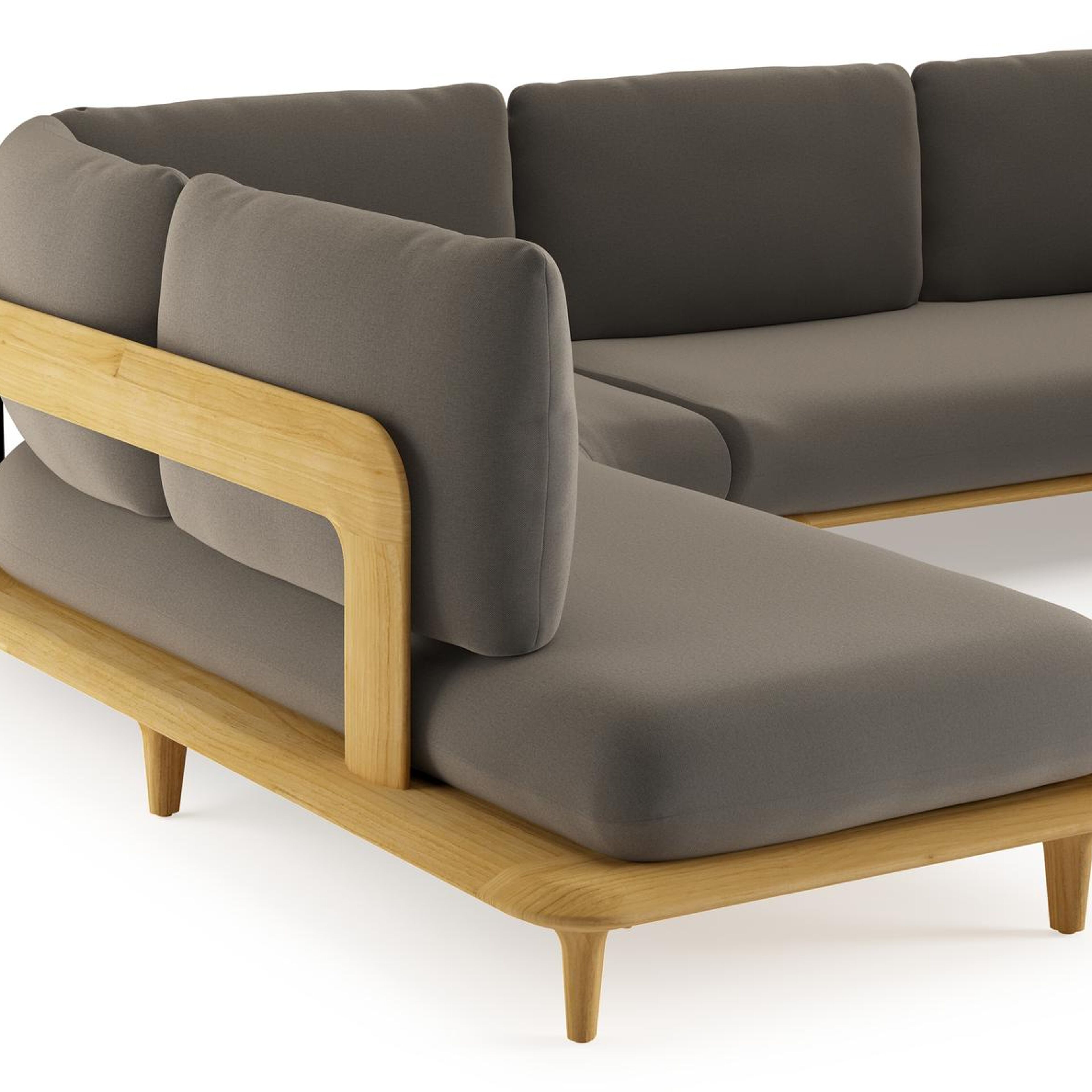 Salon de jardin d'angle Bomero en teck et coussins en all weather sunbrella® luxe natte carbon beige | Exterioo mobilier de jardin