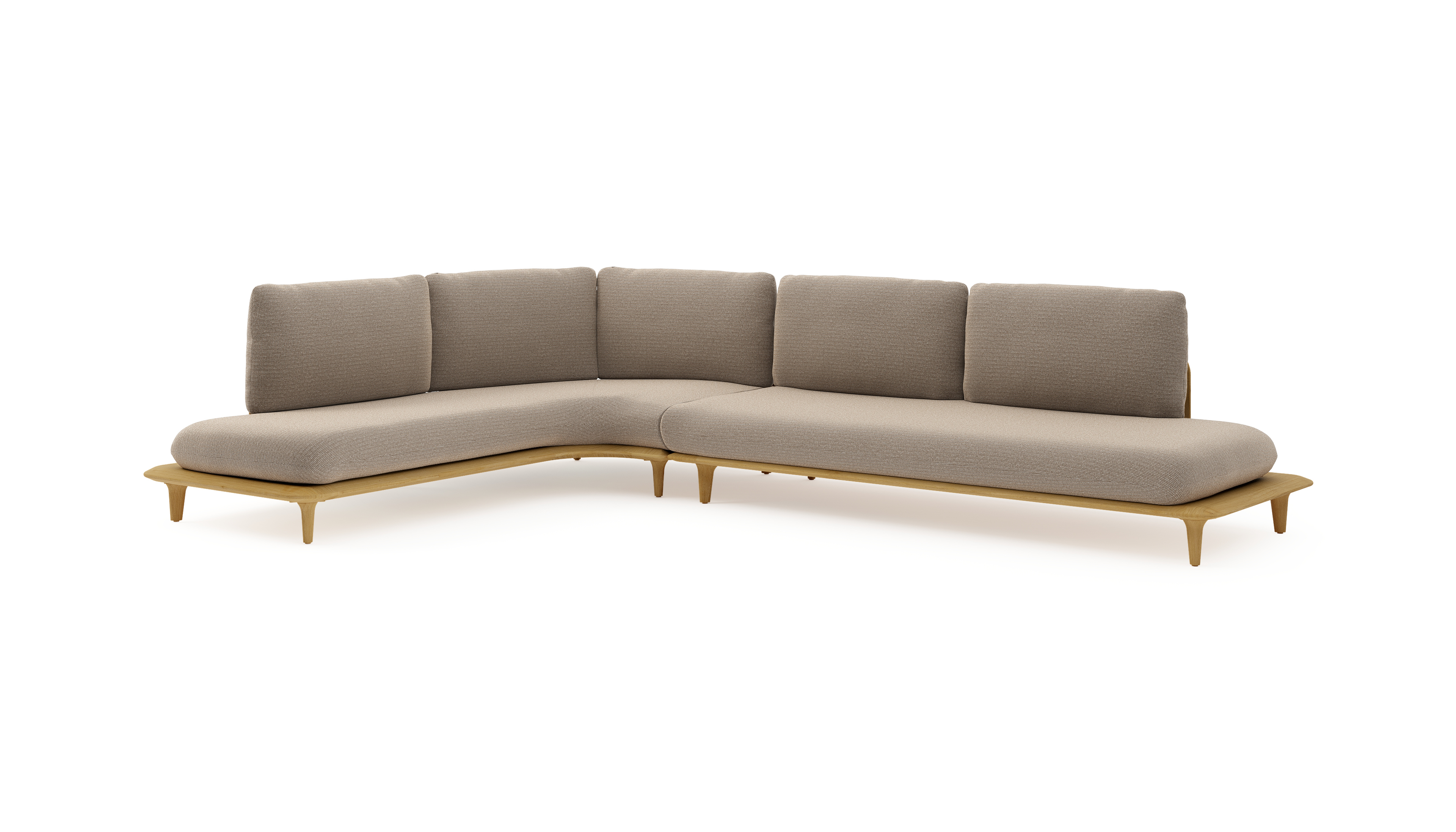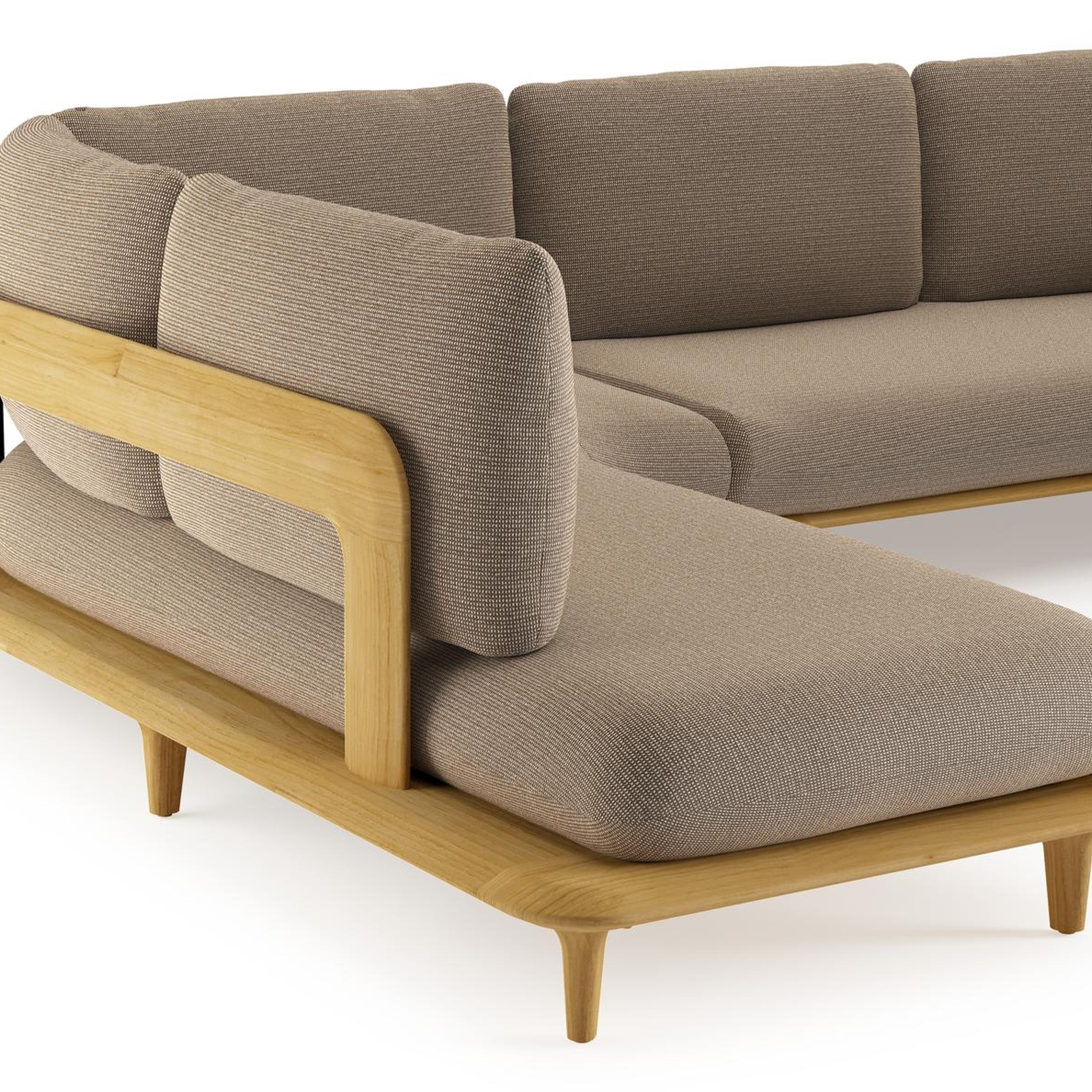 Salon de jardin d'angle Bomero en teck et coussins en all weather solica firenze earth | Exterioo mobilier de jardin