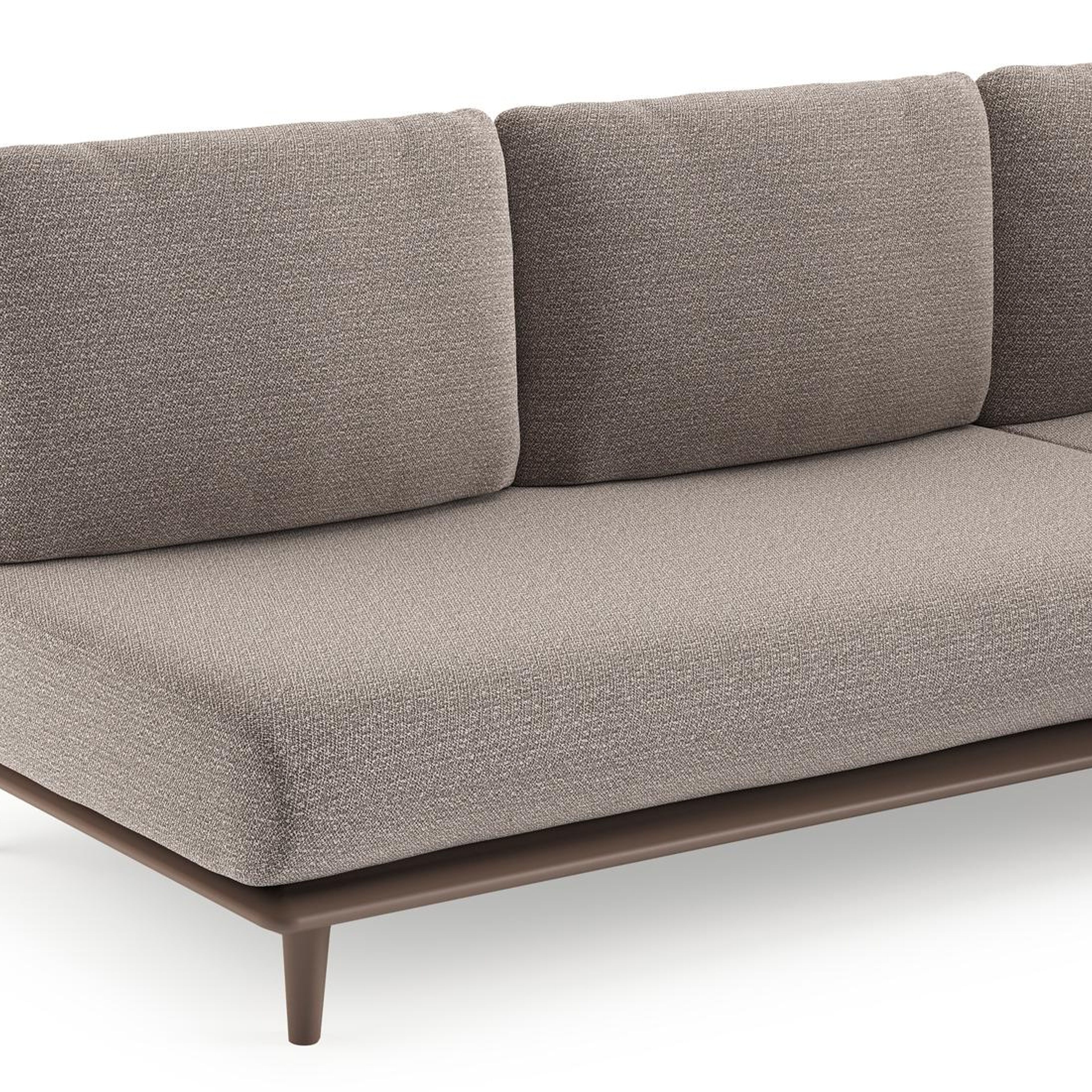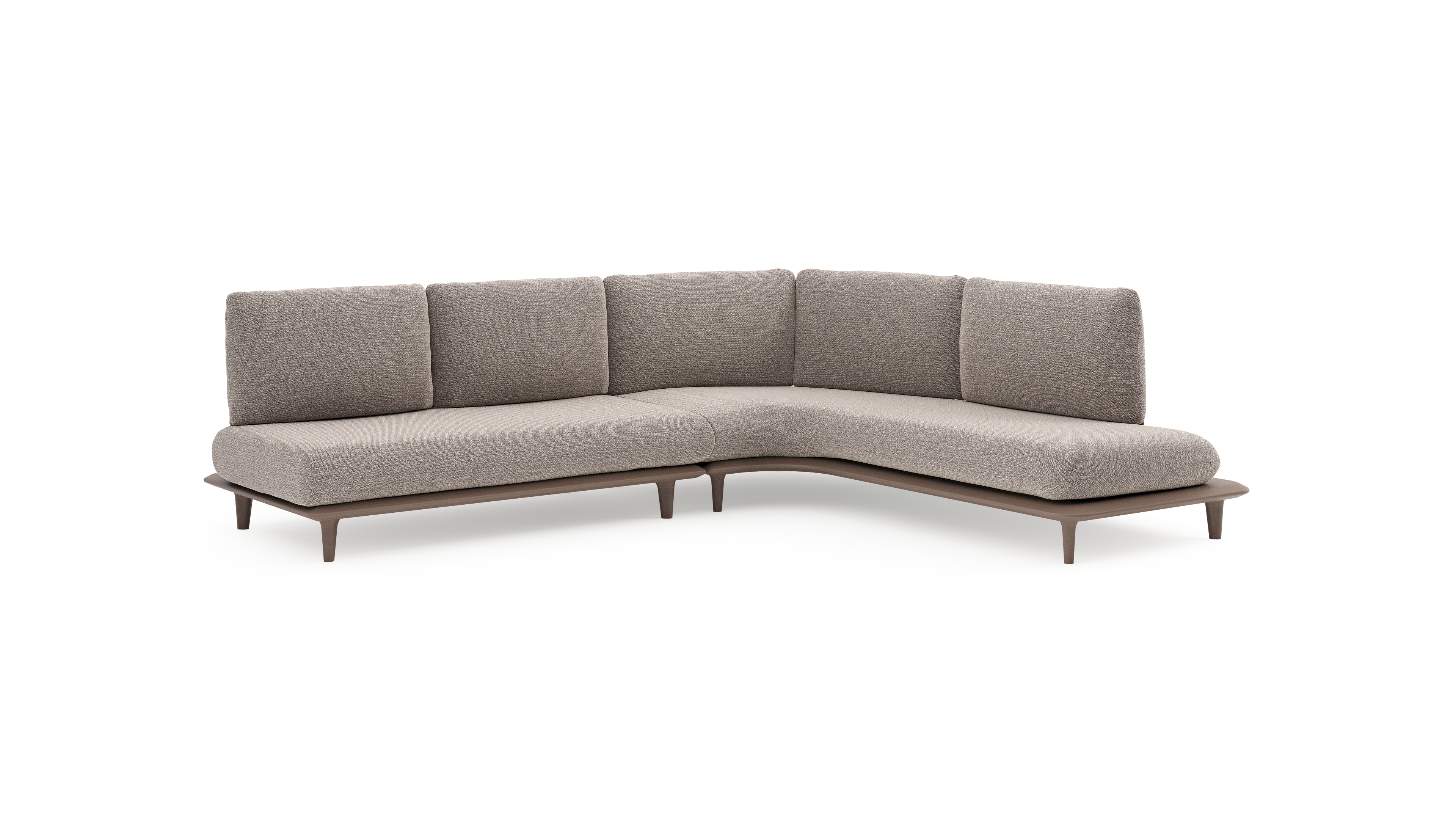 Salon de jardin d'angle Bomero en aluminium taupe et coussins en all weather sunbrella® luxe wander granite | Exterioo mobilier de jardin
