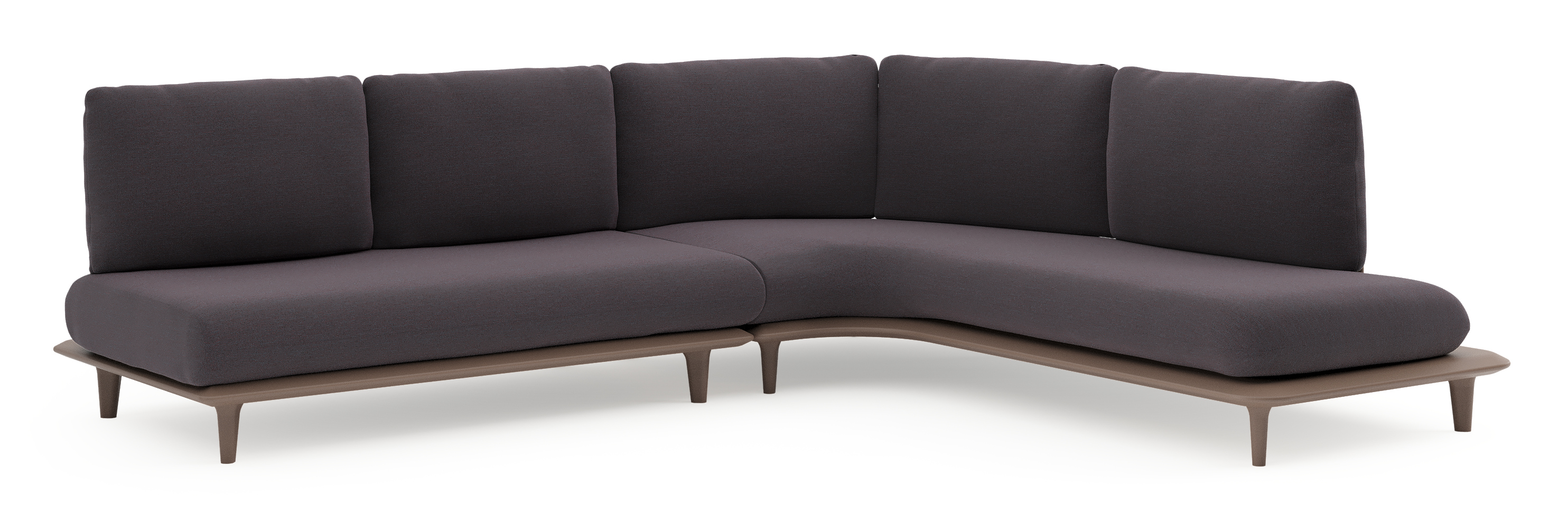 Salon de jardin d'angle Bomero en aluminium taupe et coussins en all weather sunbrella® luxe tundra red | Exterioo mobilier de jardin
