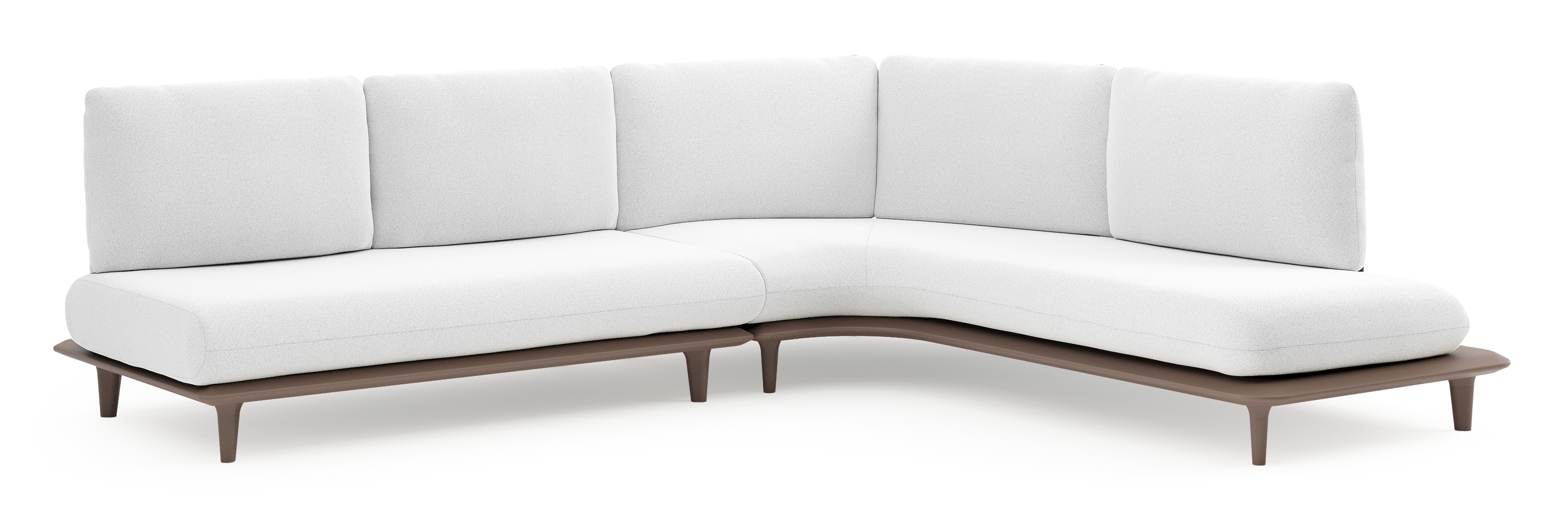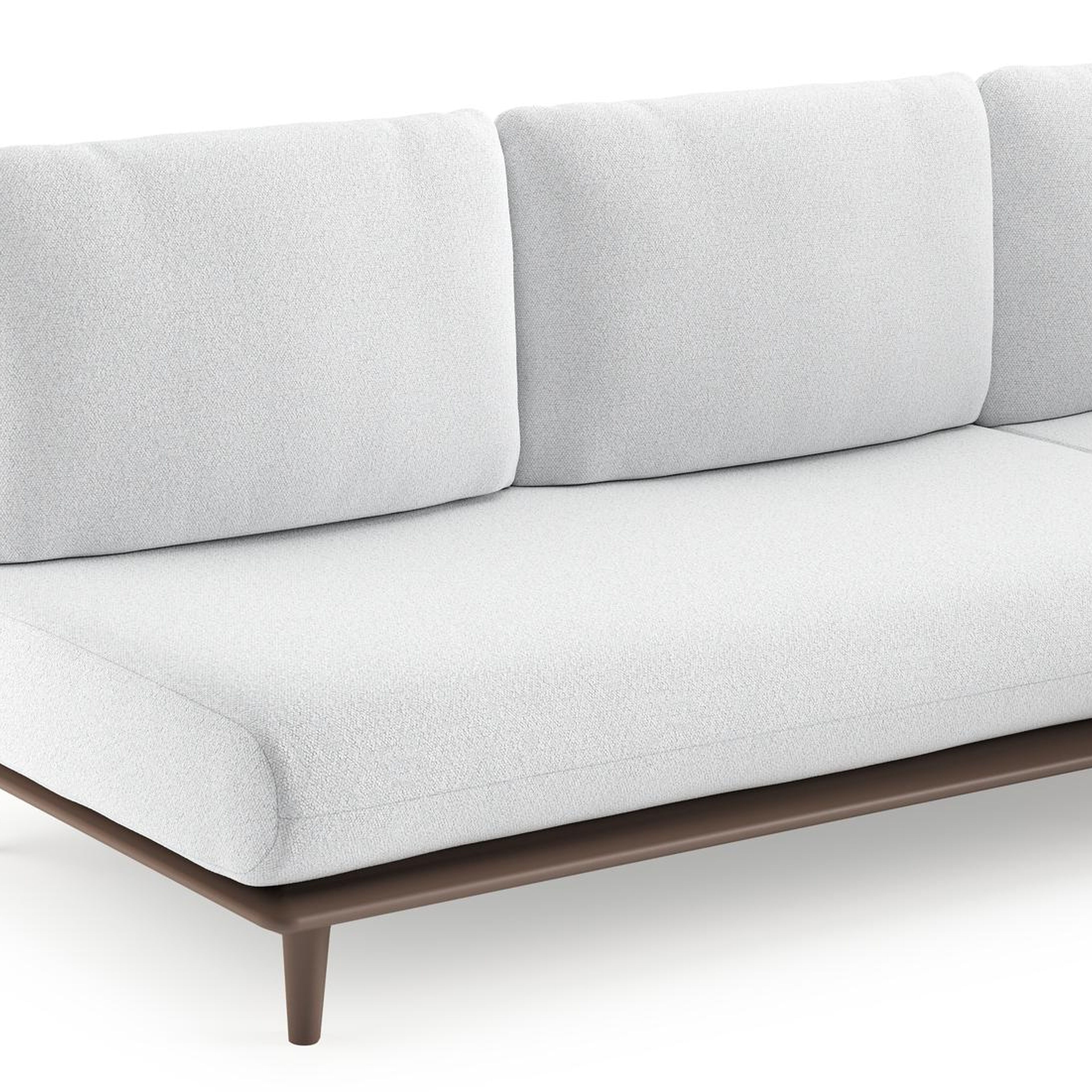 Salon de jardin d'angle Bomero en aluminium taupe et coussins en all weather solica ego birch | Exterioo mobilier de jardin