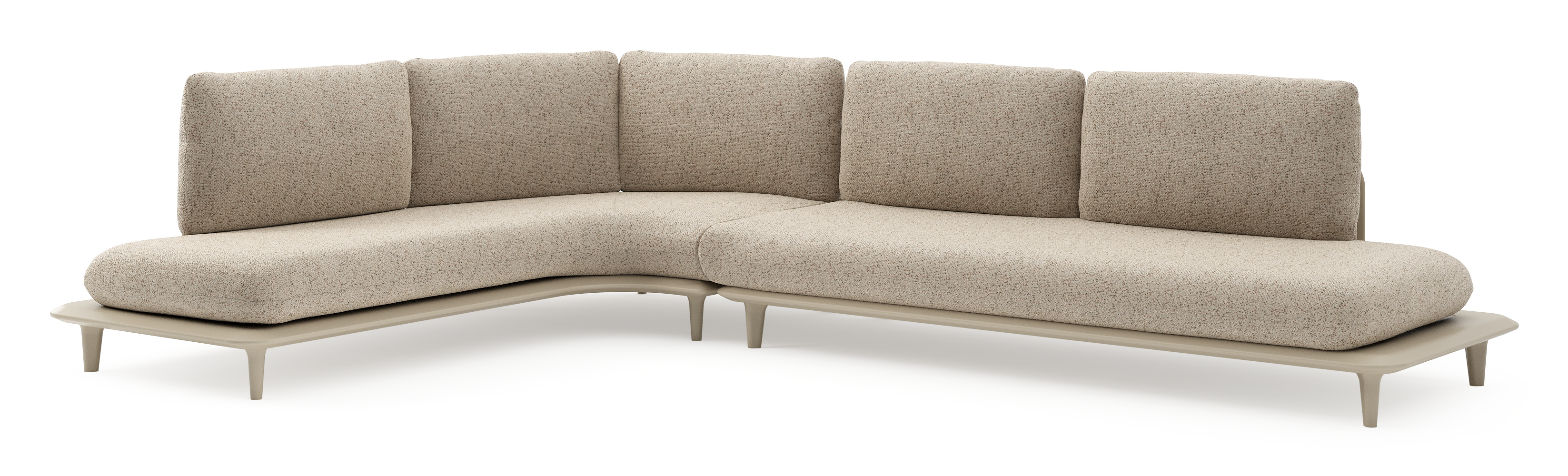 Salon de jardin d'angle Bomero en aluminium beige et coussins en all weather cosytica bora jungle | Exterioo mobilier de jardin