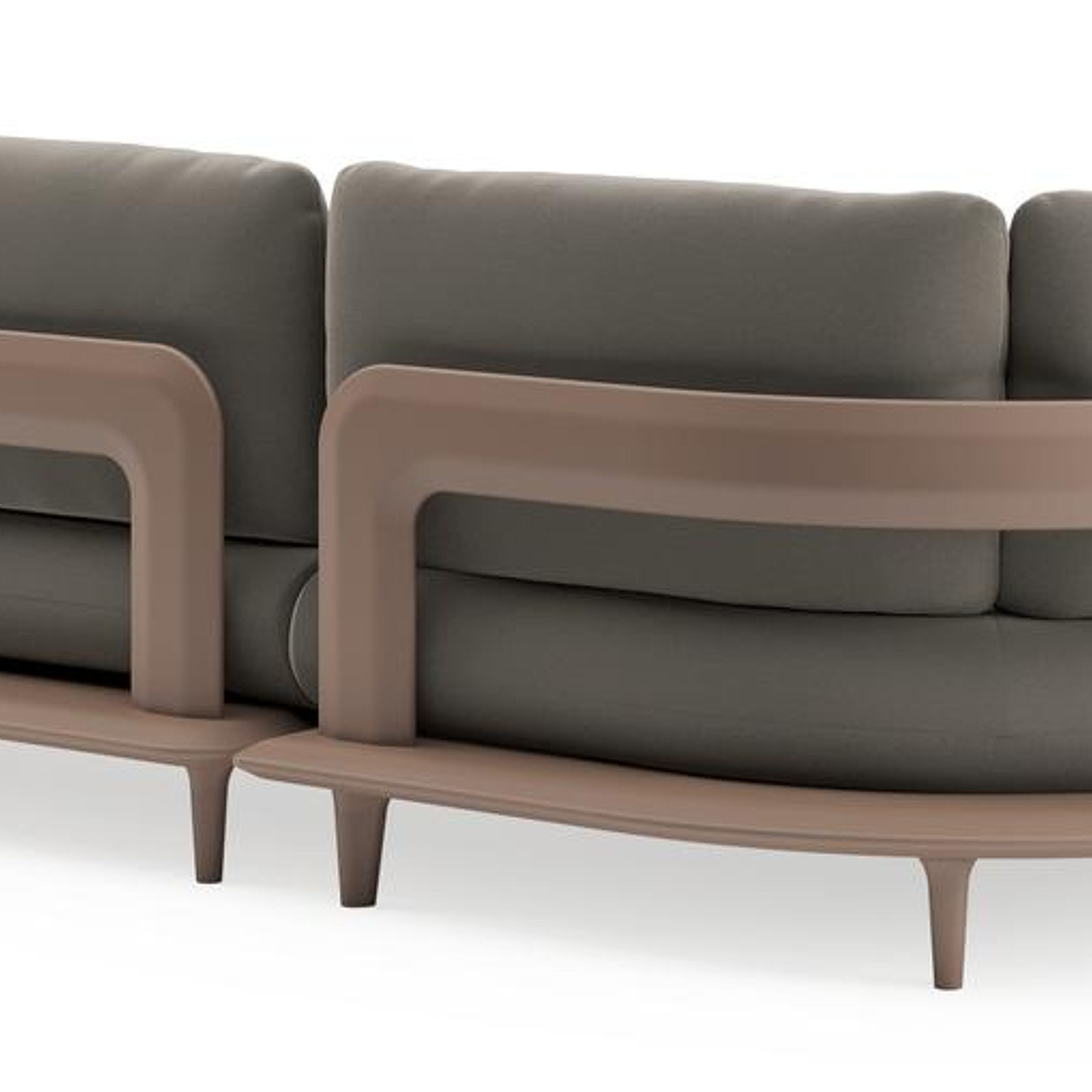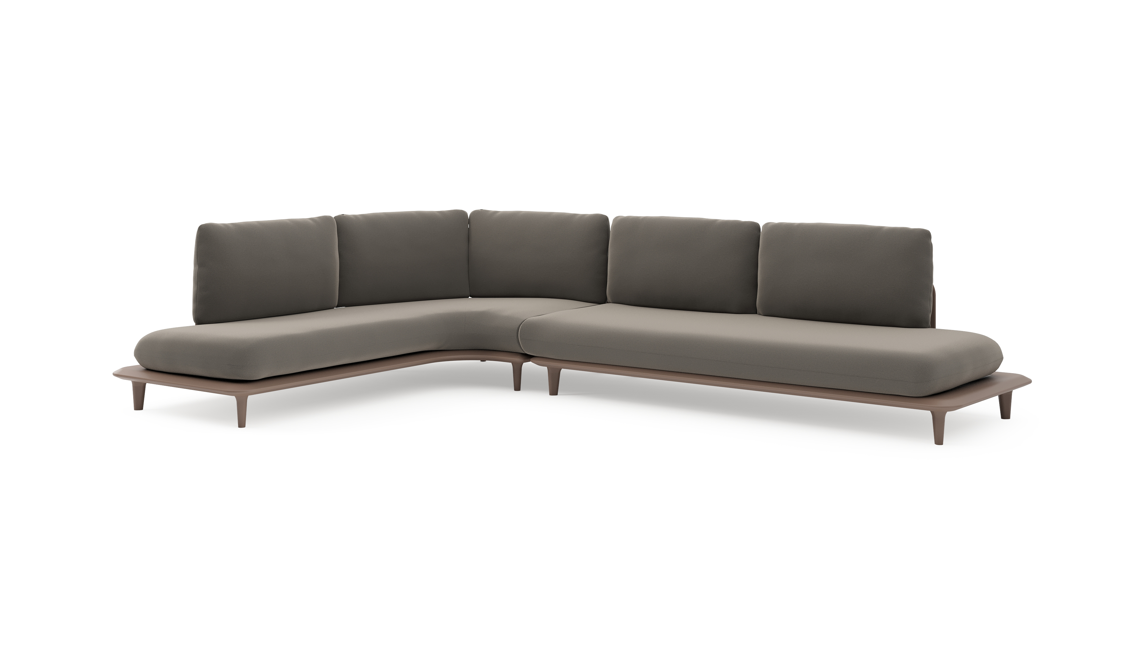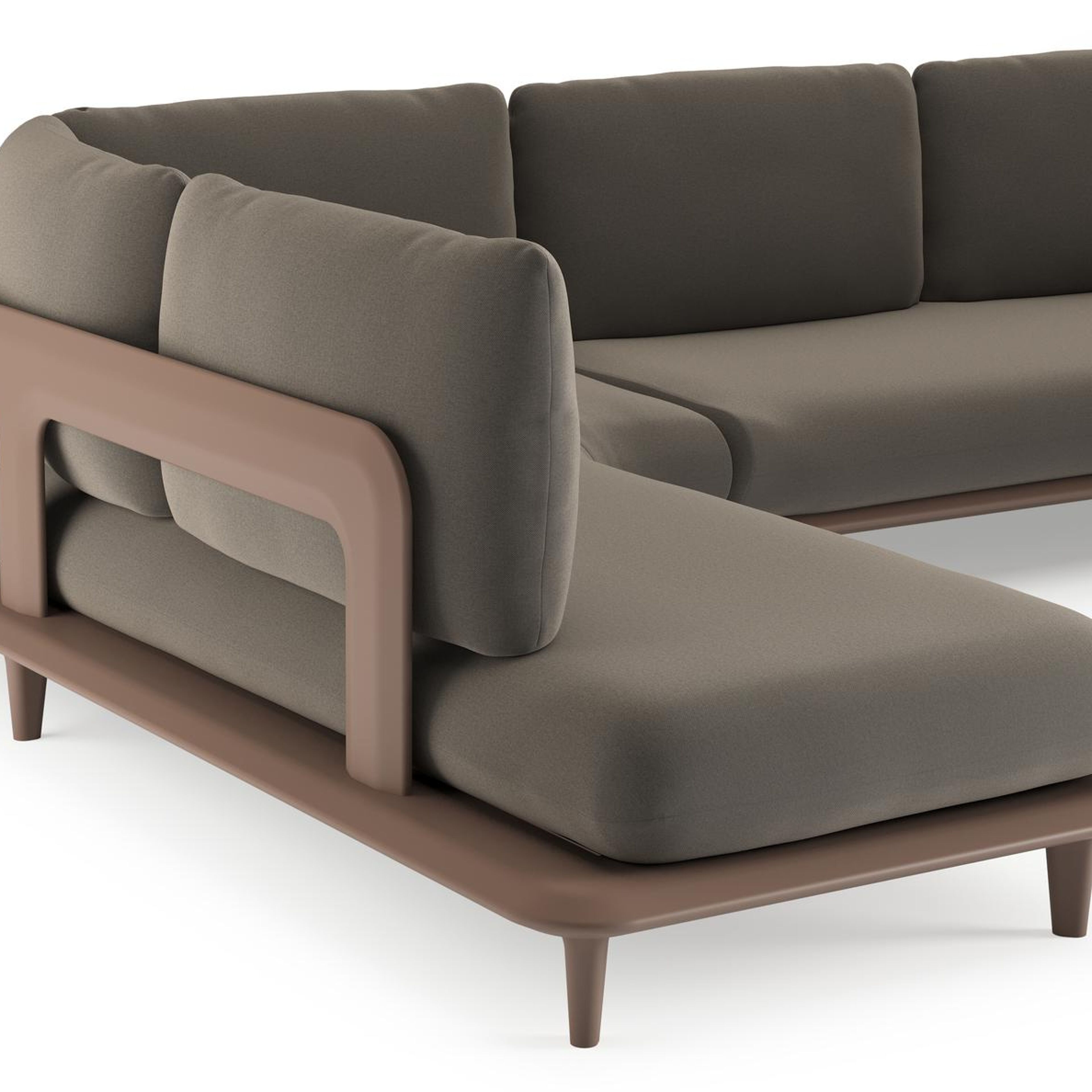 Salon de jardin d'angle Bomero en aluminium taupe et coussins en all weather sunbrella® luxe natte carbon beige | Exterioo mobilier de jardin