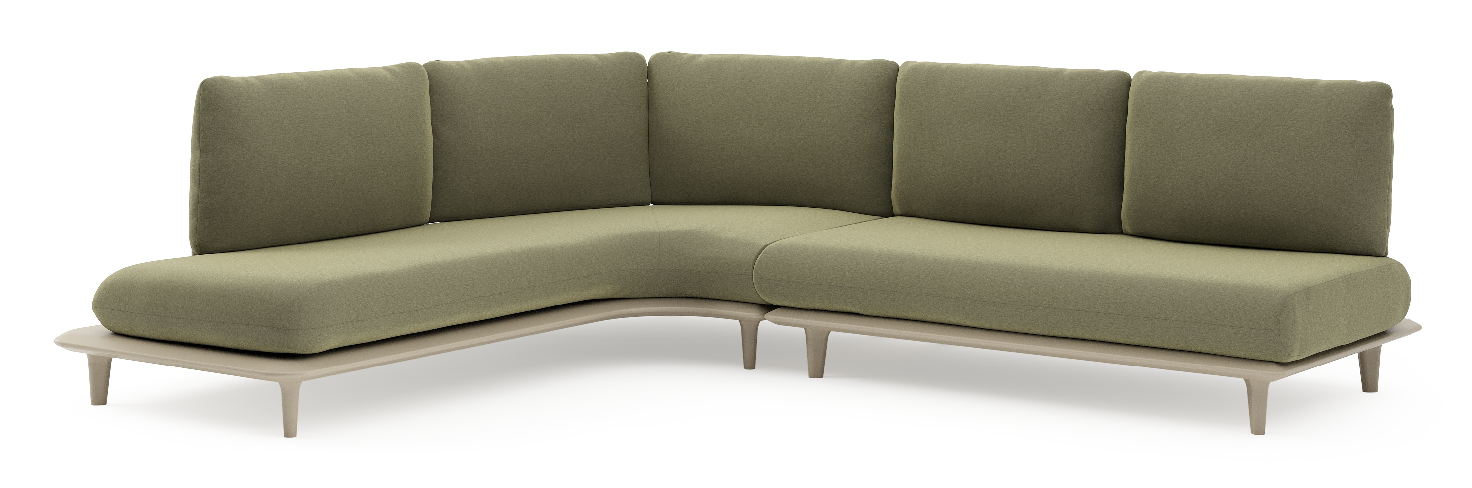 Salon de jardin d'angle Bomero en aluminium beige et coussins en all weather sunbrella® luxe heritage leaf | Exterioo mobilier de jardin