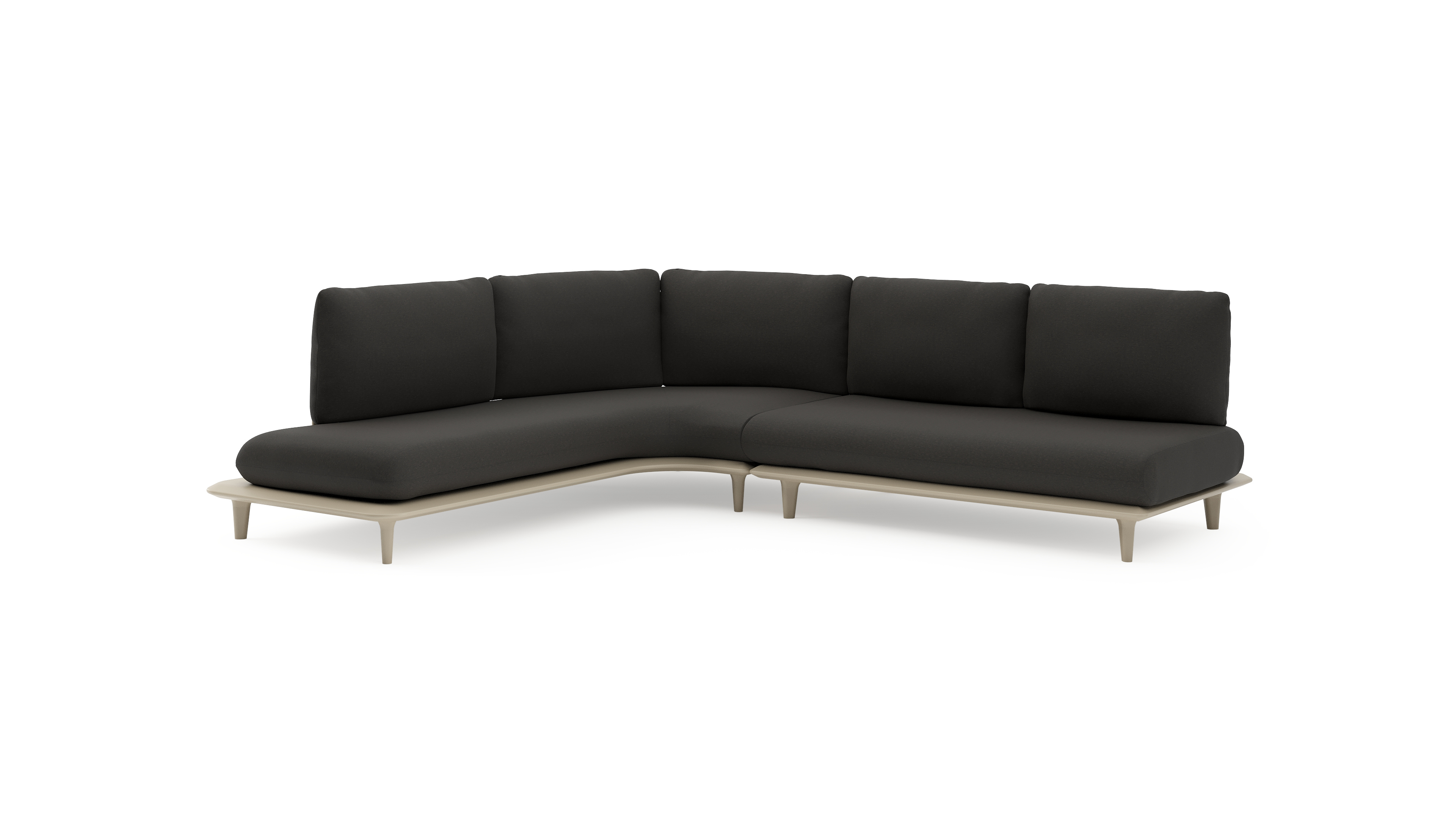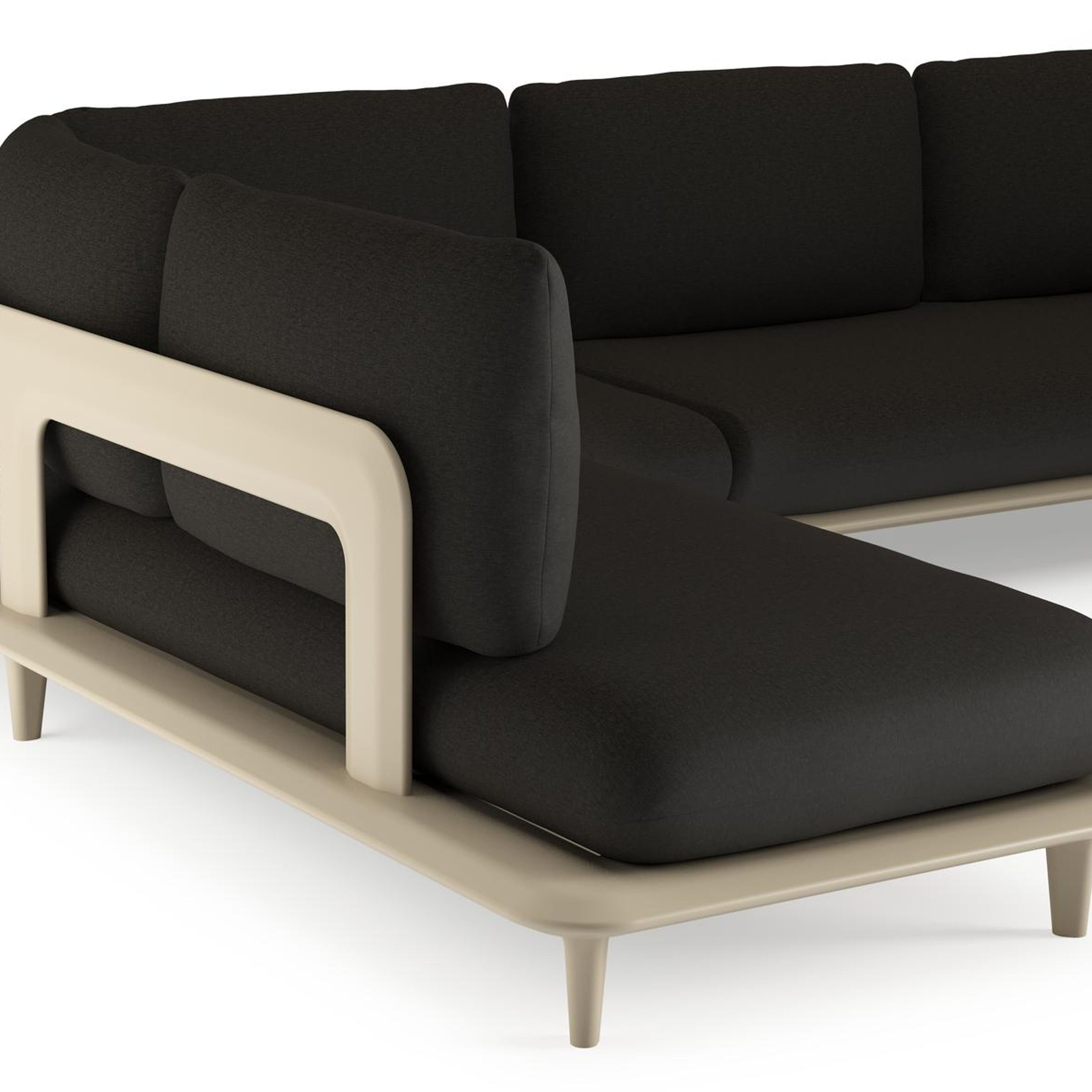 Salon de jardin d'angle Bomero en aluminium beige et coussins en all weather sunbrella® luxe heritage char | Exterioo mobilier de jardin