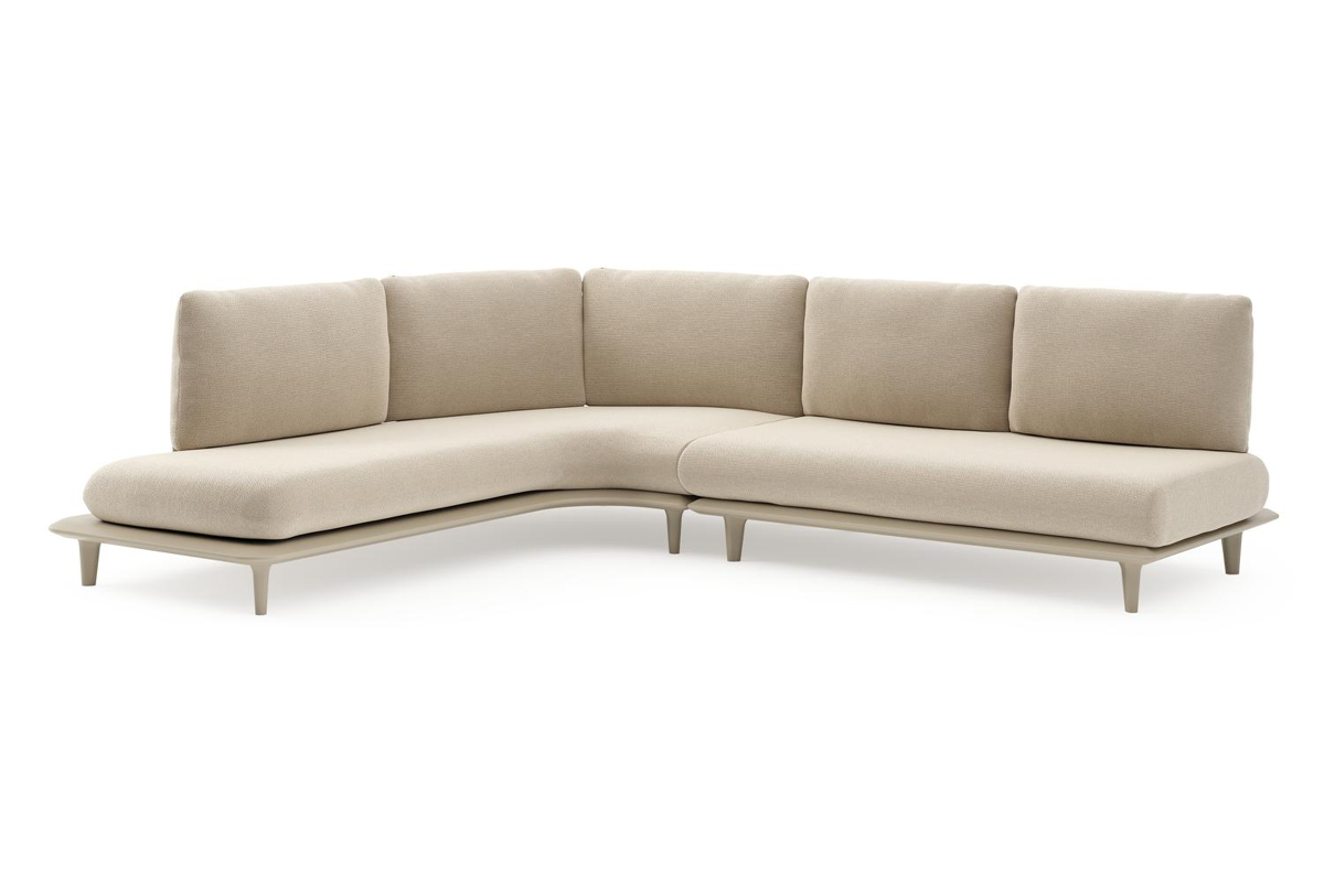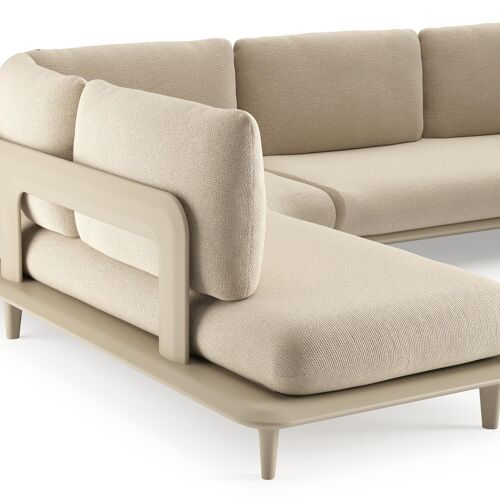 Salon de jardin d'angle Bomero en aluminium beige et coussins en all weather cosytica althea chalk | Exterioo