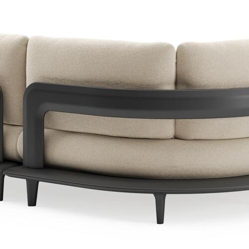 Salon de jardin d'angle Bomero en aluminium noir et coussins en all weather cosytica althea chalk | Exterioo