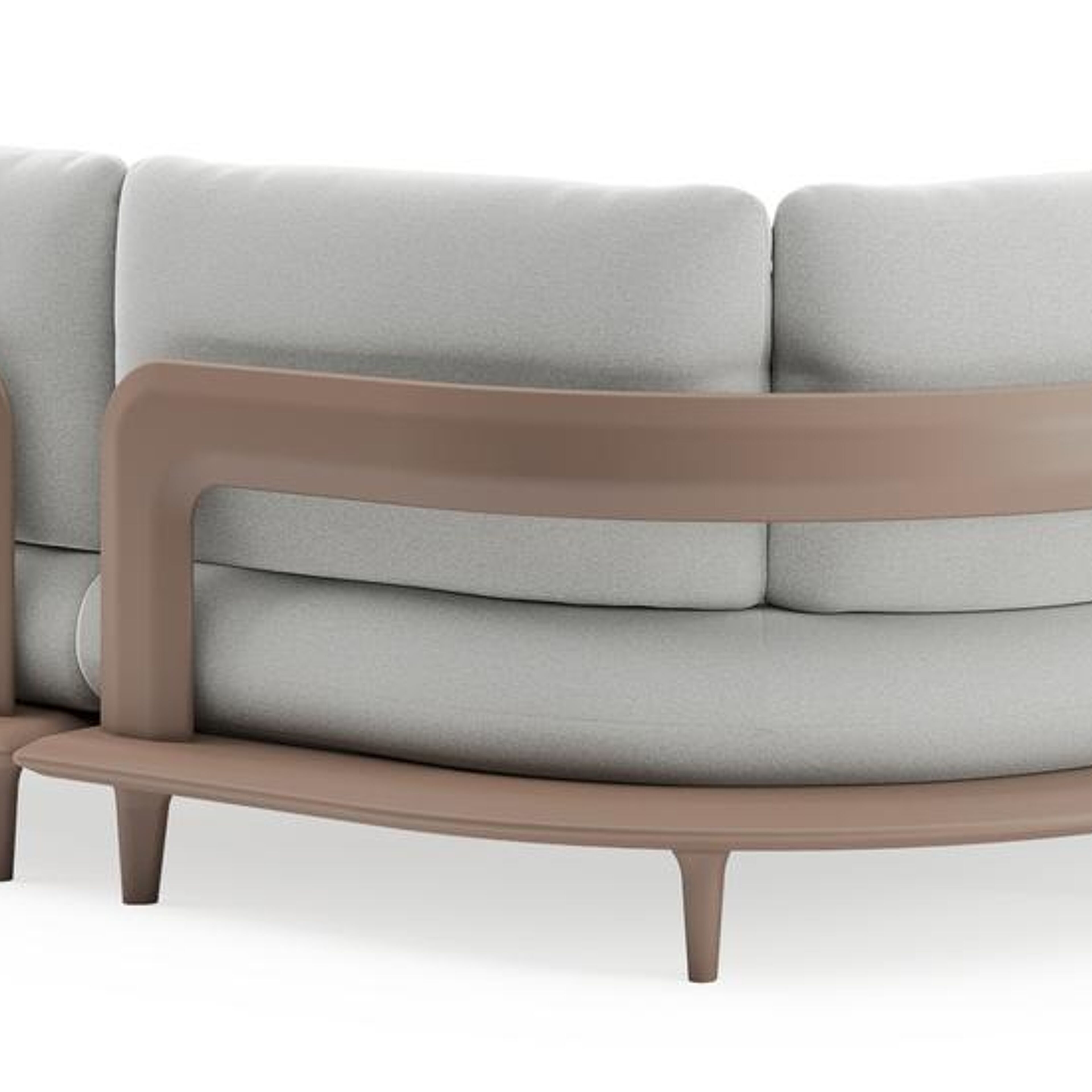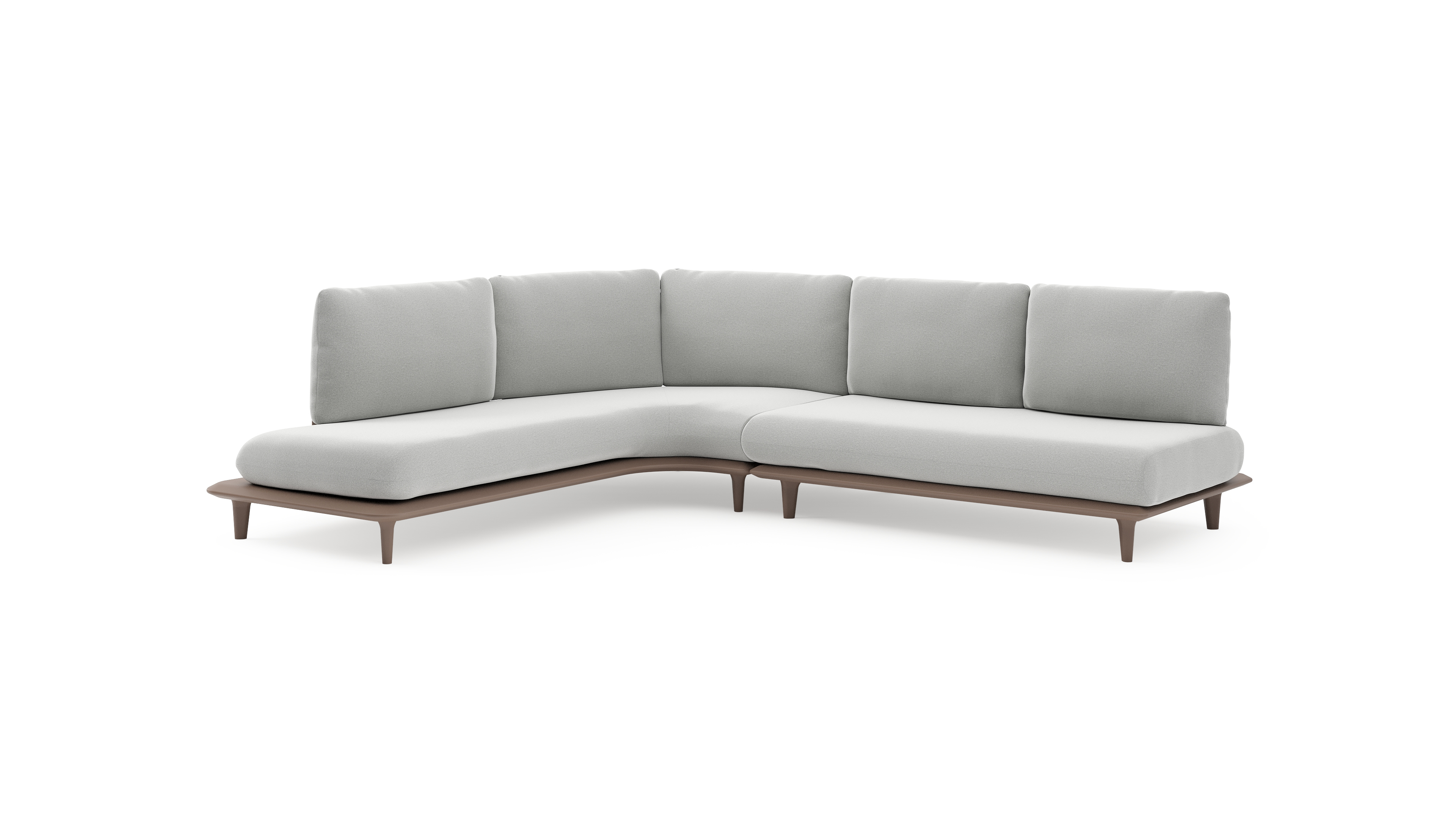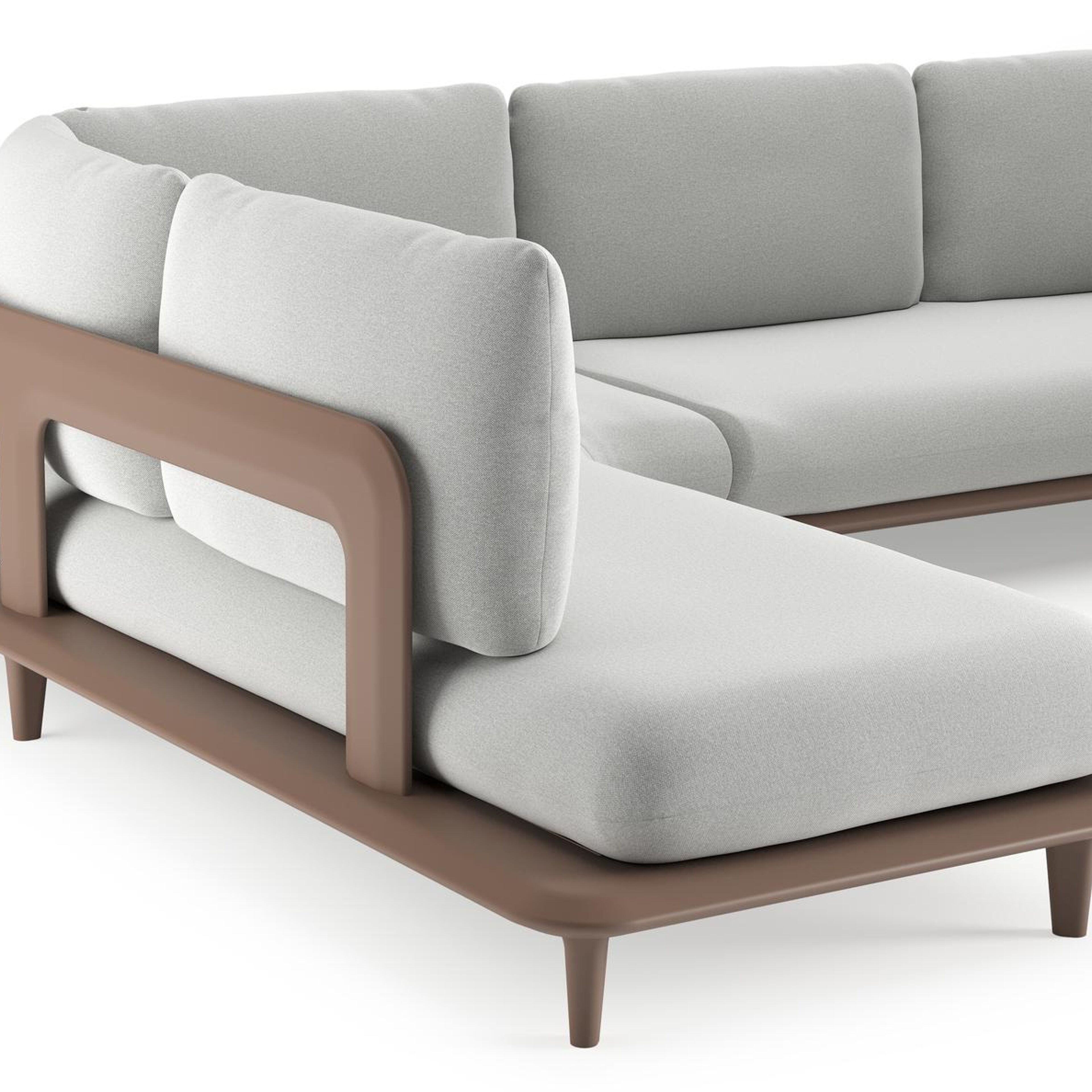 Salon de jardin d'angle Bomero en aluminium taupe et coussins en all weather sunbrella® luxe natte grey chine | Exterioo mobilier de jardin