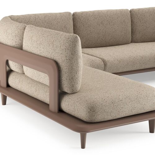 Salon de jardin d'angle Bomero en aluminium taupe et coussins en all weather cosytica bora jungle | Exterioo