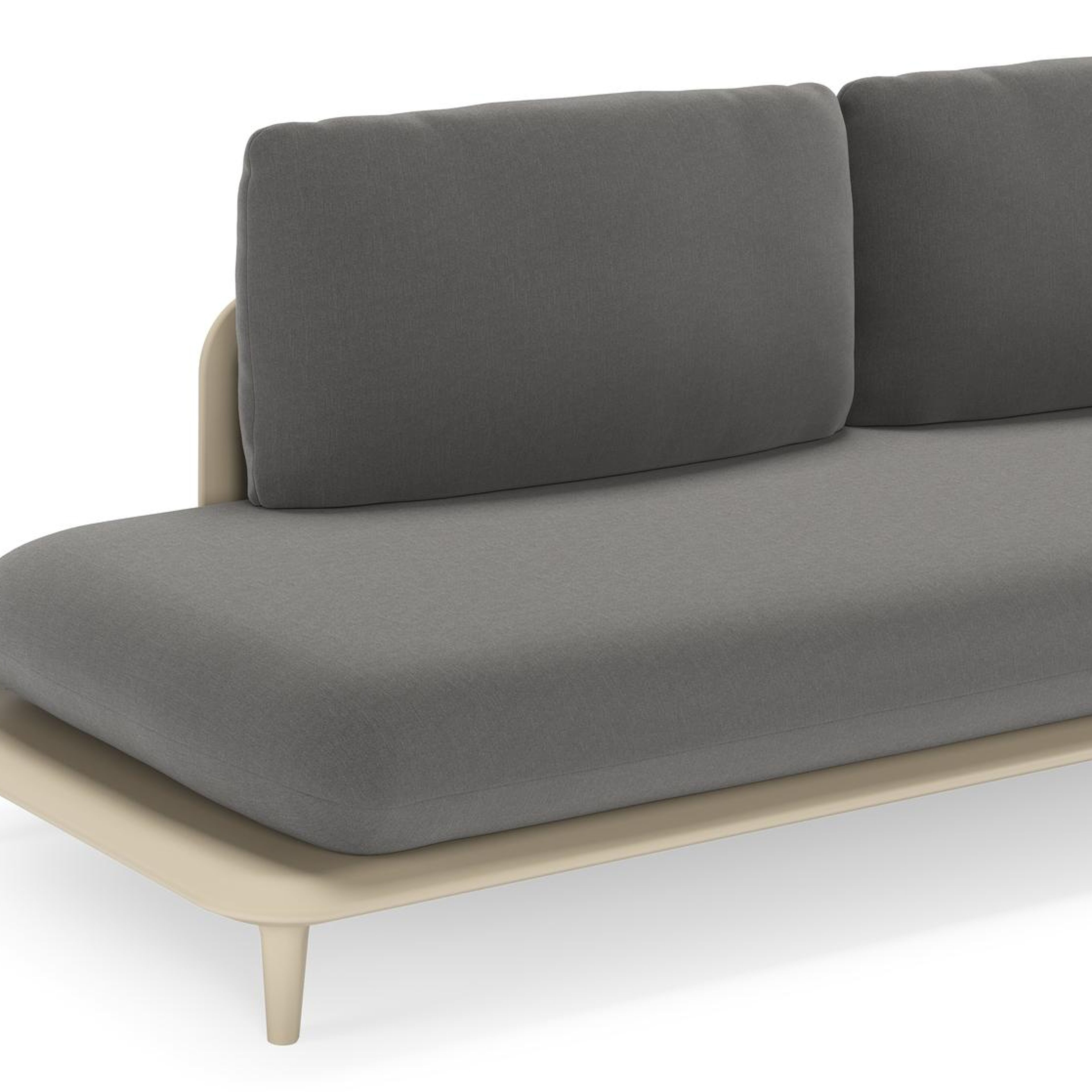 Salon de jardin d'angle Bomero en aluminium beige et coussins en all weather sunbrella® luxe natte charcoal chine | Exterioo mobilier de jardin