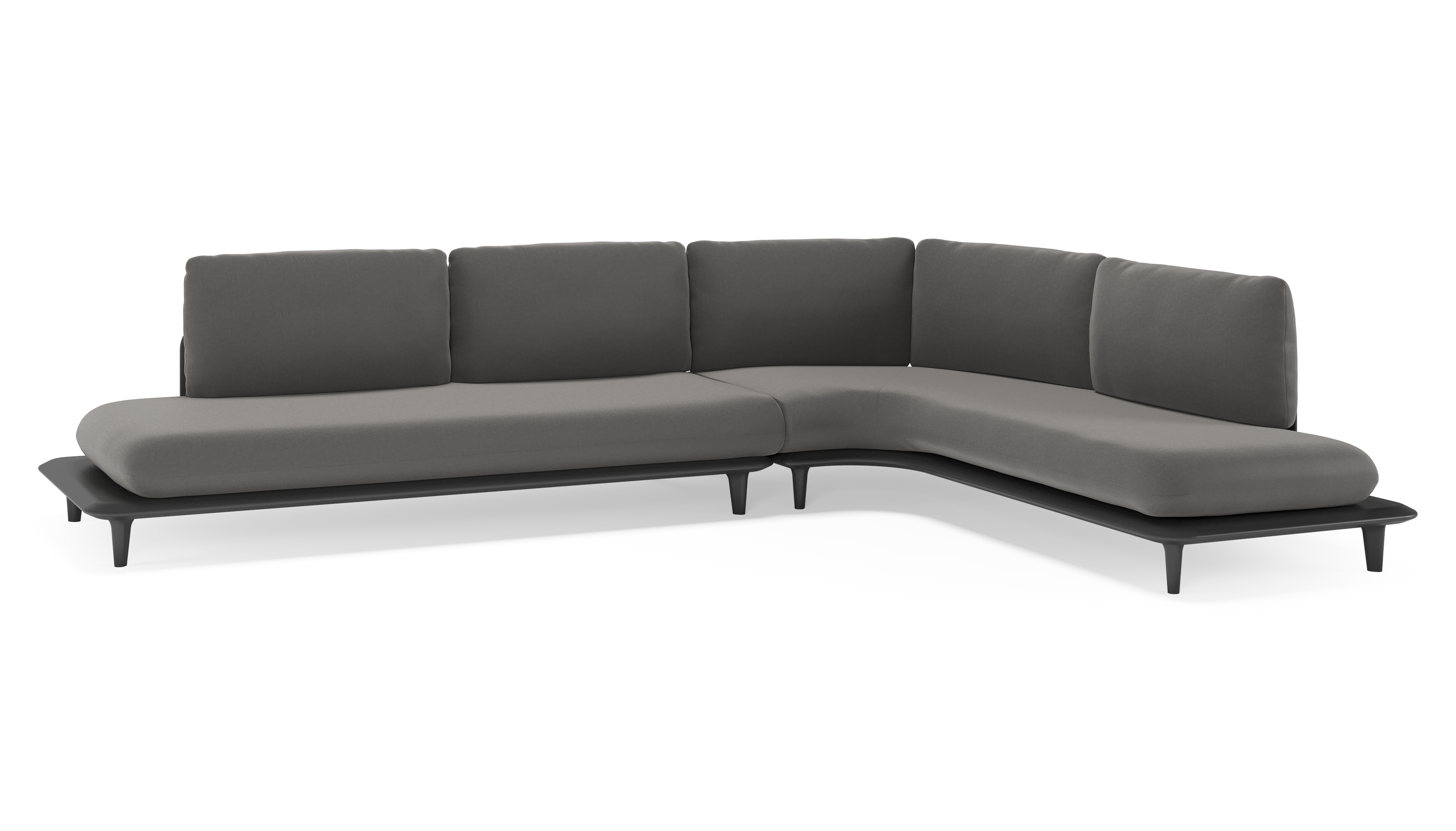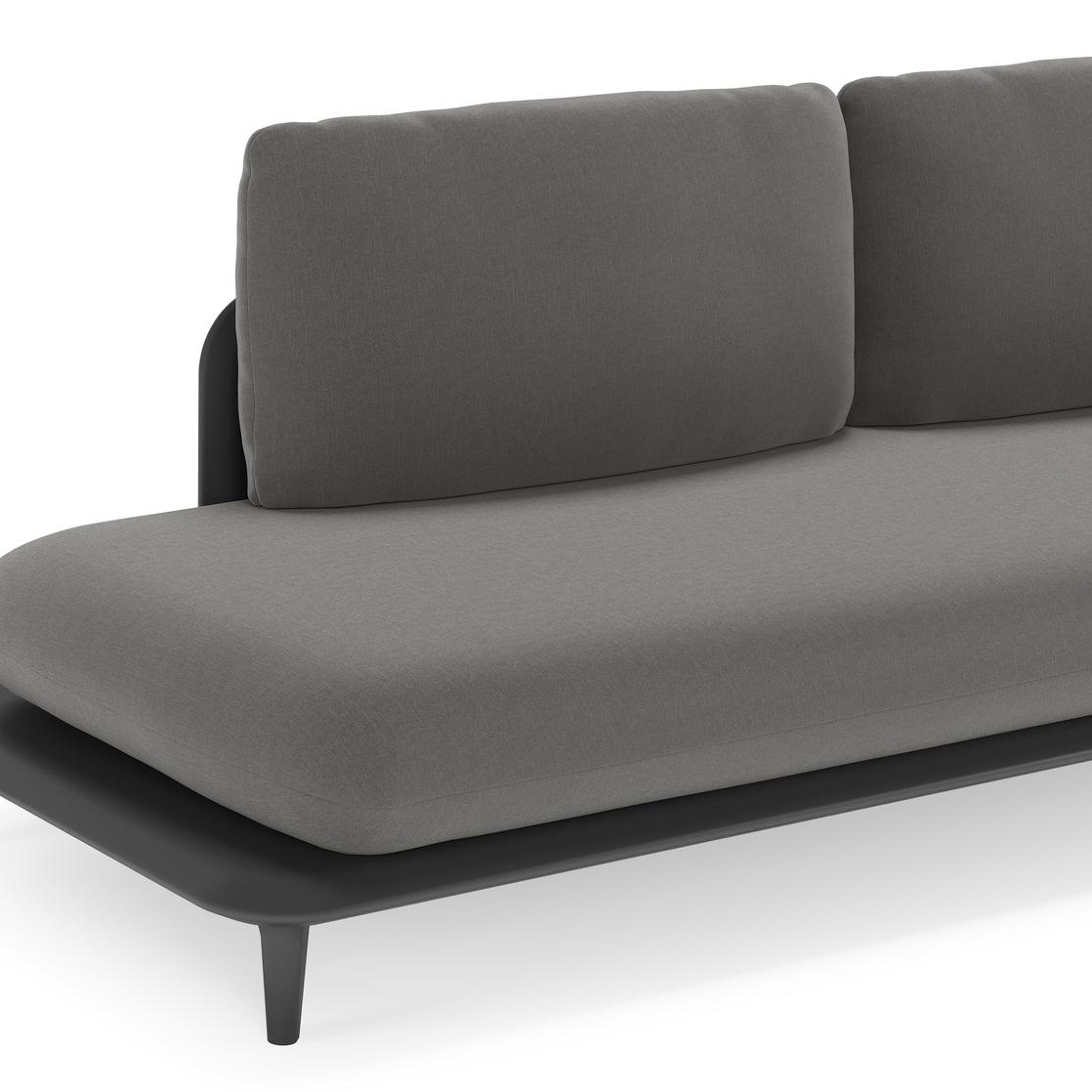 Salon de jardin d'angle Bomero en aluminium noir et coussins en all weather sunbrella® luxe natte charcoal chine | Exterioo mobilier de jardin