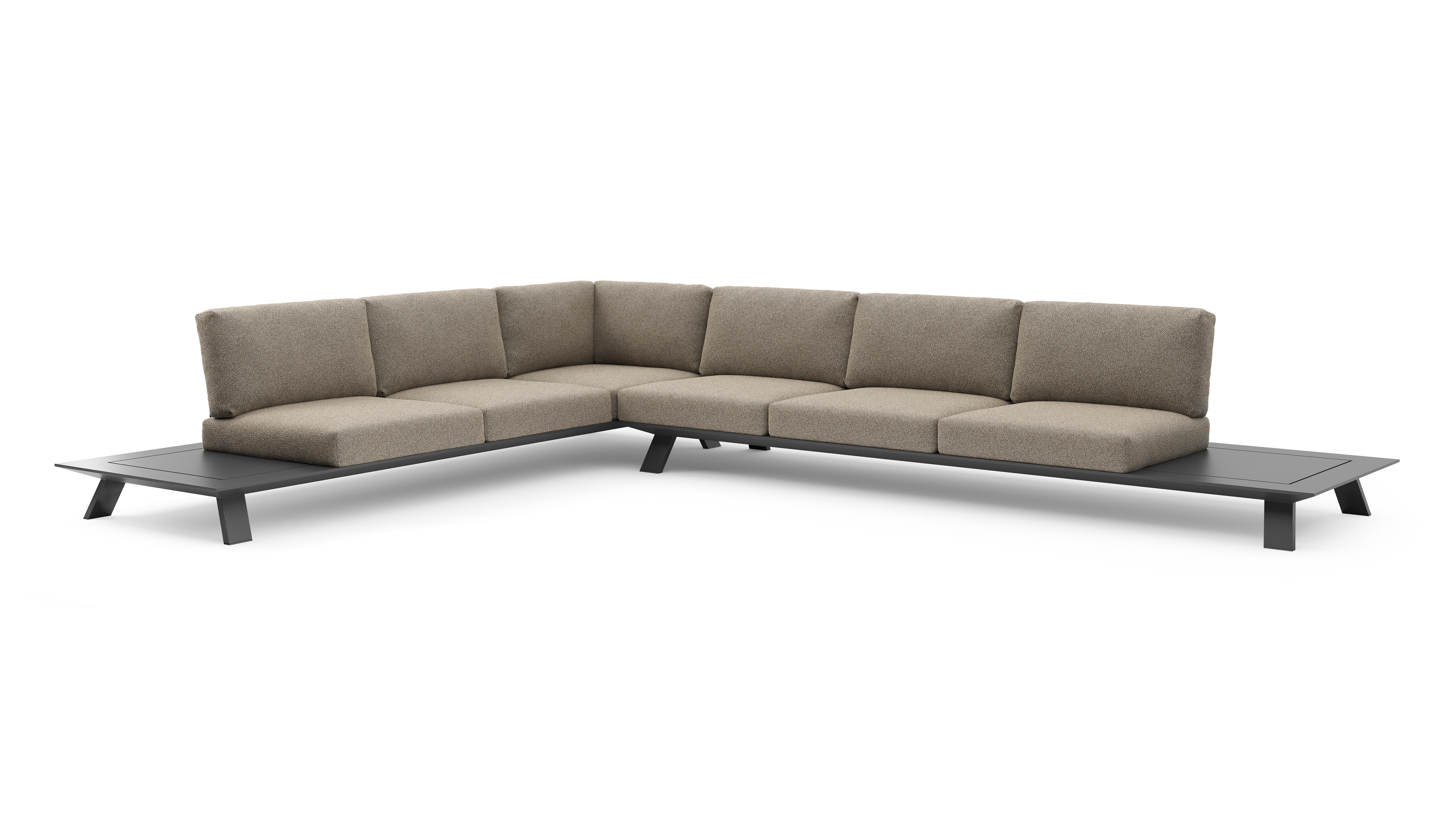 Salon de jardin d'angle Cesano en aluminium noir et coussin en all weather Cosytica madagascar burch | Exterioo mobilier de jardin