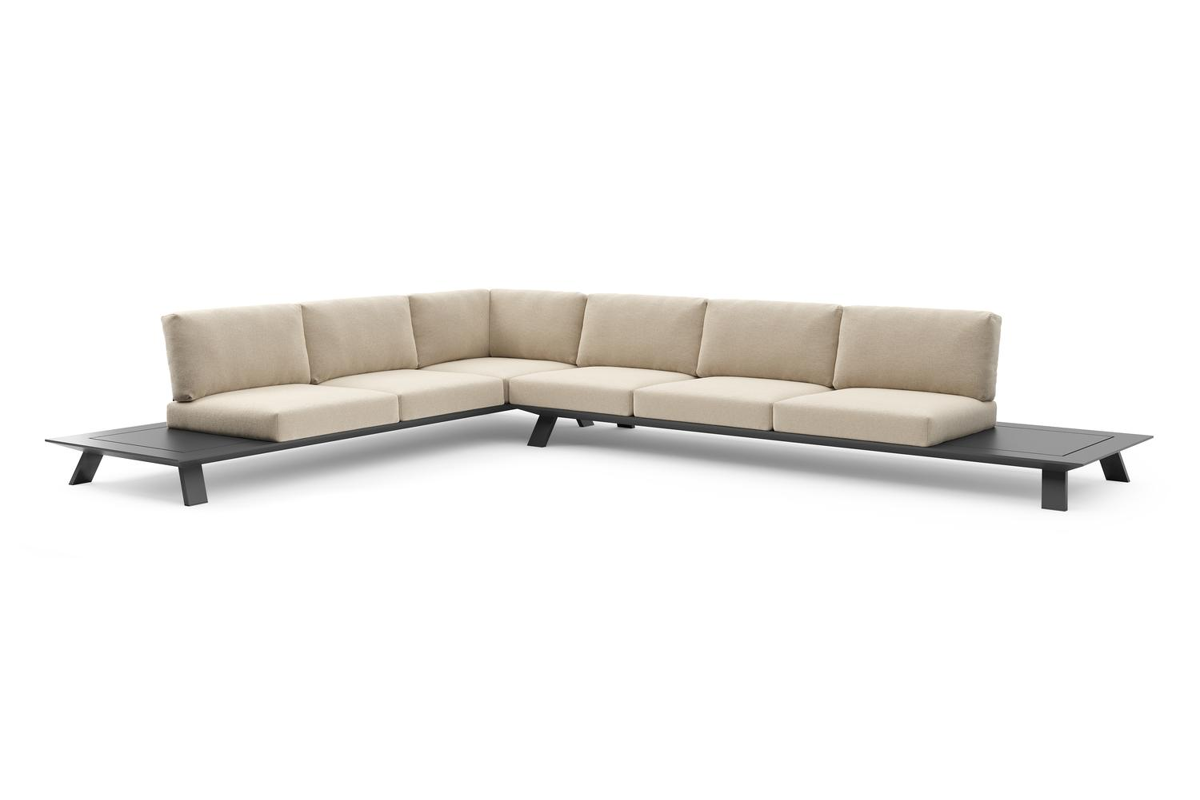 Salon de jardin d'angle Cesano en aluminium noir et coussin en all weather Cosytica althea chalk | Exterioo