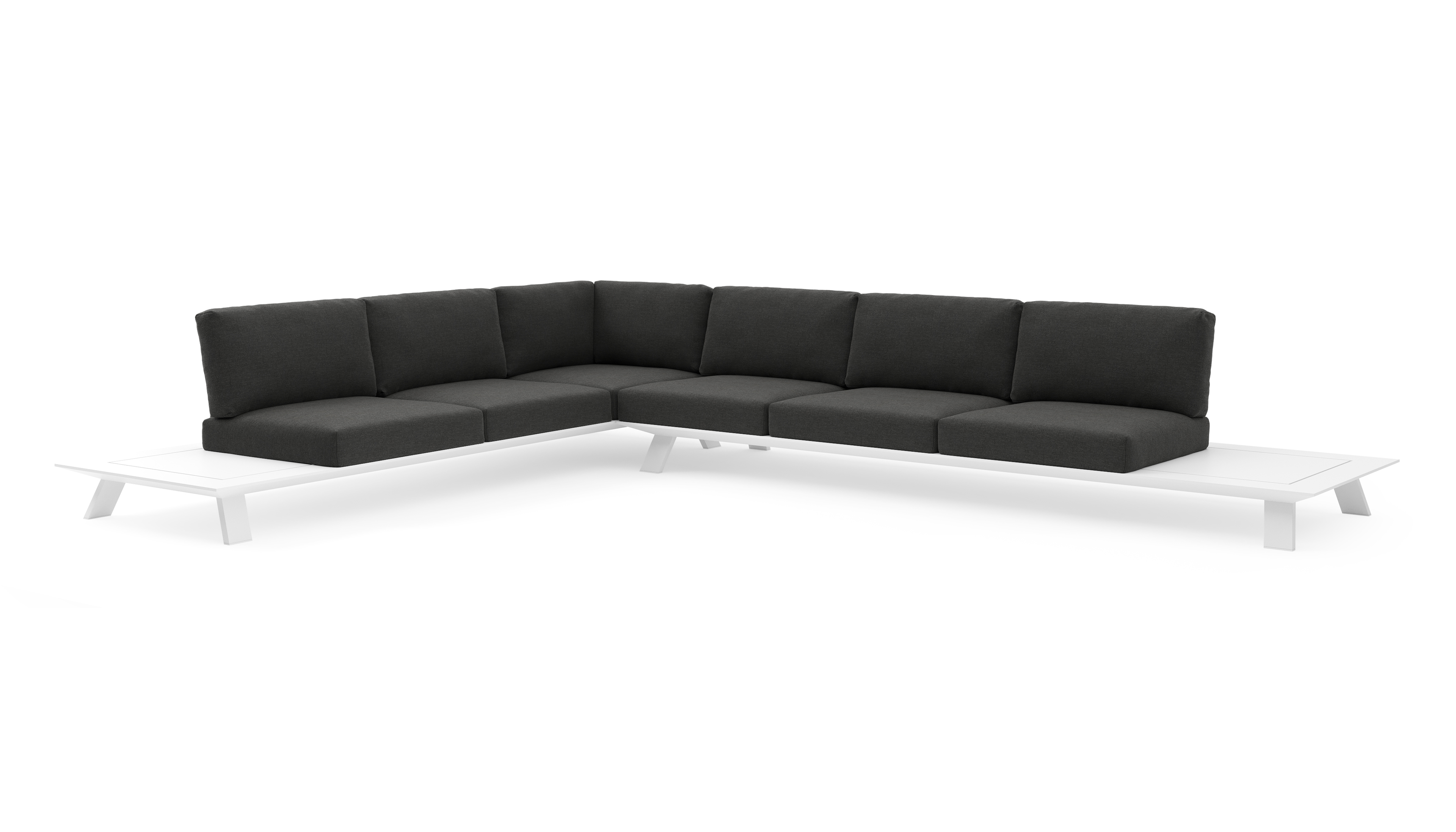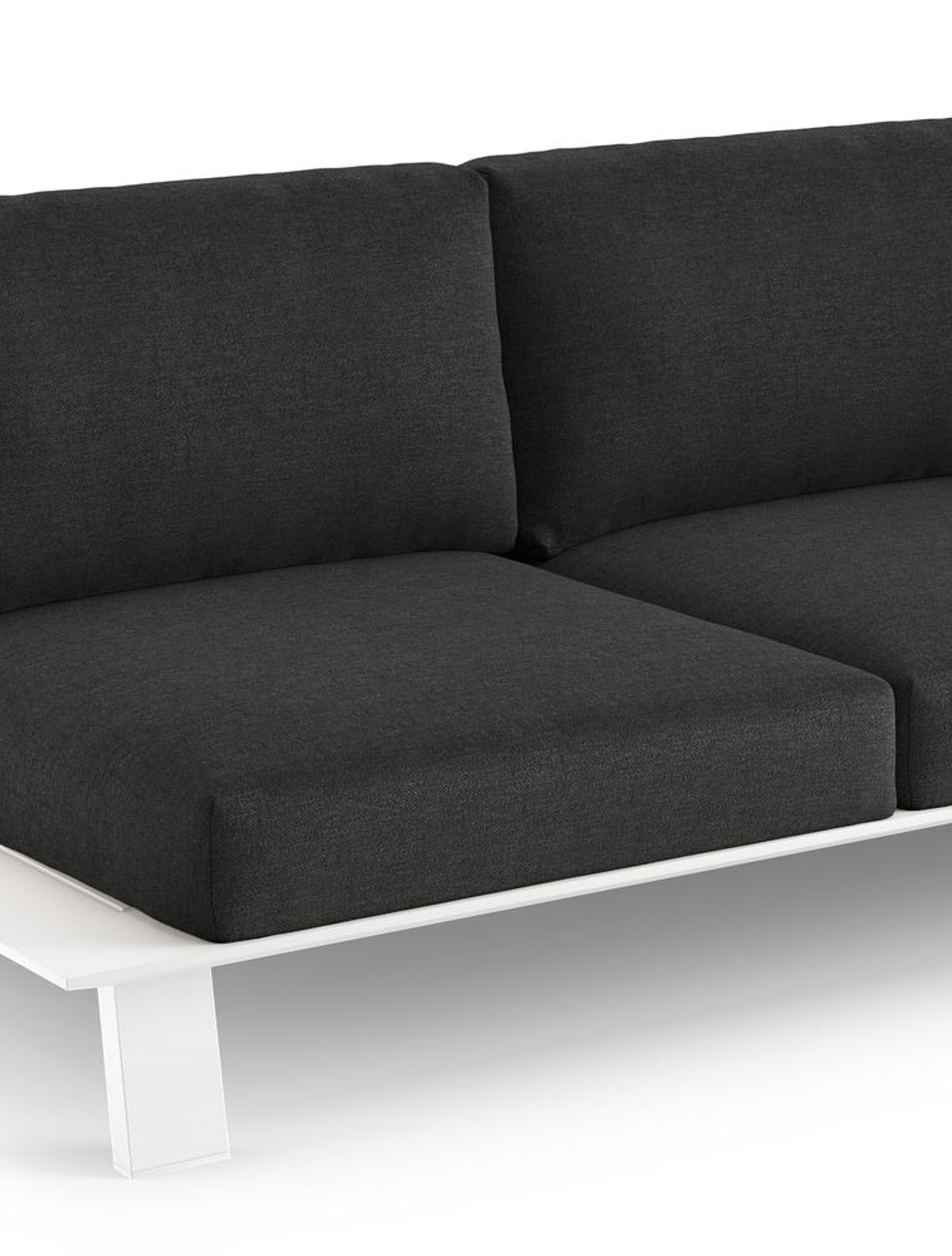 Salon de jardin d'angle Cesano en aluminium blanc et coussin en all weather Sunbrella® luxe chartres sooty | Exterioo mobilier de jardin