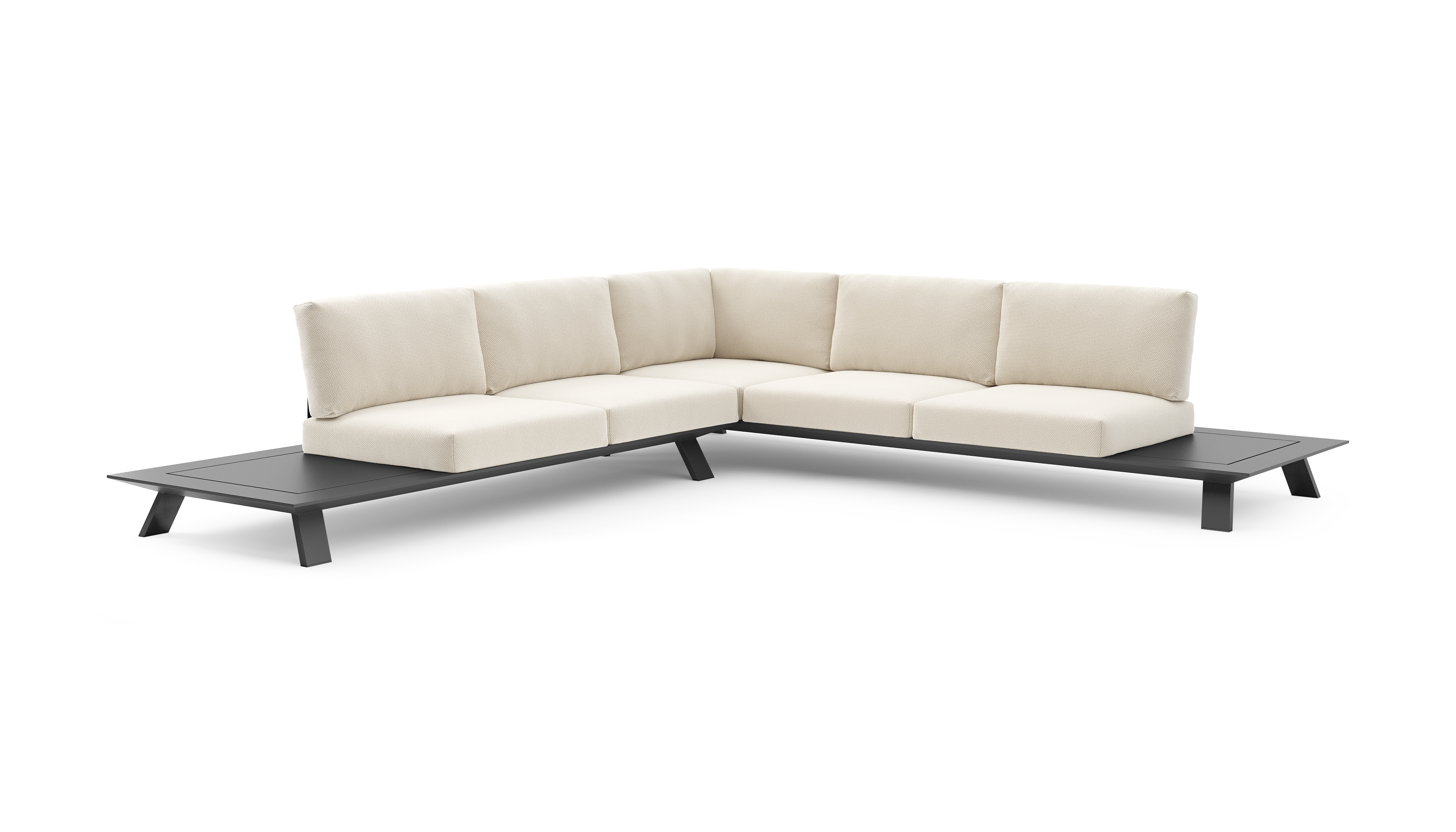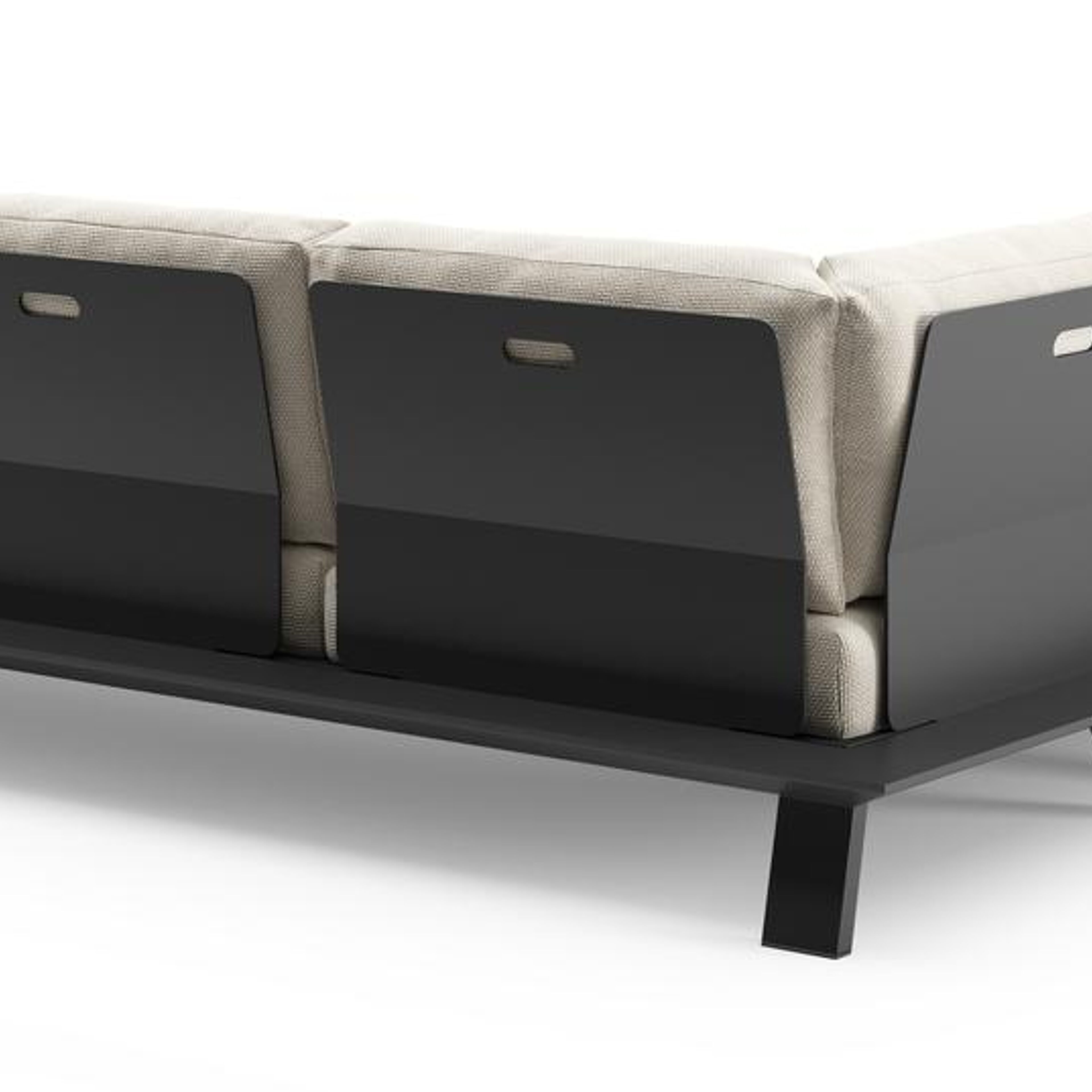 Salon de jardin d'angle Cesano en aluminium noir et coussin en all weather Cosytica althea off white | Exterioo mobilier de jardin