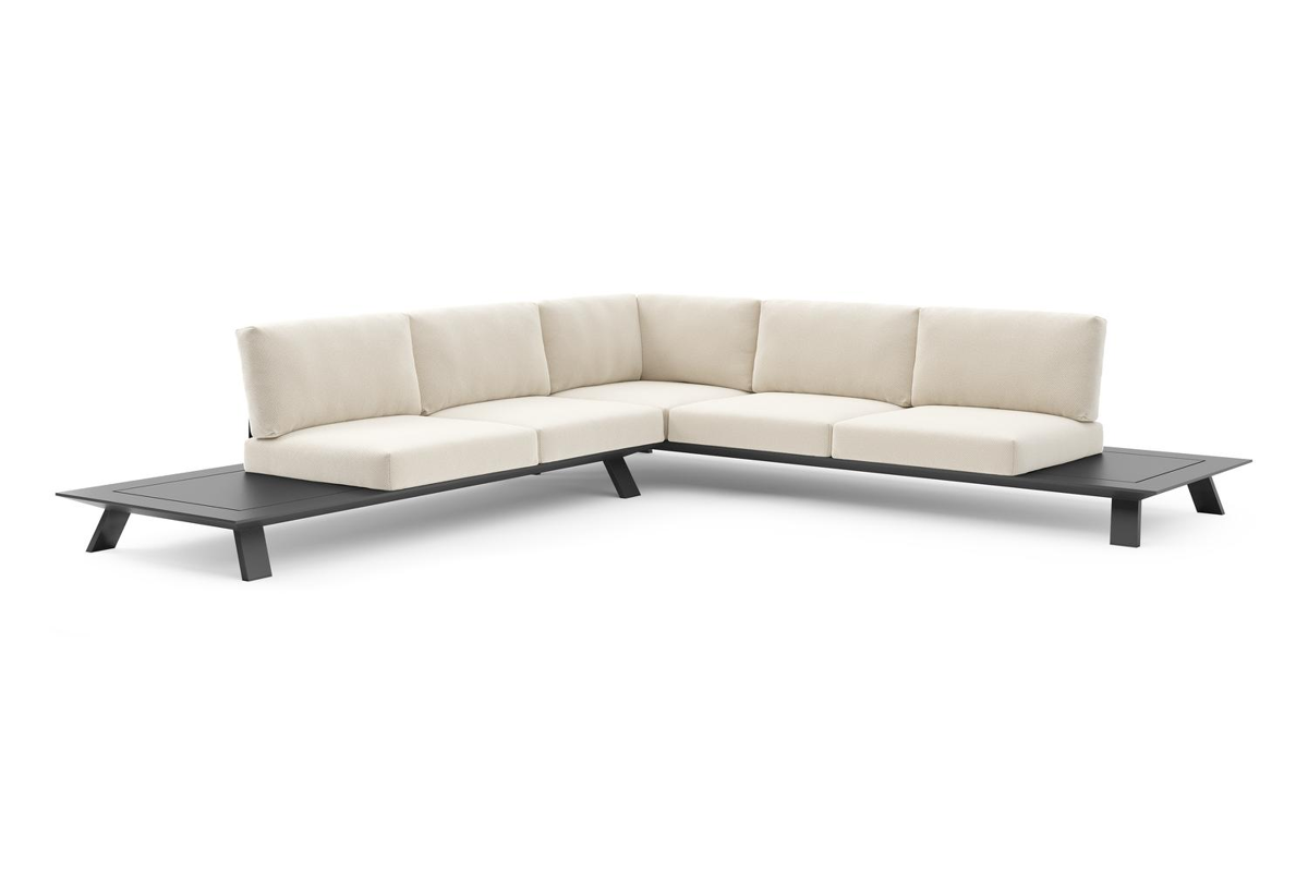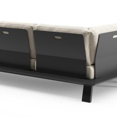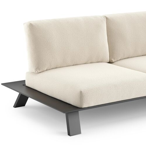 Salon de jardin d'angle Cesano en aluminium noir et coussin en all weather Cosytica althea off white | Exterioo