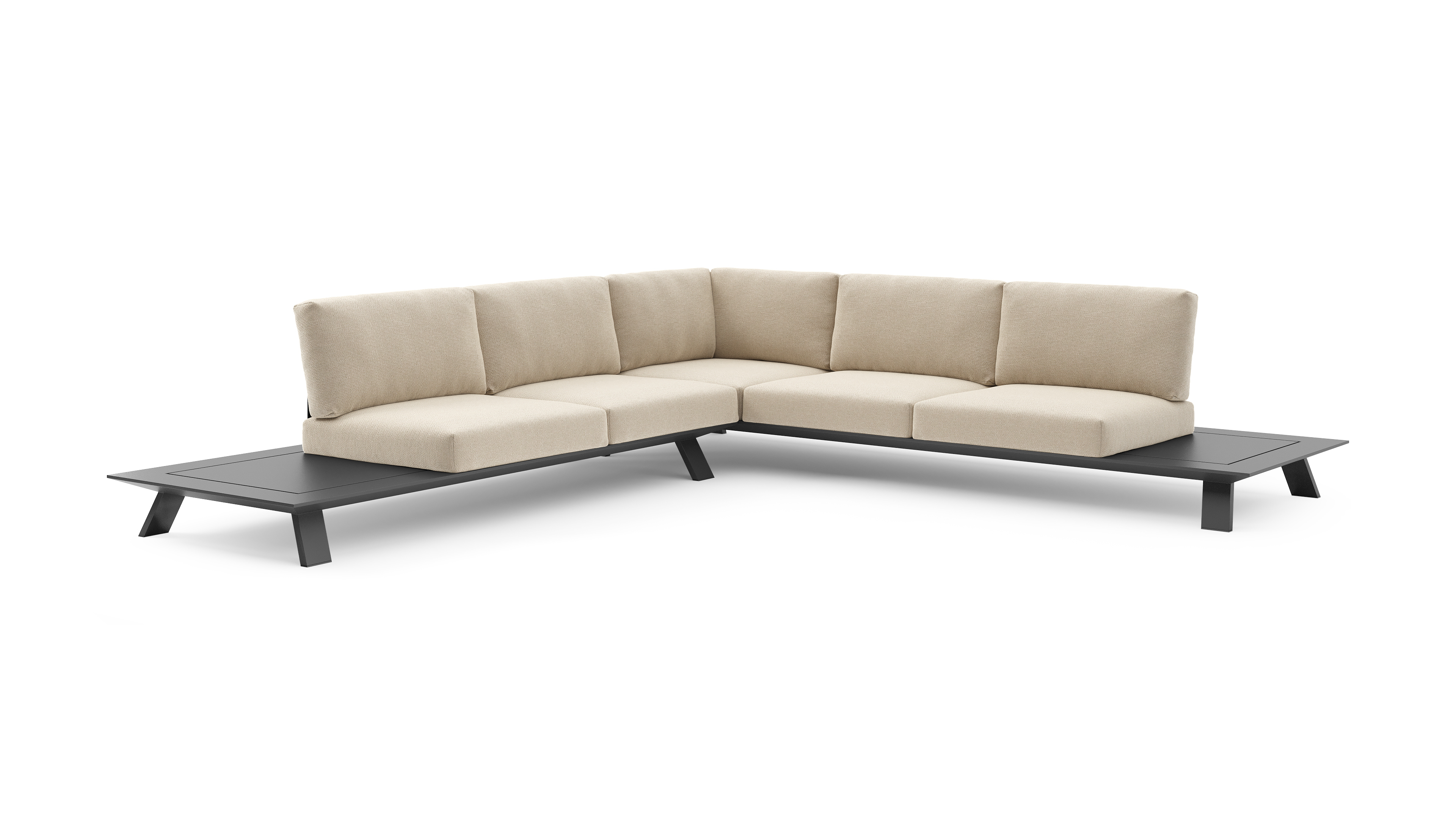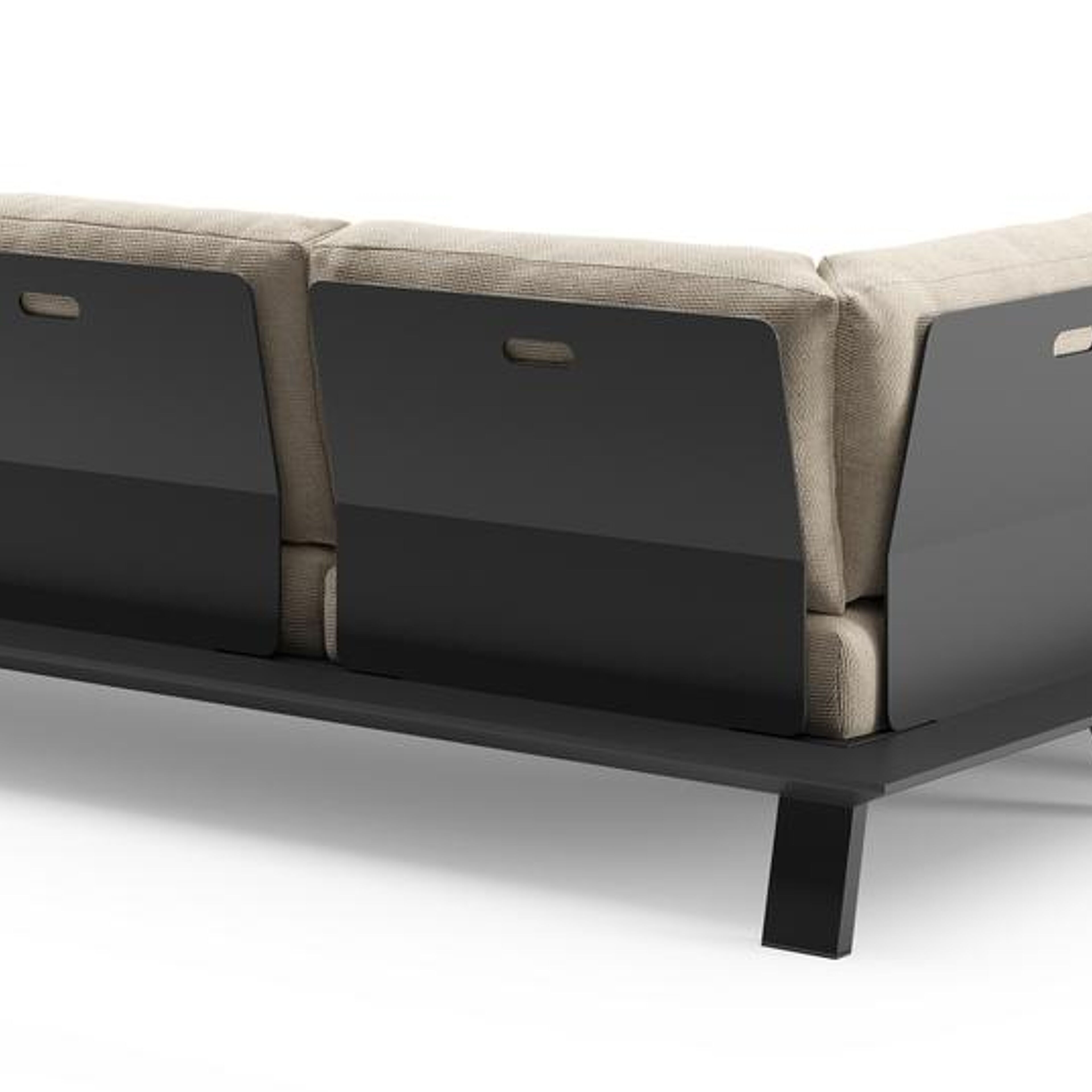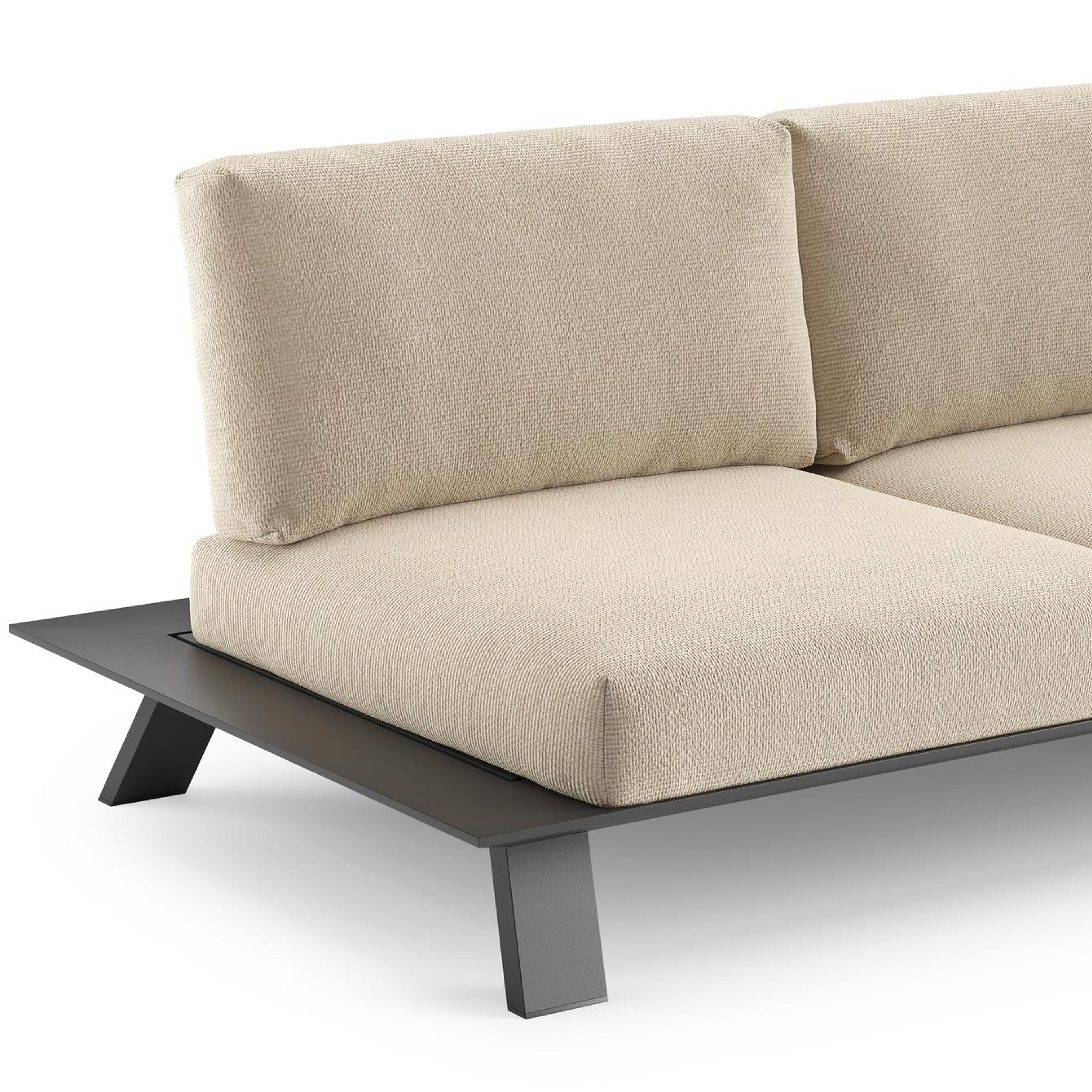 Salon de jardin d'angle Cesano en aluminium noir et coussin en all weather Cosytica althea chalk | Exterioo mobilier de jardin