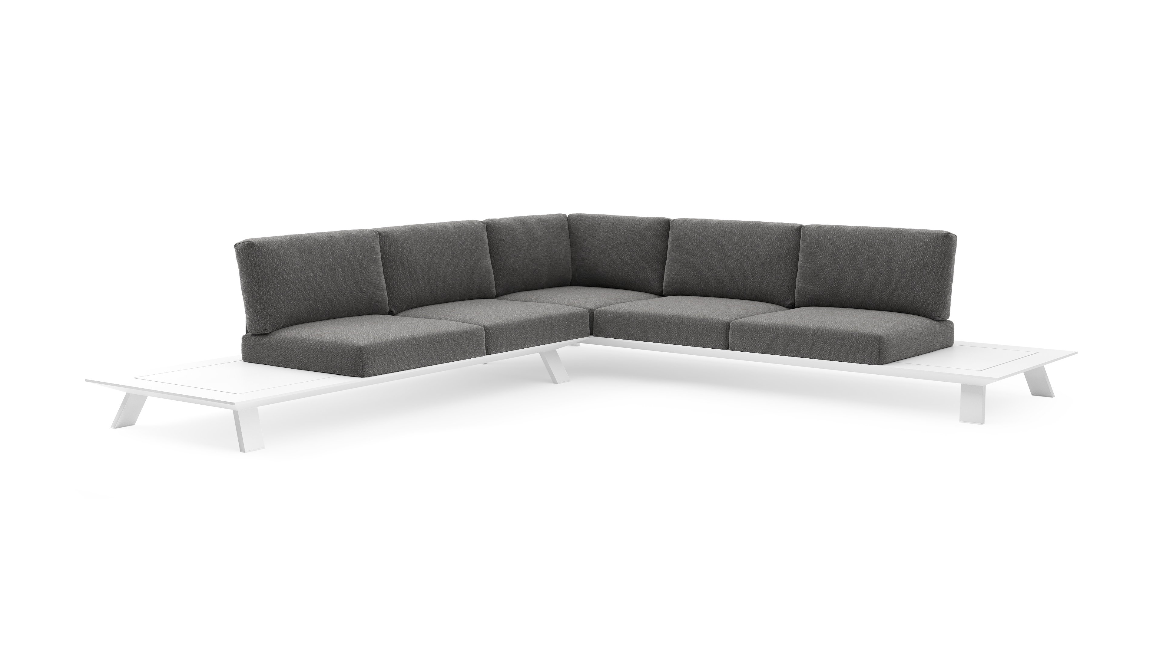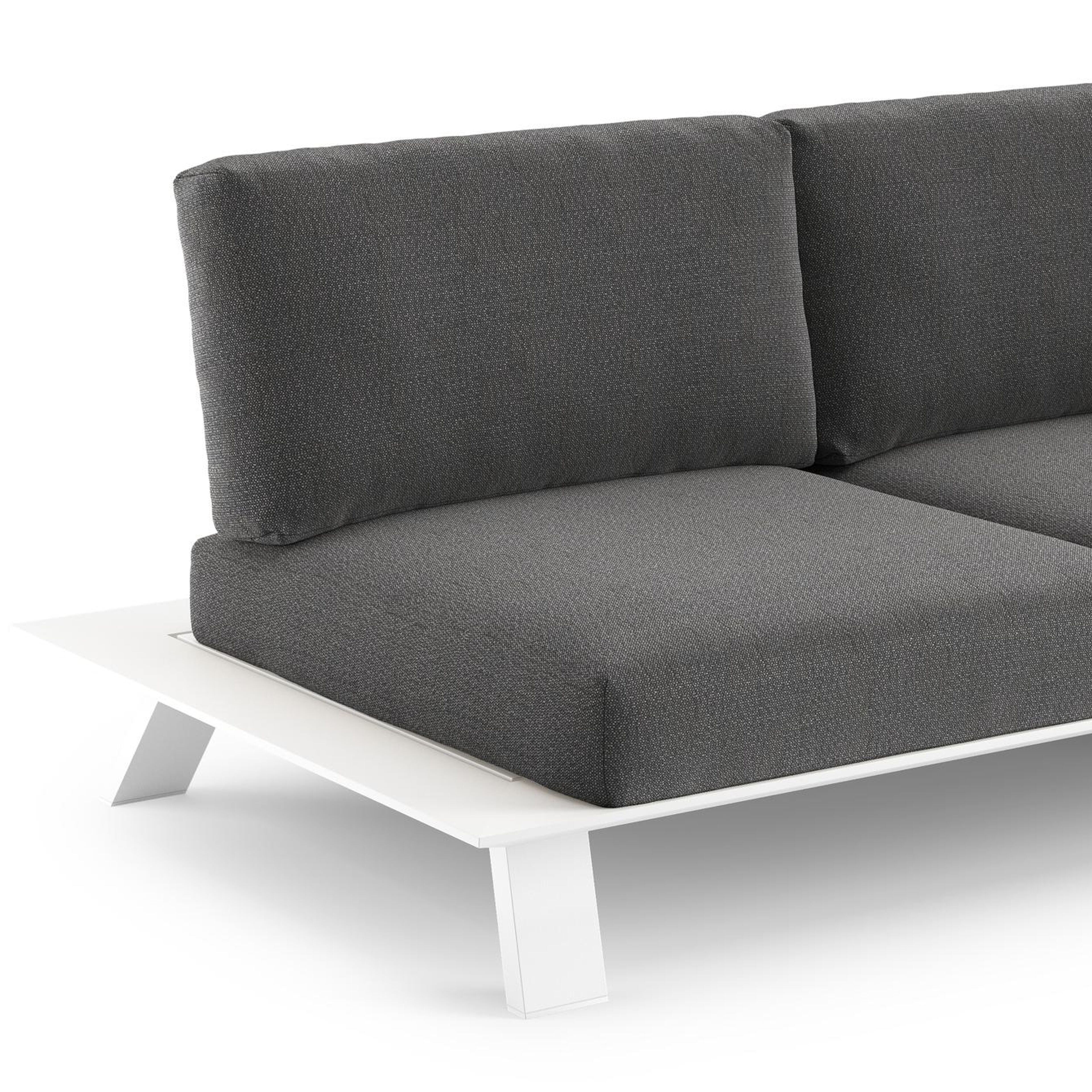 Salon de jardin d'angle Cesano en aluminium blanc et coussin en all weather Sunbrella® luxe savane tornado | Exterioo mobilier de jardin