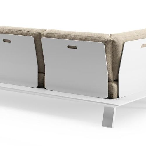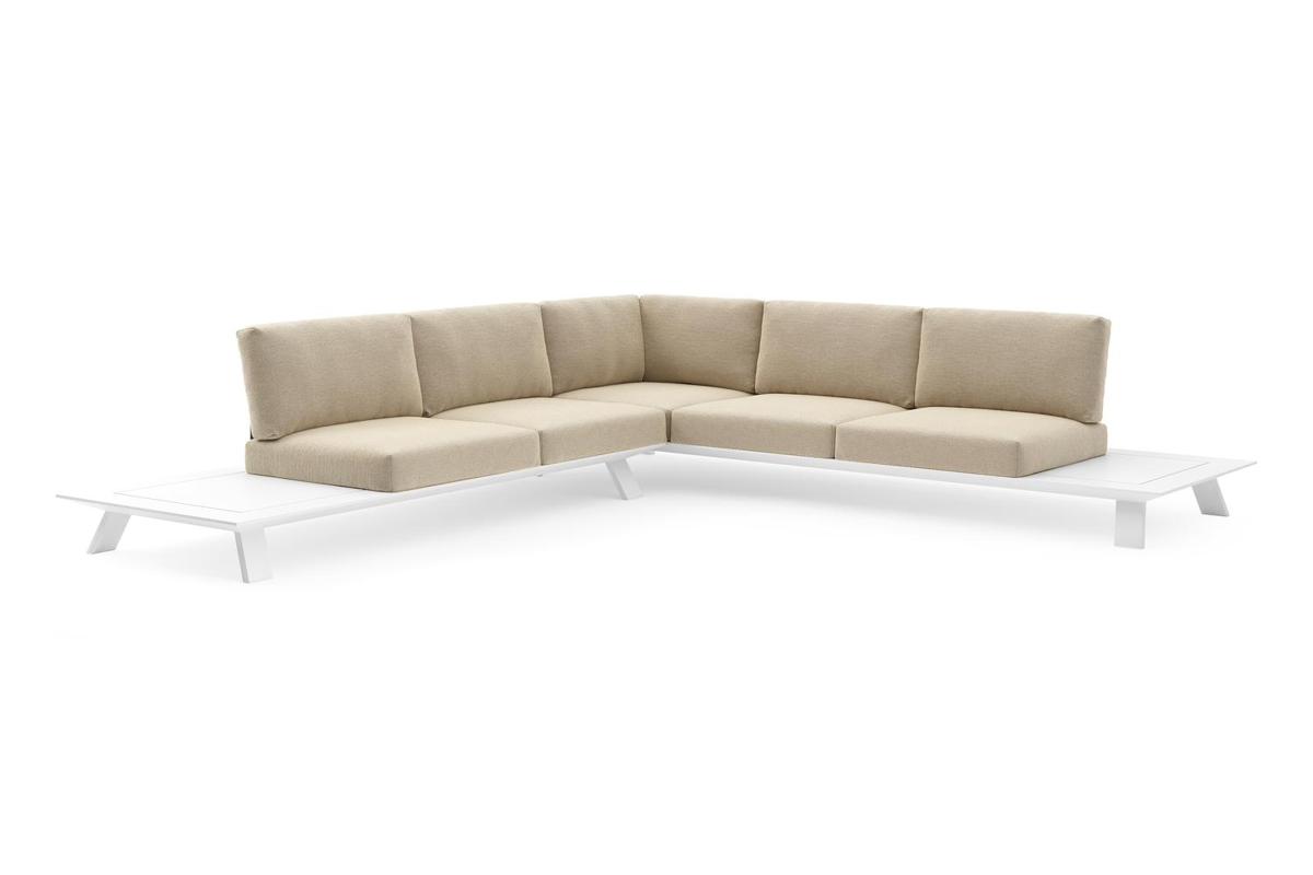 Salon de jardin d'angle Cesano en aluminium blanc et coussin en all weather Cosytica althea camel | Exterioo