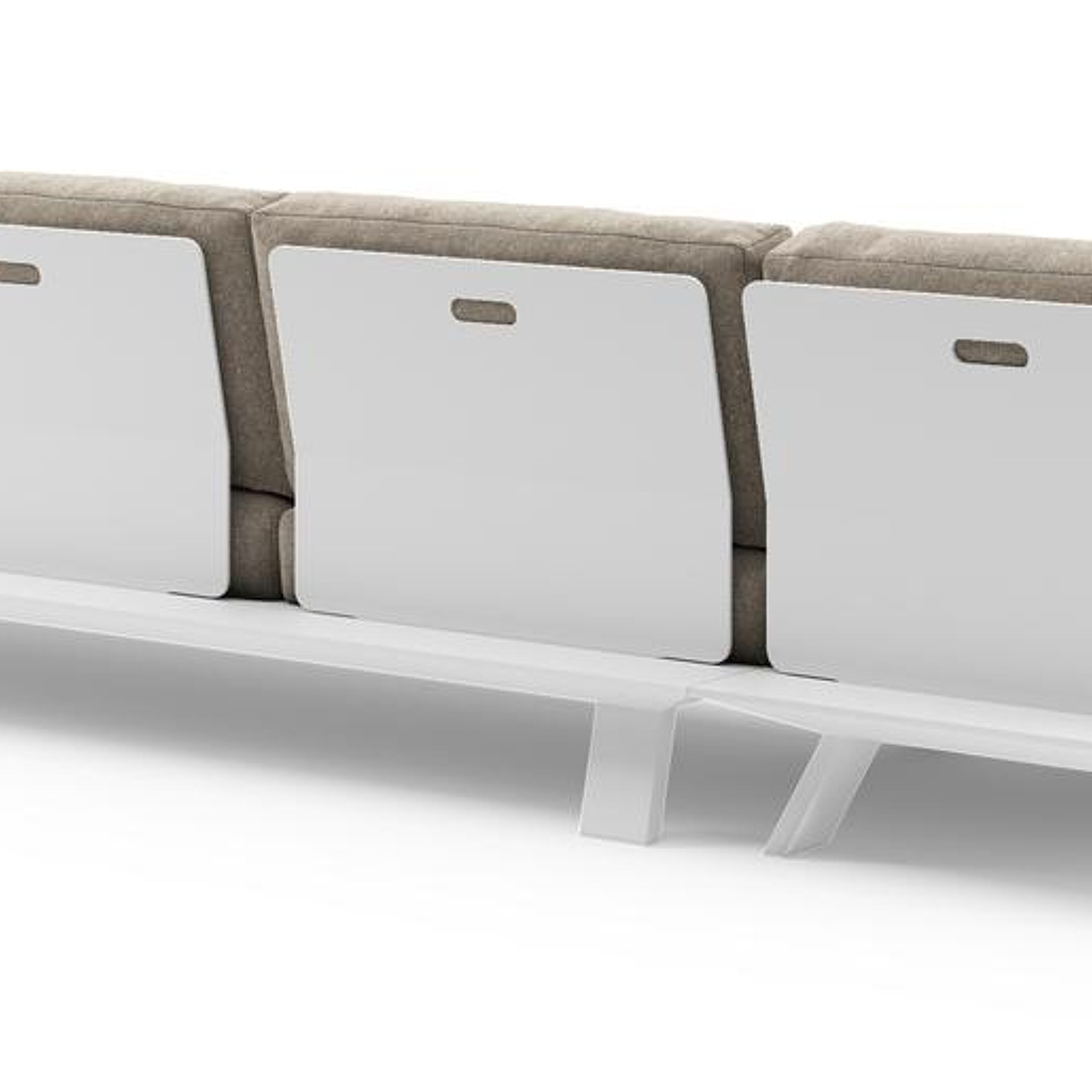 Salon de jardin d'angle Cesano en aluminium blanc et coussin en all weather Sunbrella® luxe chartres pewter | Exterioo mobilier de jardin