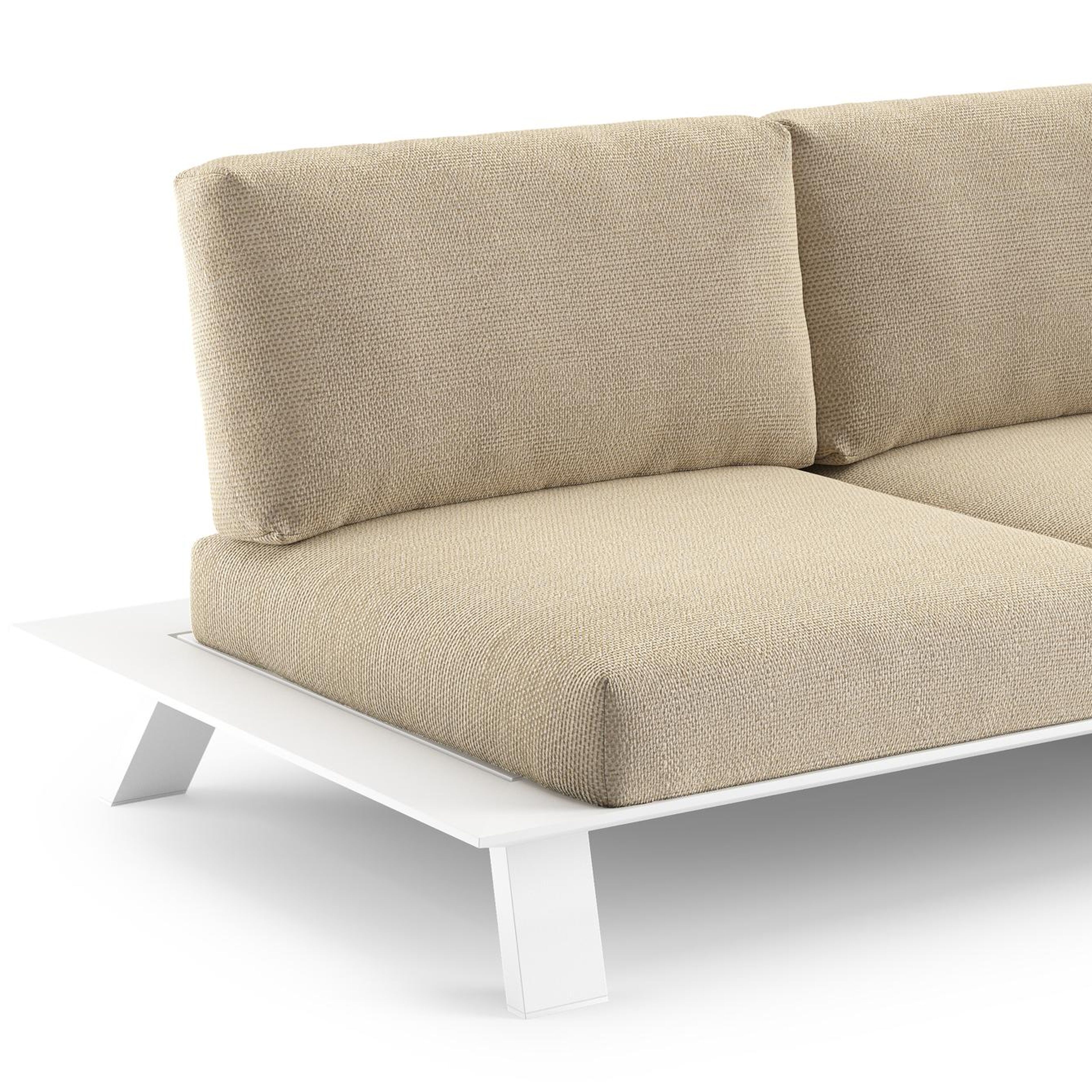 Salon de jardin d'angle Cesano en aluminium blanc et coussin en all weather Cosytica althea camel | Exterioo mobilier de jardin