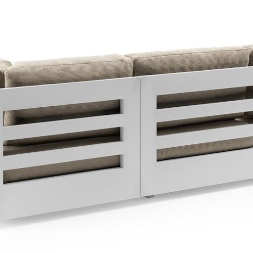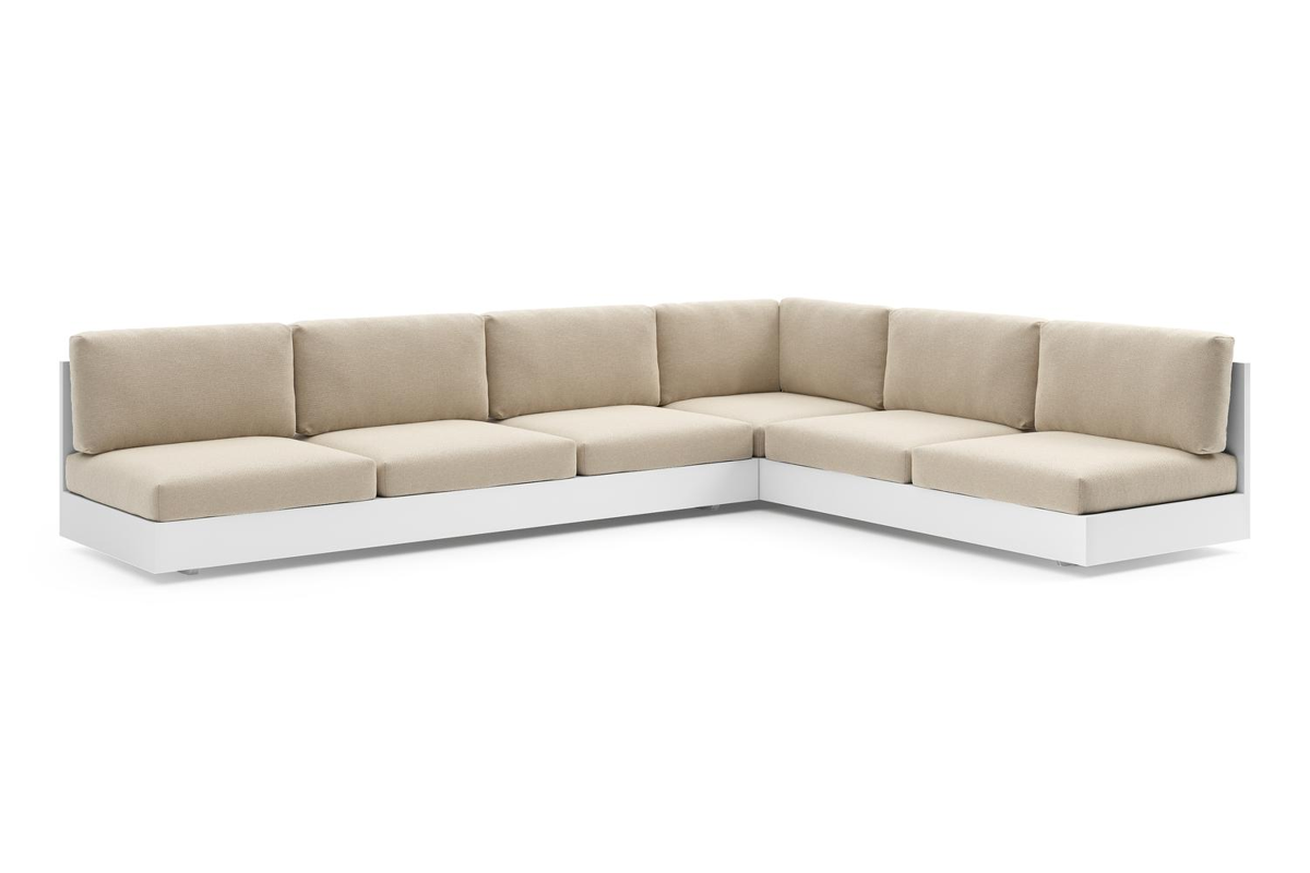 Salon de jardin d'angle Como en aluminium blanc et coussins en all weather cosytica althea chalk | Exterioo