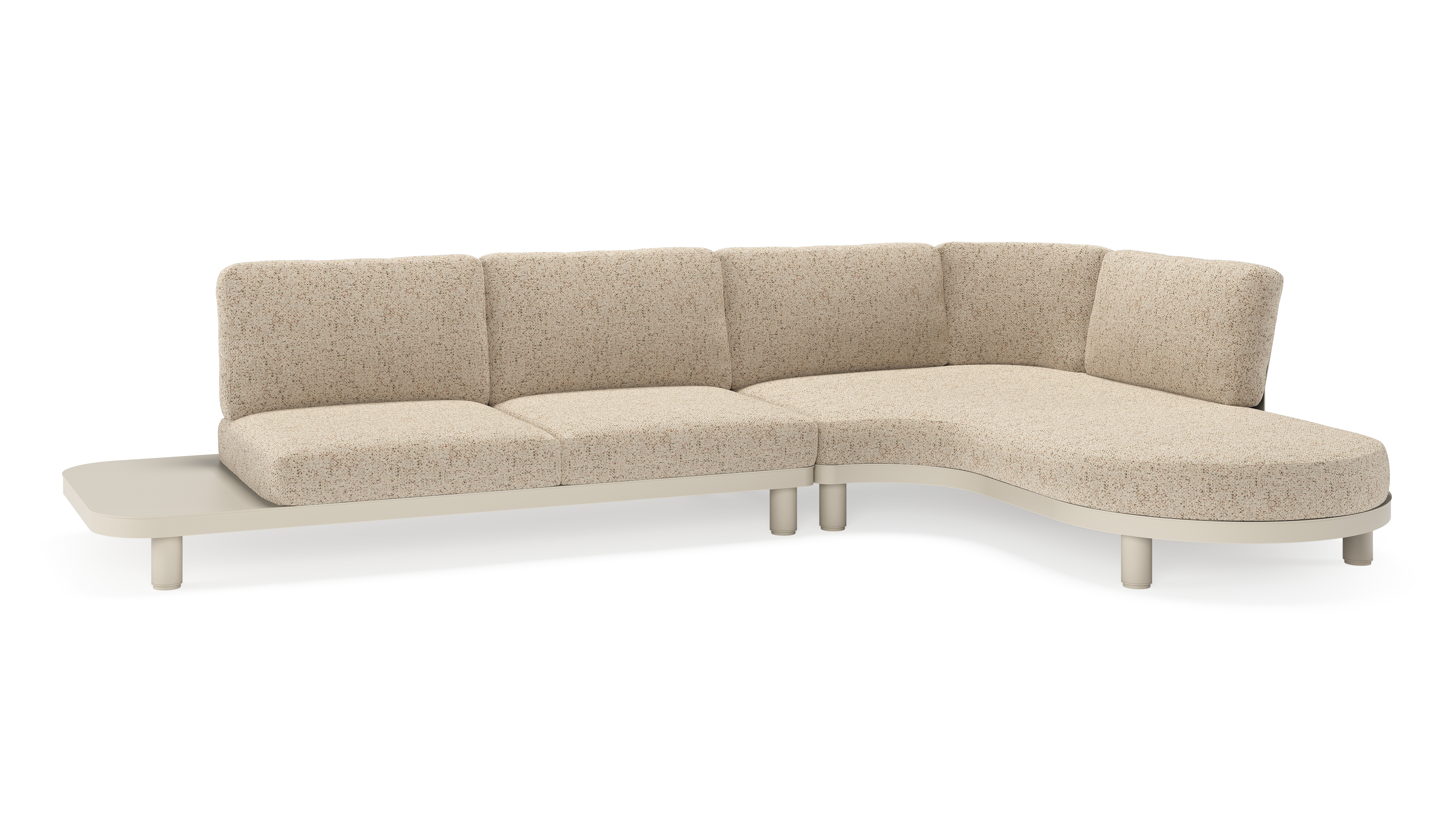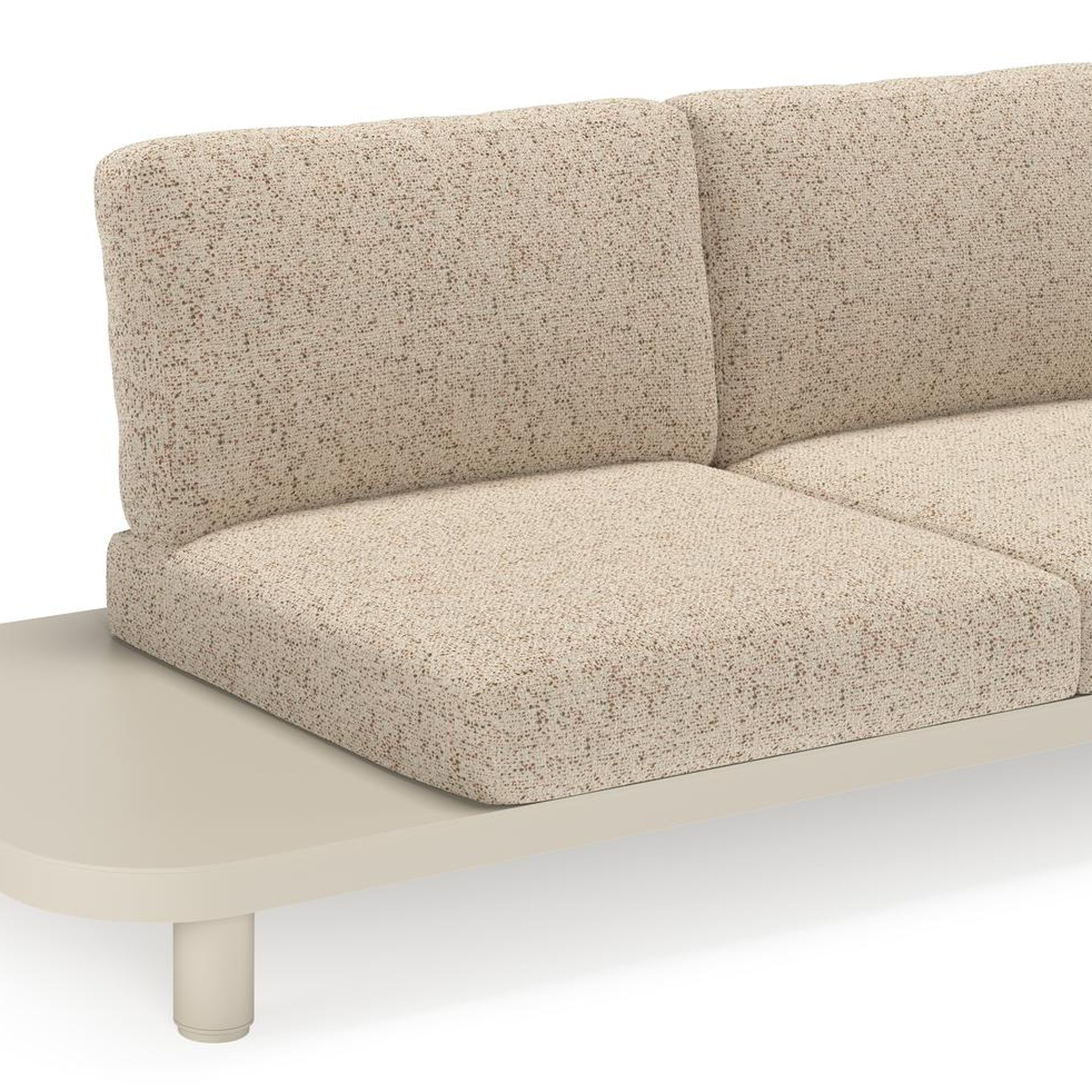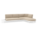 Salon de jardin d'angle Donato en aluminium beige et coussins en all weather cosytica bora jungle | Exterioo mobilier de jardin