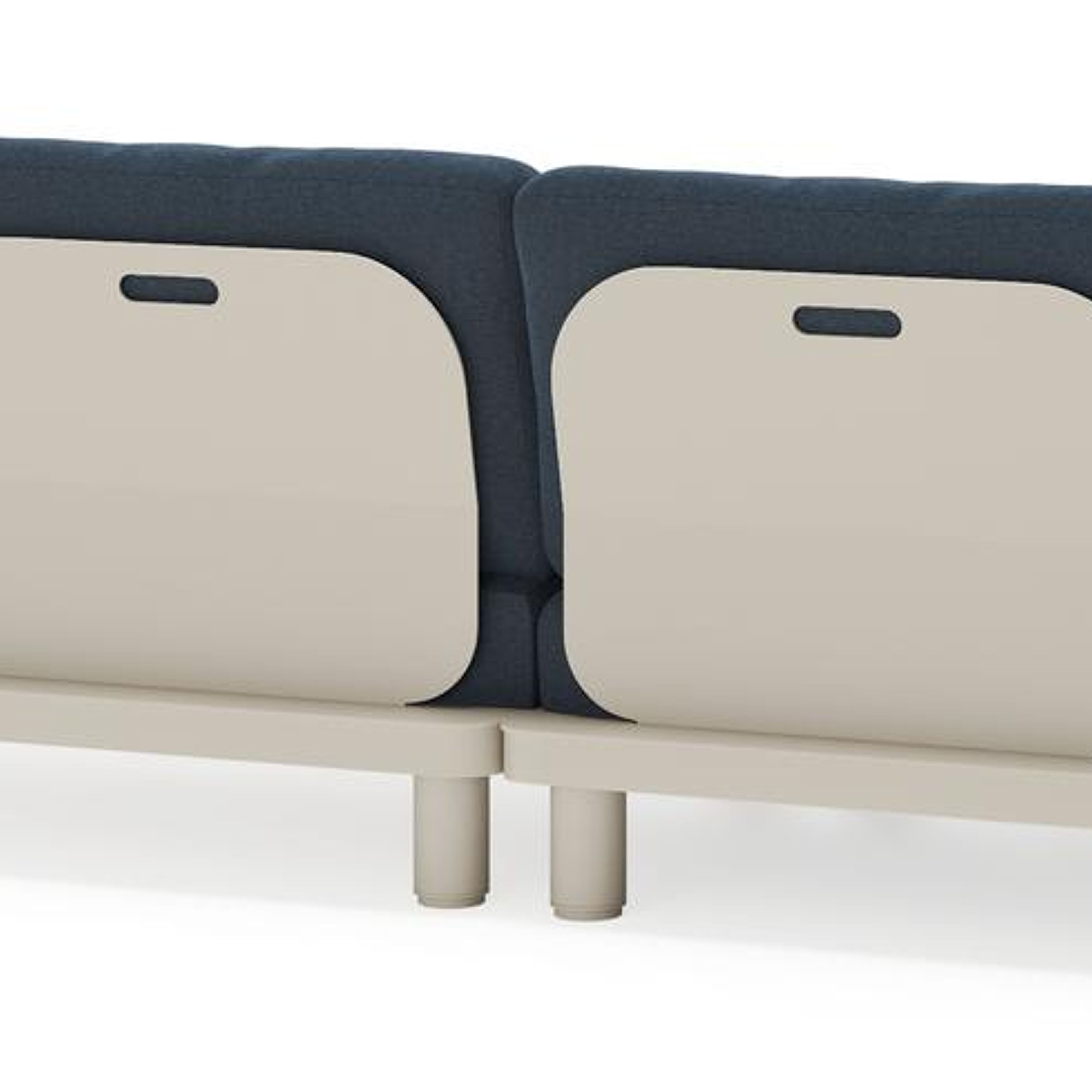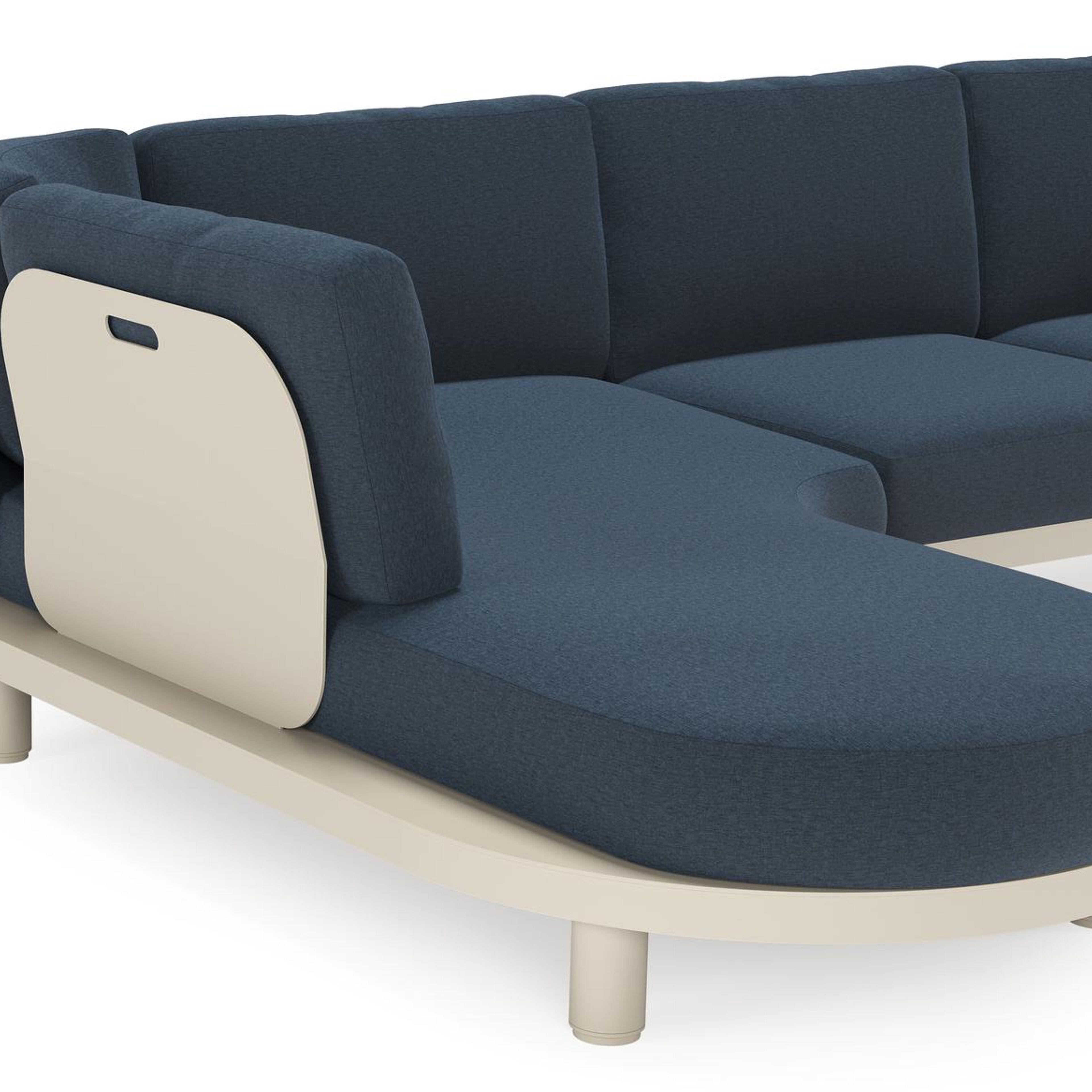 Salon de jardin d'angle Donato en aluminium beige et coussins en all weather sunbrella® luxe heritage indigo | Exterioo mobilier de jardin