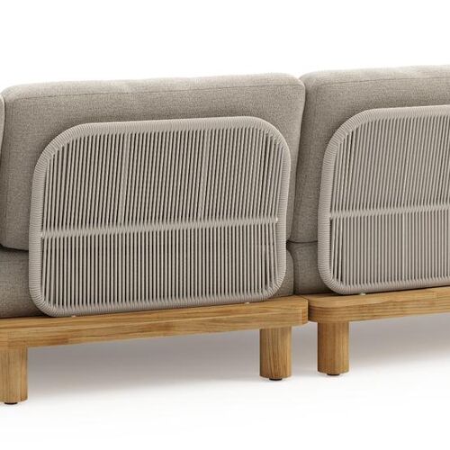 Salon de jardin d'angle Donato en teck et corde ronde tissée verticalement beige et coussins en all weather cosytica Catania Sand | Exterioo
