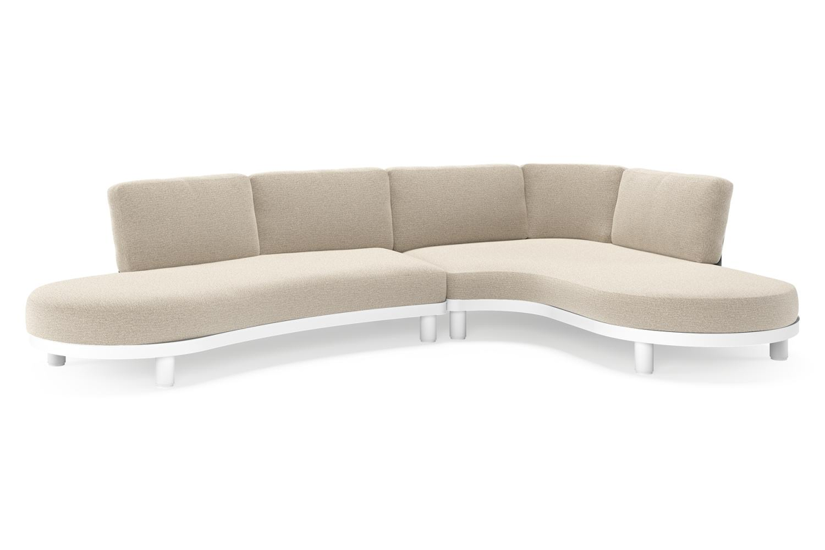 Salon de jardin d'angle Donato en aluminium blanc et coussins en all weather cosytica Catania Sand | Exterioo