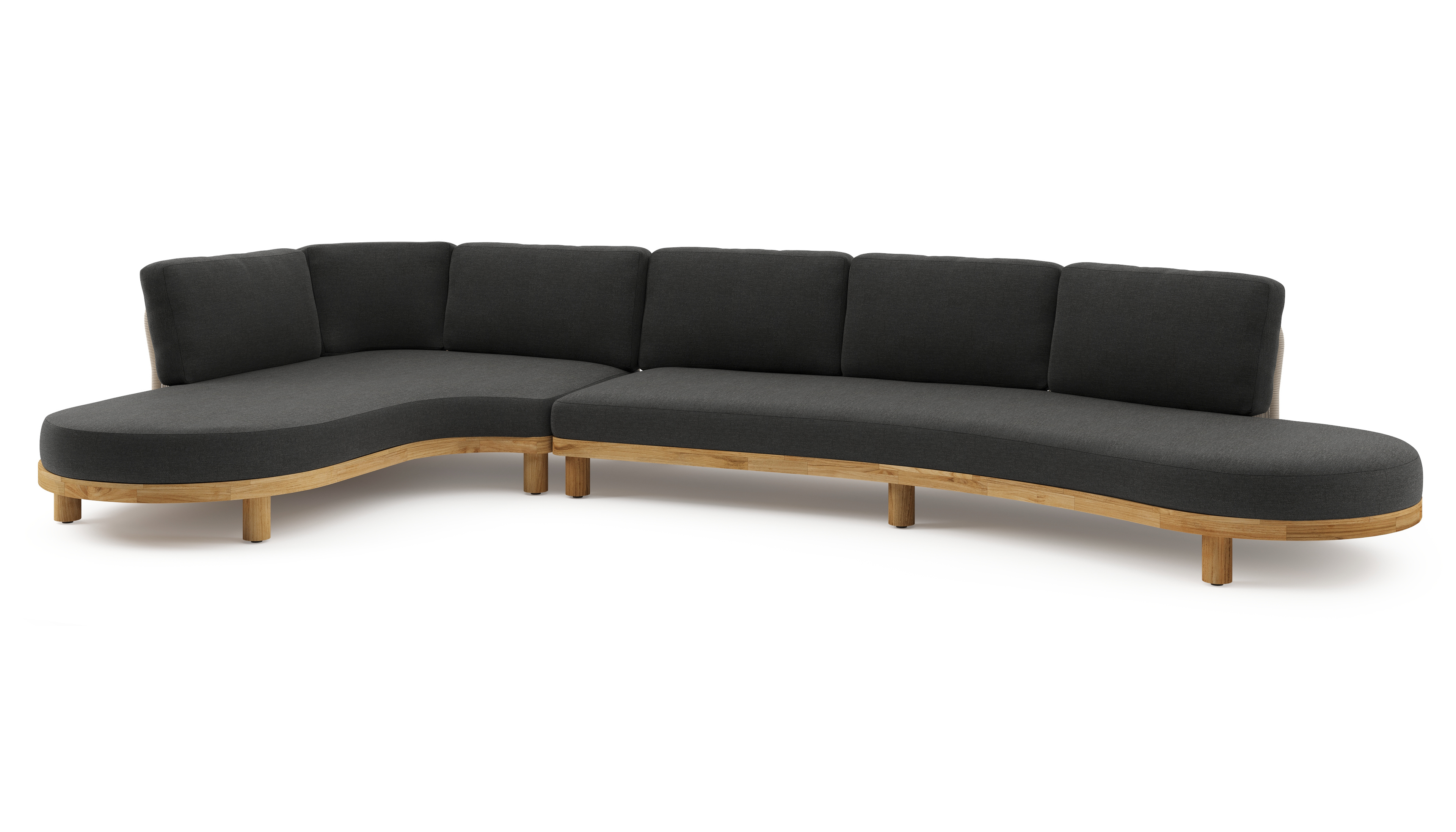 Salon de jardin d'angle Donato en teck et corde ronde tissée verticalement beige et coussins en all weather sunbrella® luxe Chartres Sooty | Exterioo mobilier de jardin