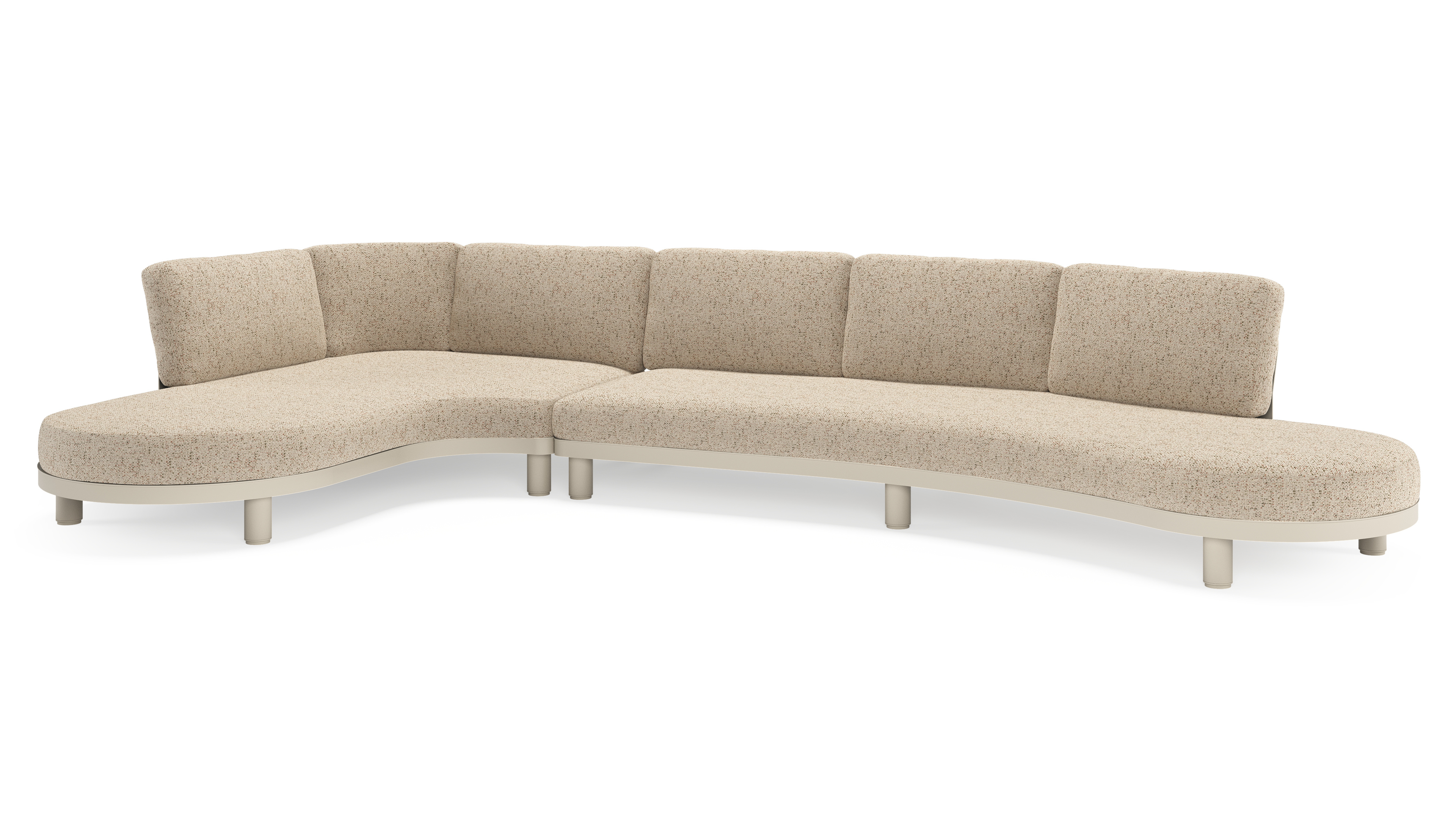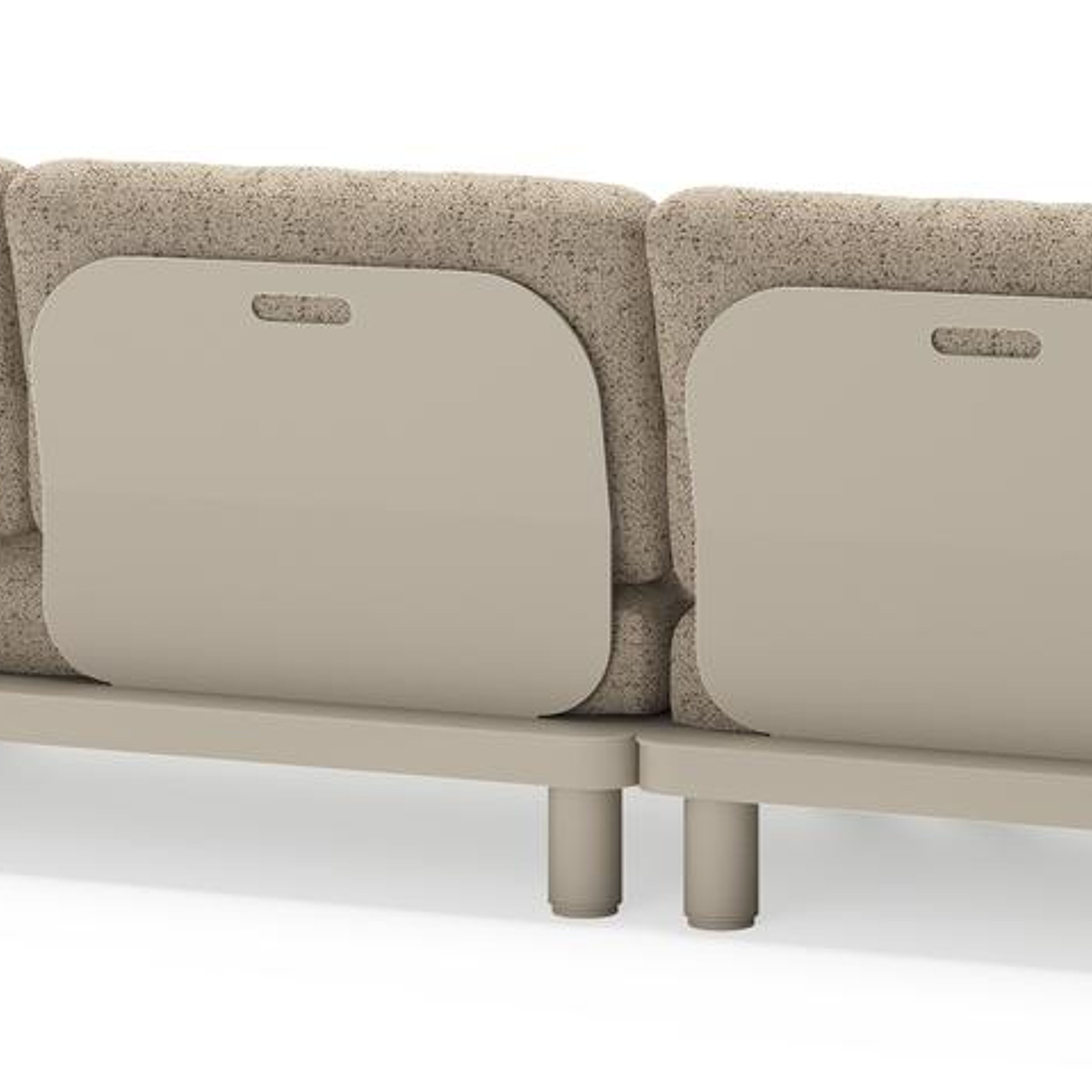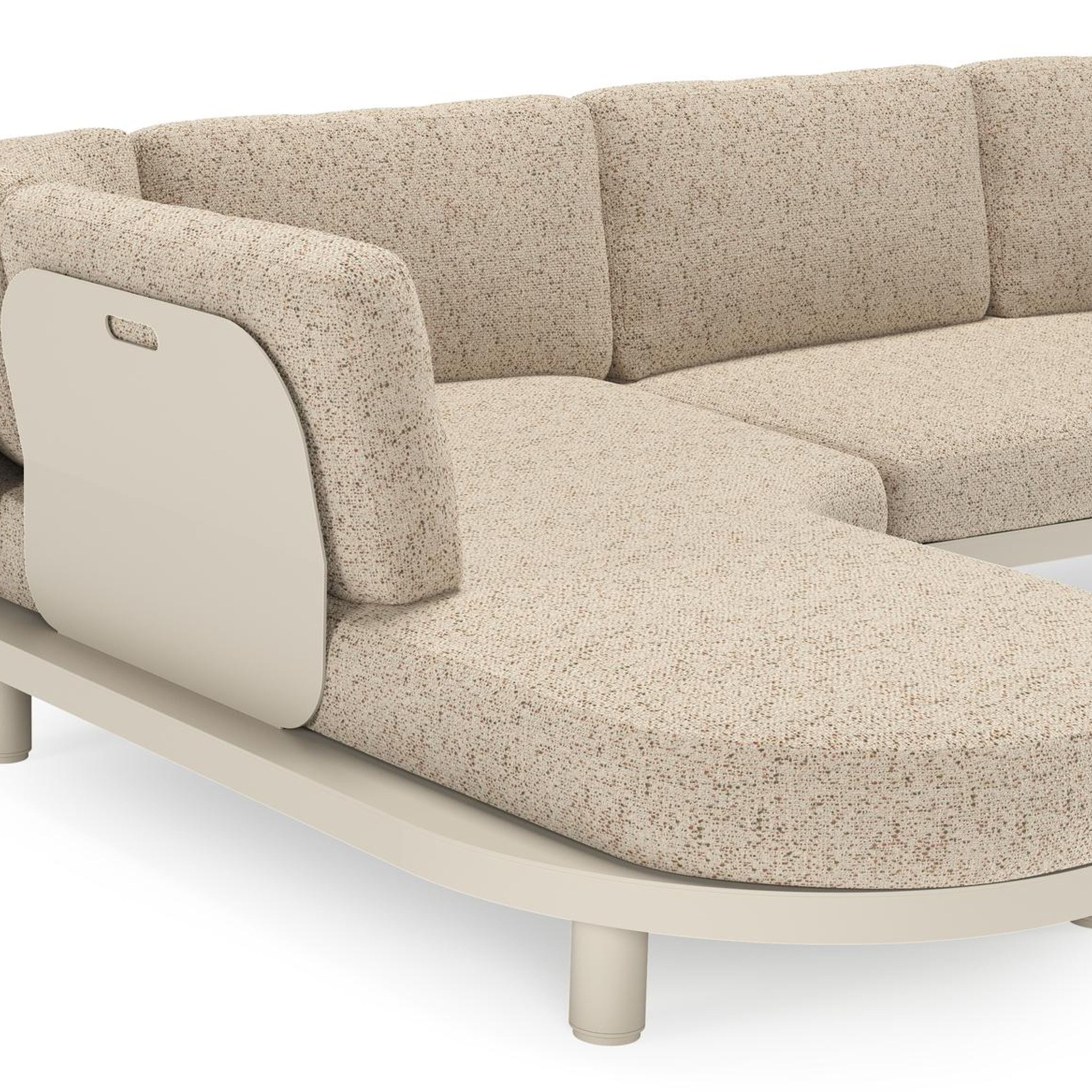 Salon de jardin d'angle Donato en aluminium beige et coussins en all weather cosytica Bora Jungle | Exterioo mobilier de jardin