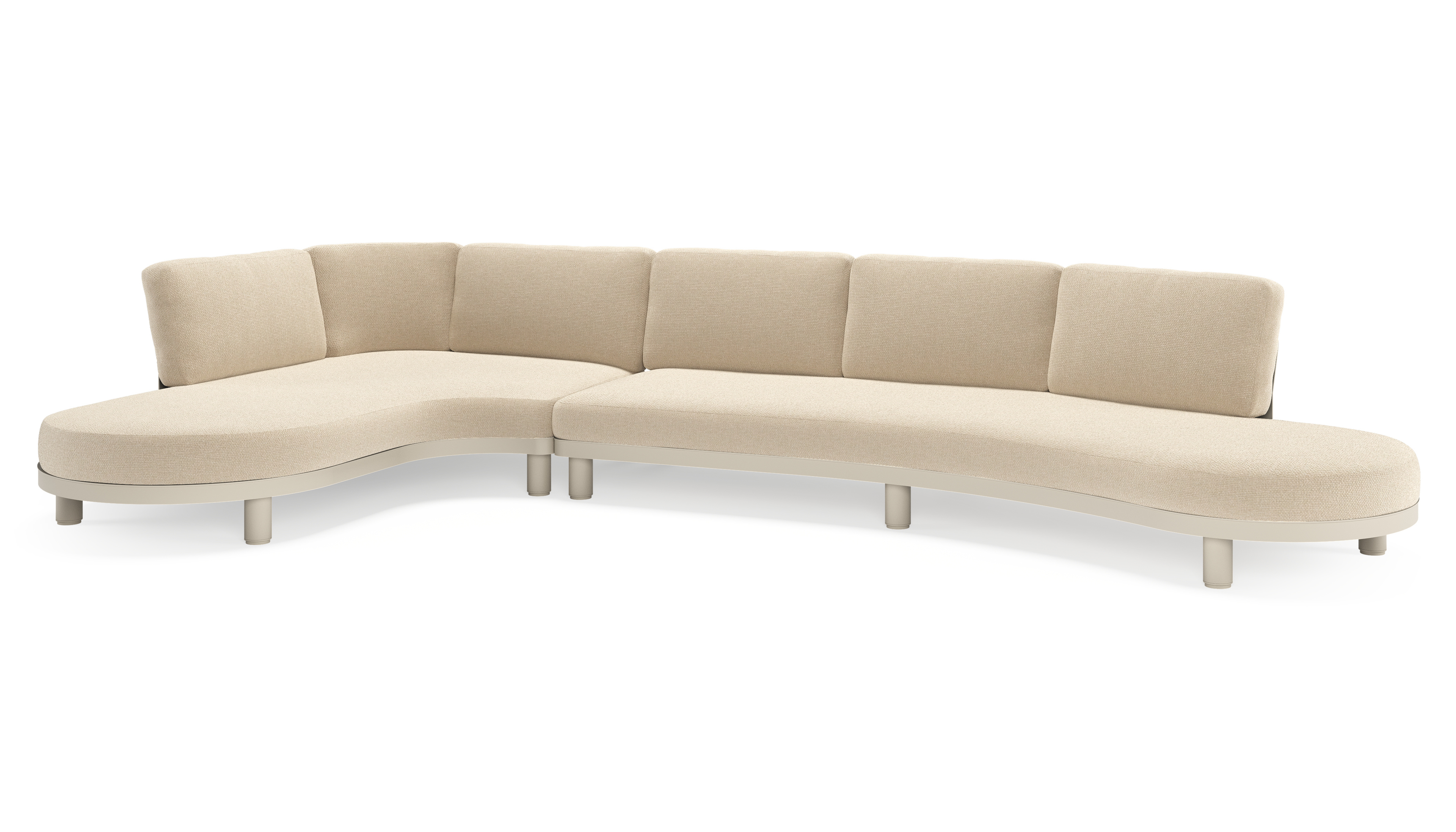 Salon de jardin d'angle Donato en aluminium beige et coussins en all weather cosytica Althea Chalk | Exterioo mobilier de jardin