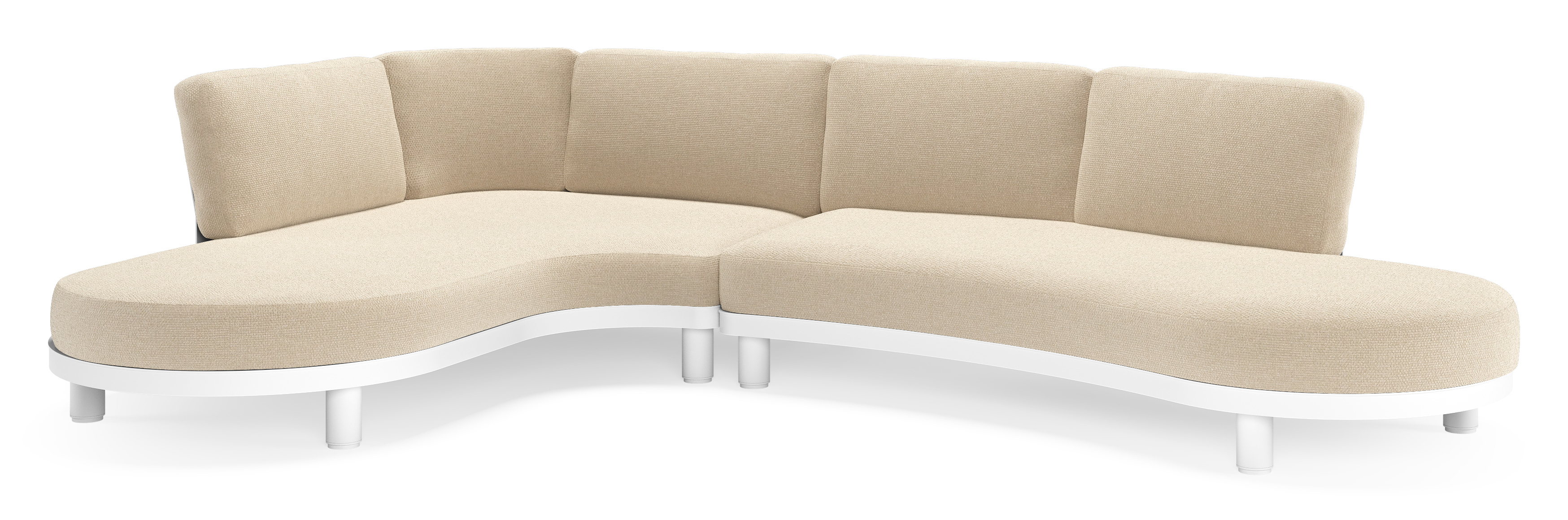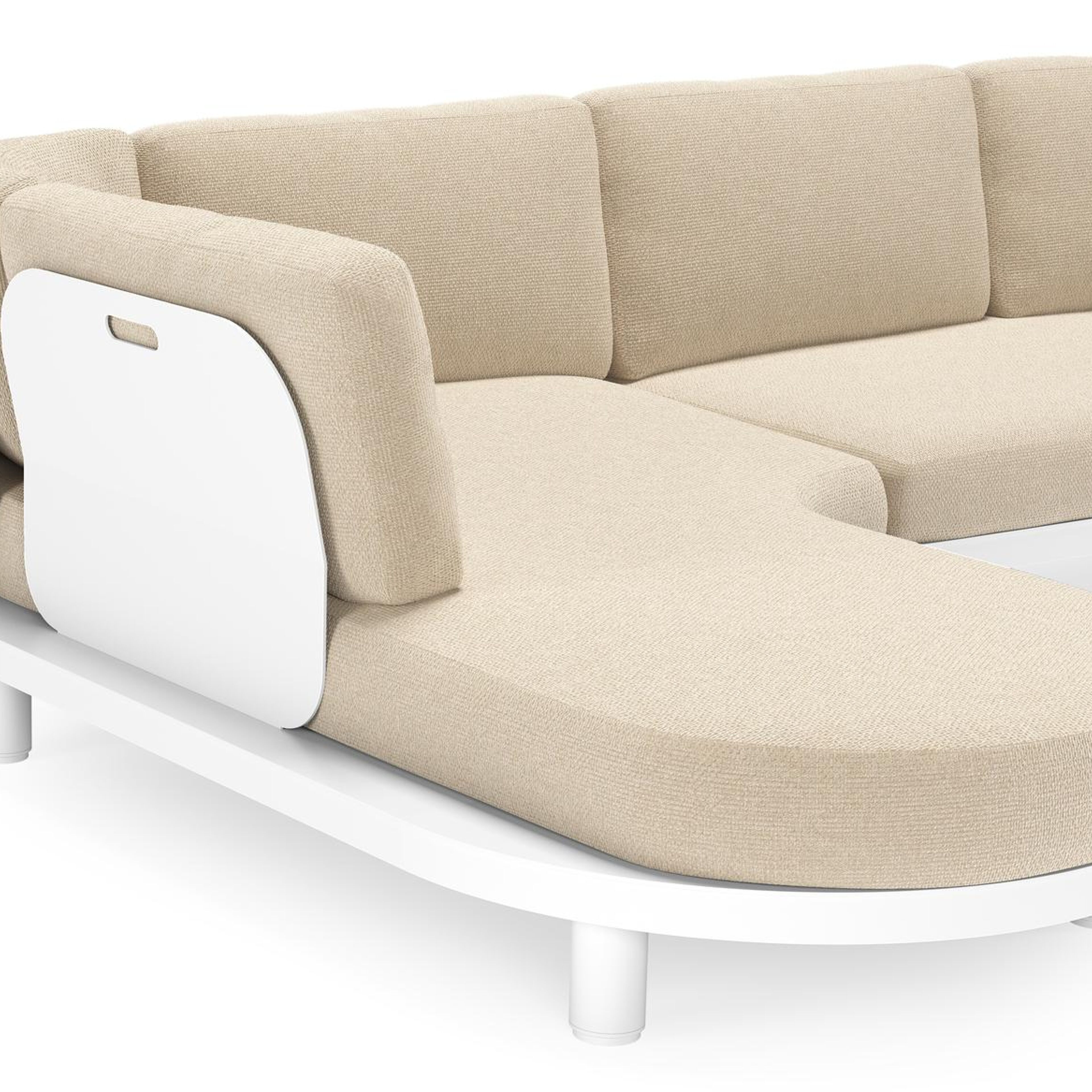 Salon de jardin d'angle Donato en aluminium blanc et coussins en all weather cosytica Althea Chalk | Exterioo mobilier de jardin