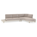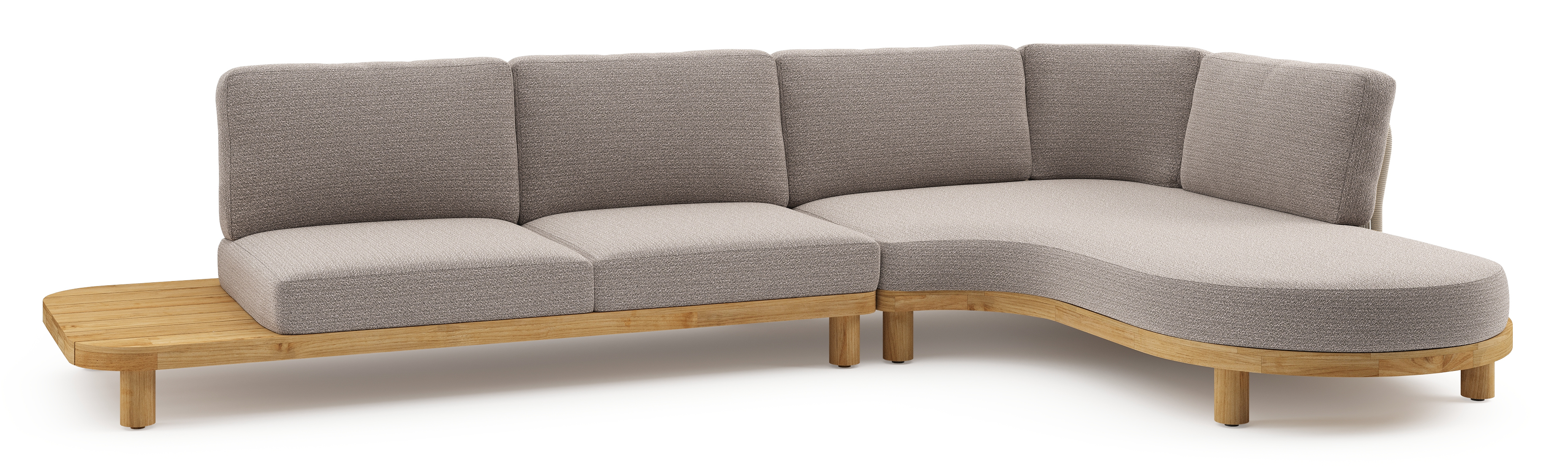 Salon de jardin d'angle Donato en teck et corde ronde tissée verticalement beige et coussins en all weather sunbrella® luxe Wander Granite | Exterioo mobilier de jardin